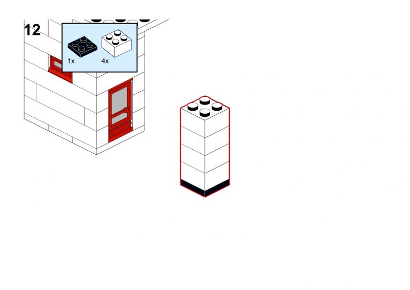 The lower level features a small red door and window, suggesting a secure access point or storage area, while the elevated control room evokes the charm and utility of old European railway infrastructure. Ideal for display or integration into a vintage LEGO train layout, this signal tower brings both nostalgia and functionality to your brick-built world.
