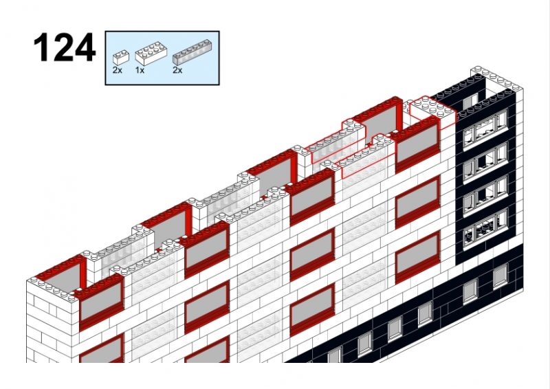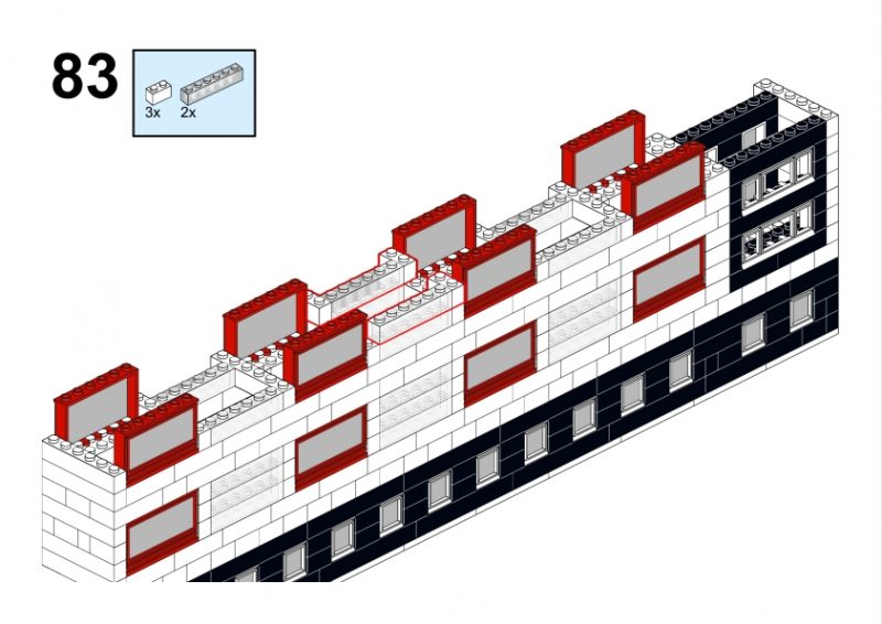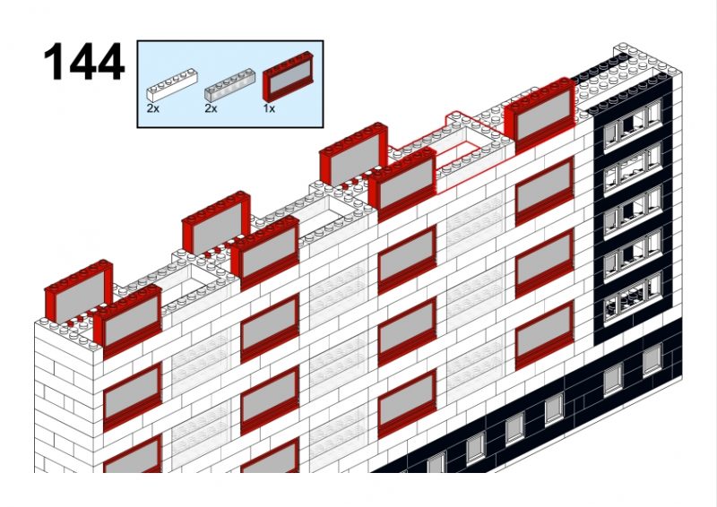 Discover this MOC apartment urban building, inspired by the classic designs of LEGO from the 1960s and 70s! A small version can be seen on the first image of this post for which I have also created instructions. Featuring a white facade with bold red window frames, a red roof, and a striking black tower, this structure captures the retro urban style of that era. With its multi-level design and modern windows, it’s ideal for a vintage LEGO city. Follow my building instructions to recreate this unique piece!