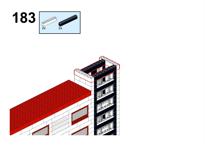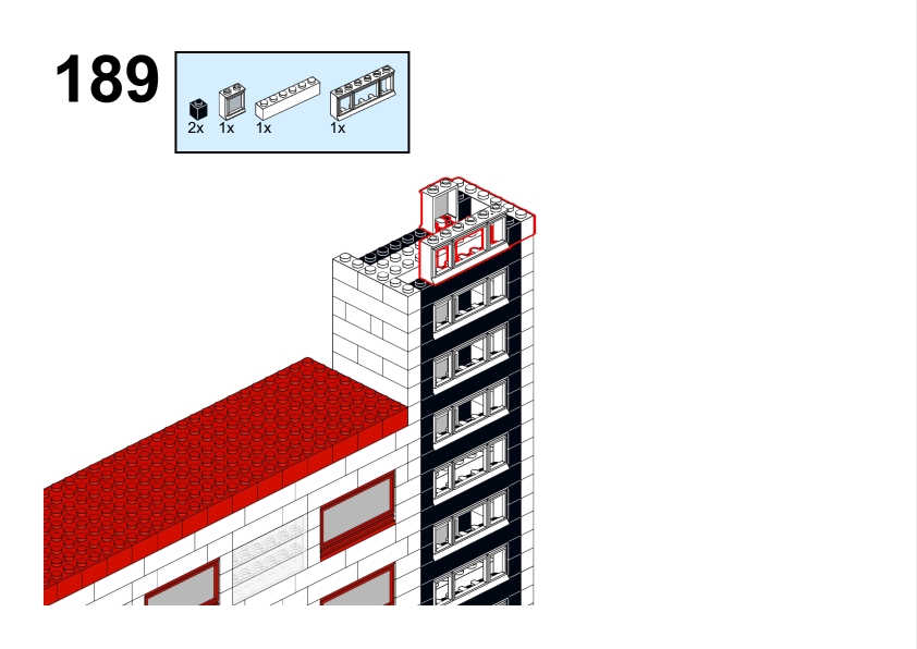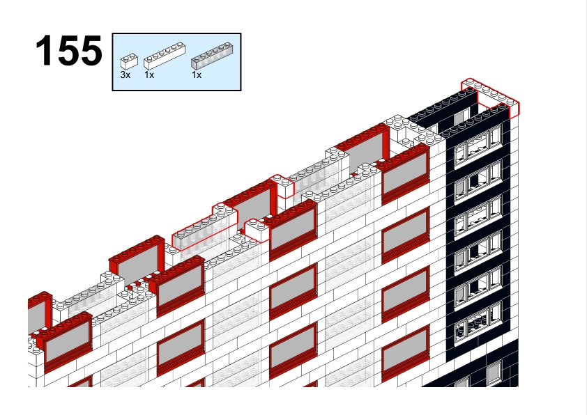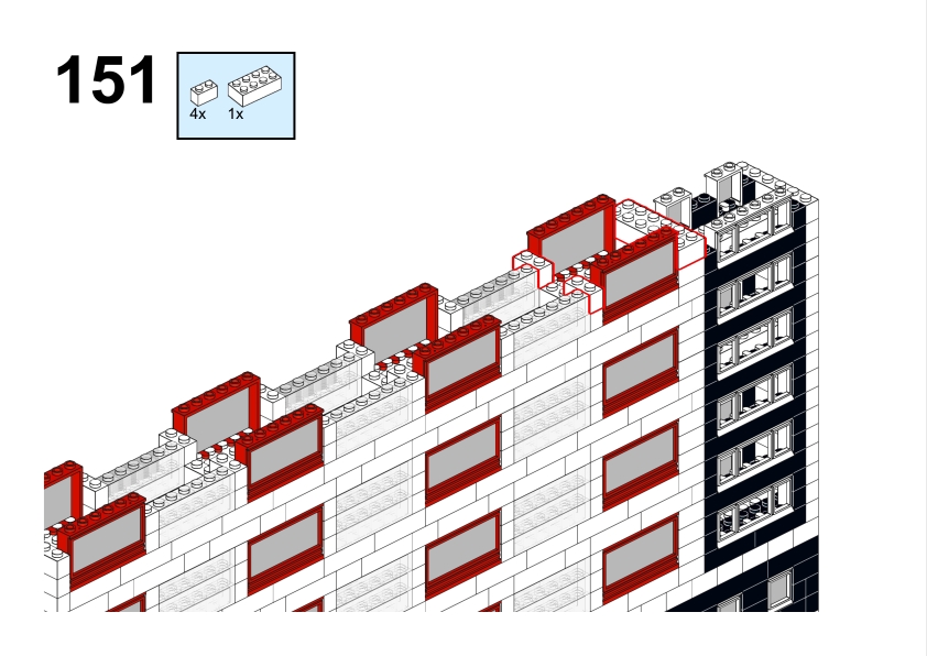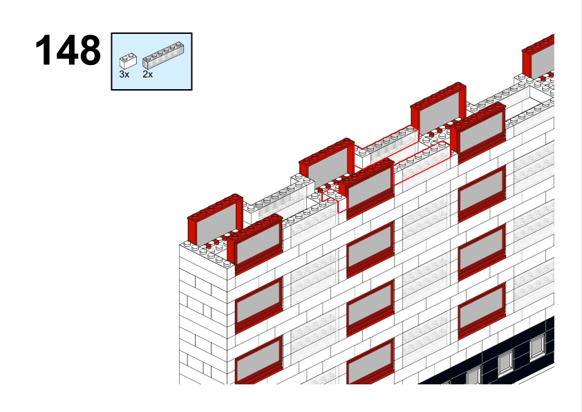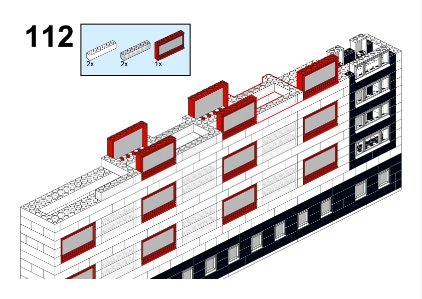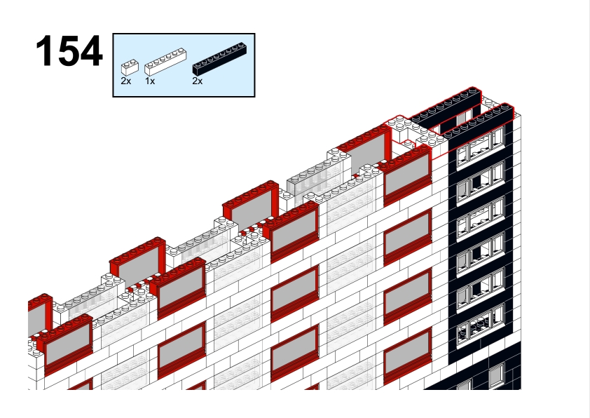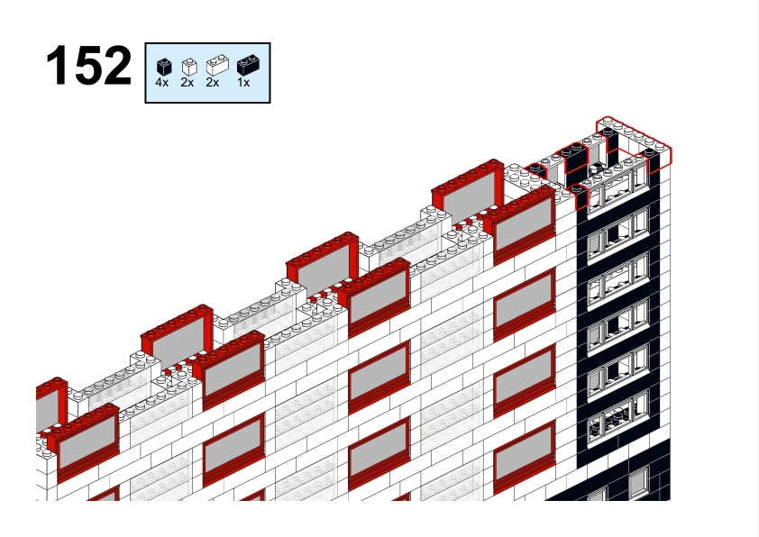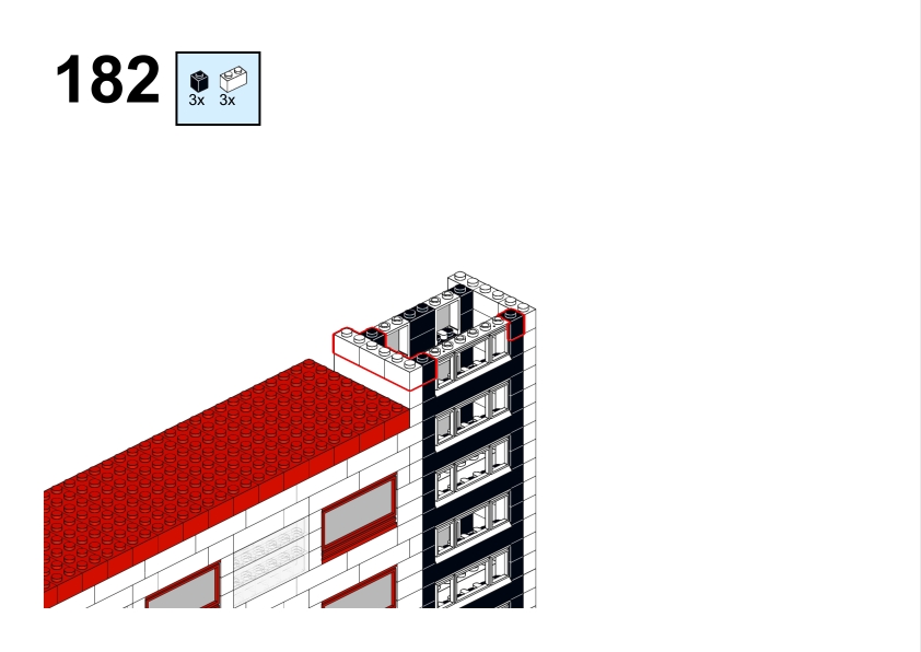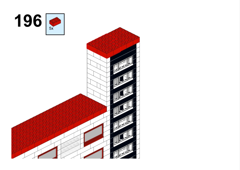 Discover this MOC apartment urban building, inspired by the classic designs of LEGO from the 1960s and 70s! A small version can be seen on the first image of this post for which I have also created instructions. Featuring a white facade with bold red window frames, a red roof, and a striking black tower, this structure captures the retro urban style of that era. With its multi-level design and modern windows, it’s ideal for a vintage LEGO city. Follow my building instructions to recreate this unique piece!