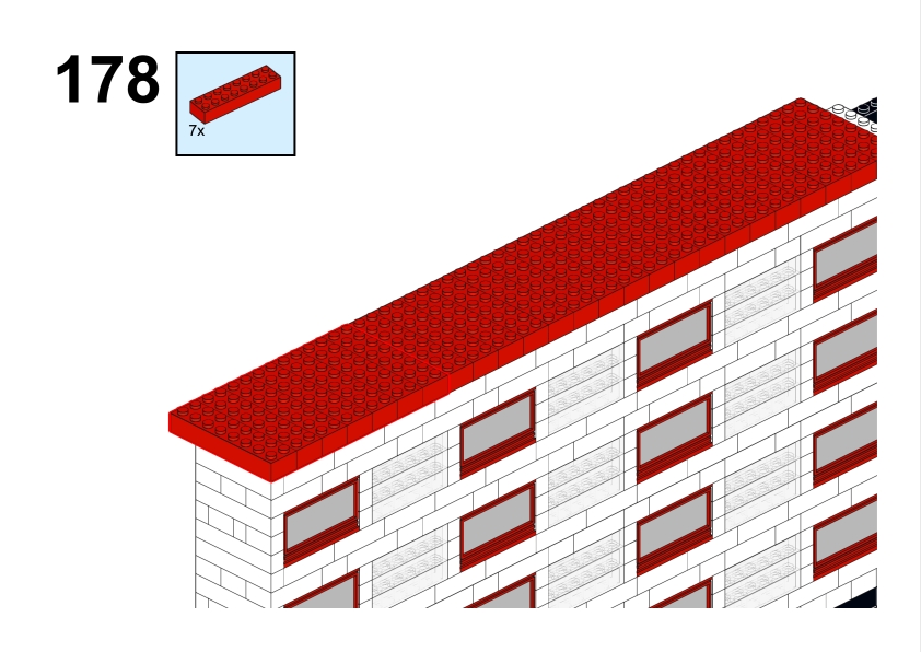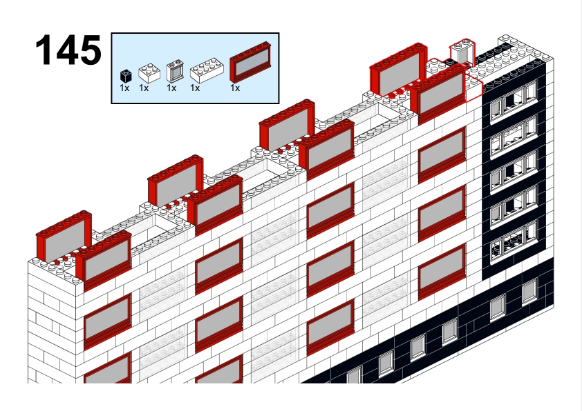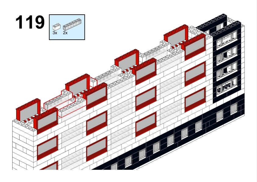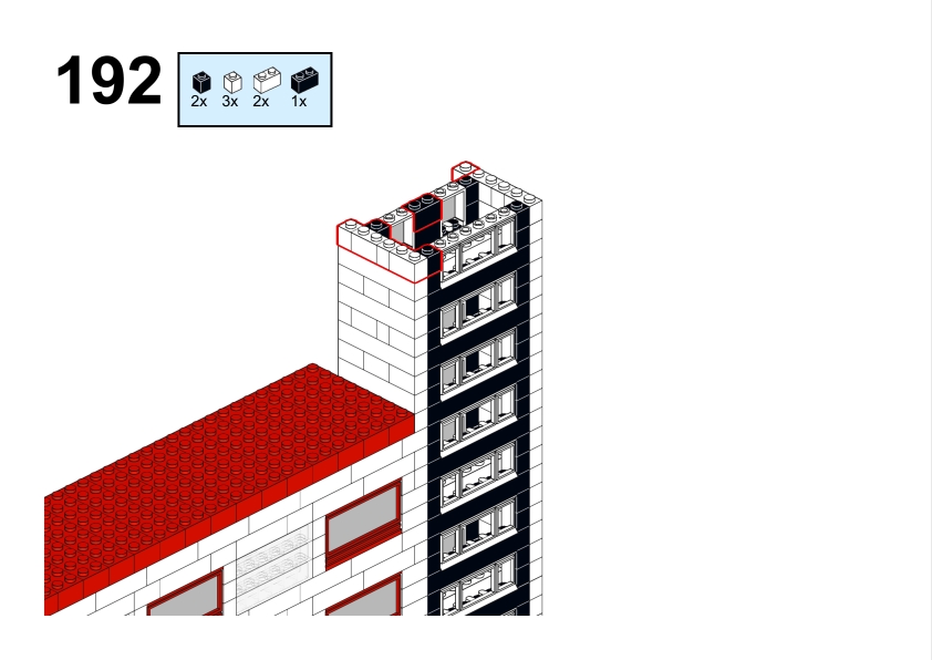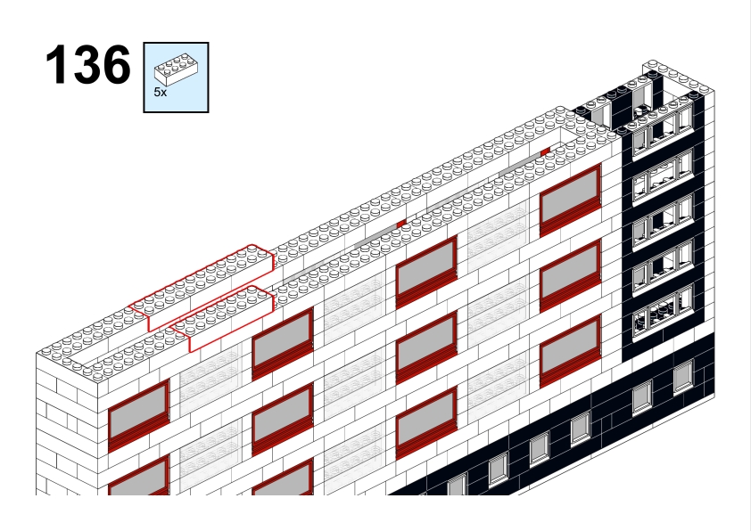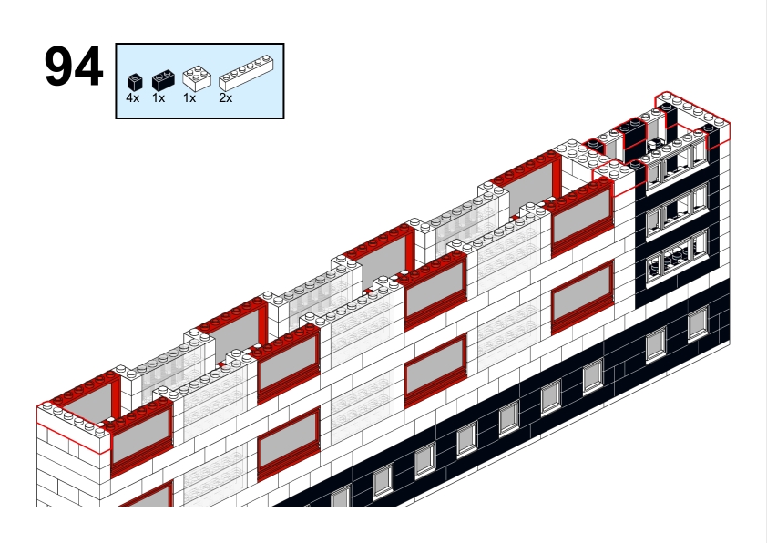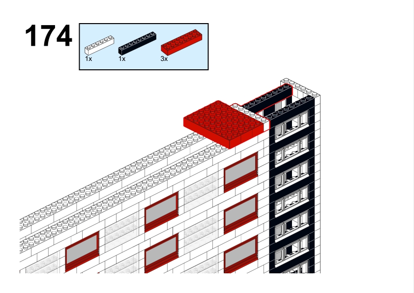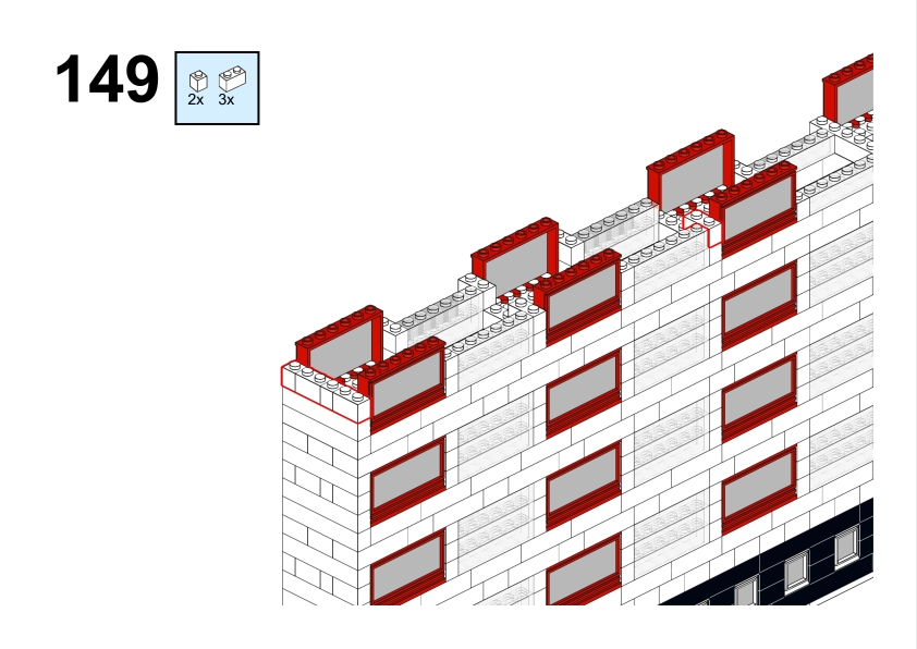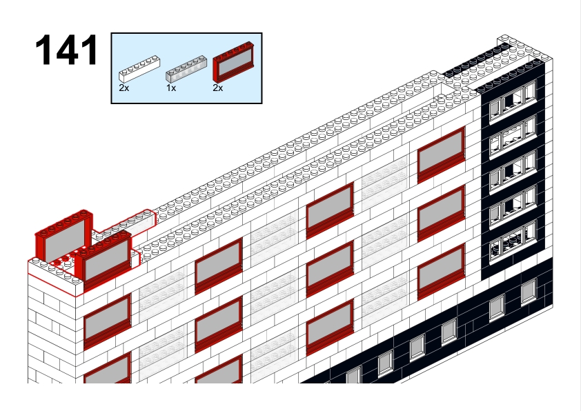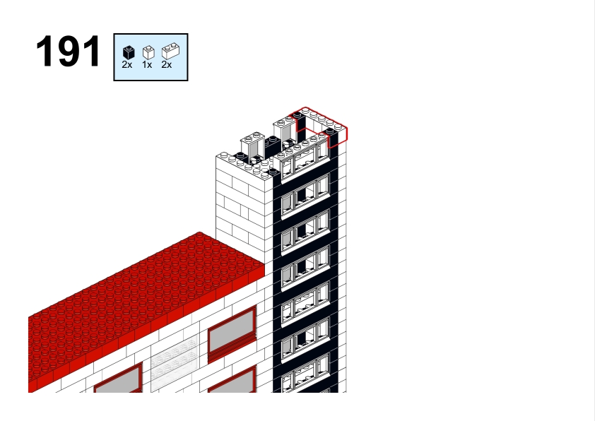 Discover this MOC apartment urban building, inspired by the classic designs of LEGO from the 1960s and 70s! A small version can be seen on the first image of this post for which I have also created instructions. Featuring a white facade with bold red window frames, a red roof, and a striking black tower, this structure captures the retro urban style of that era. With its multi-level design and modern windows, it’s ideal for a vintage LEGO city. Follow my building instructions to recreate this unique piece!