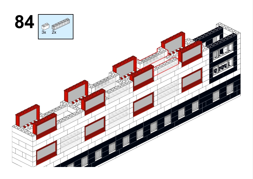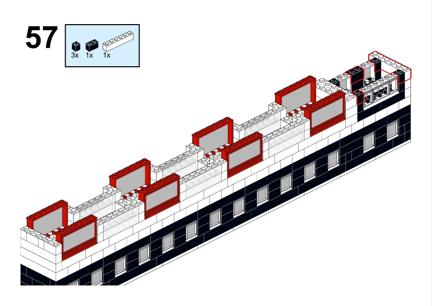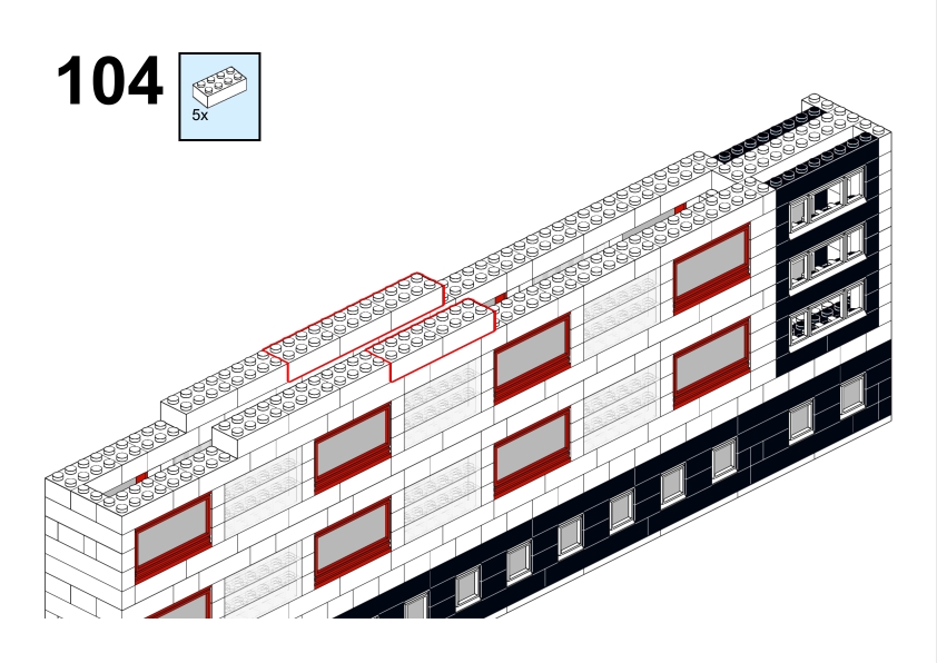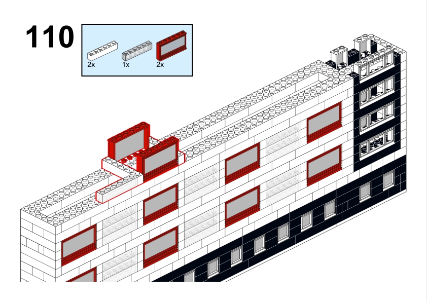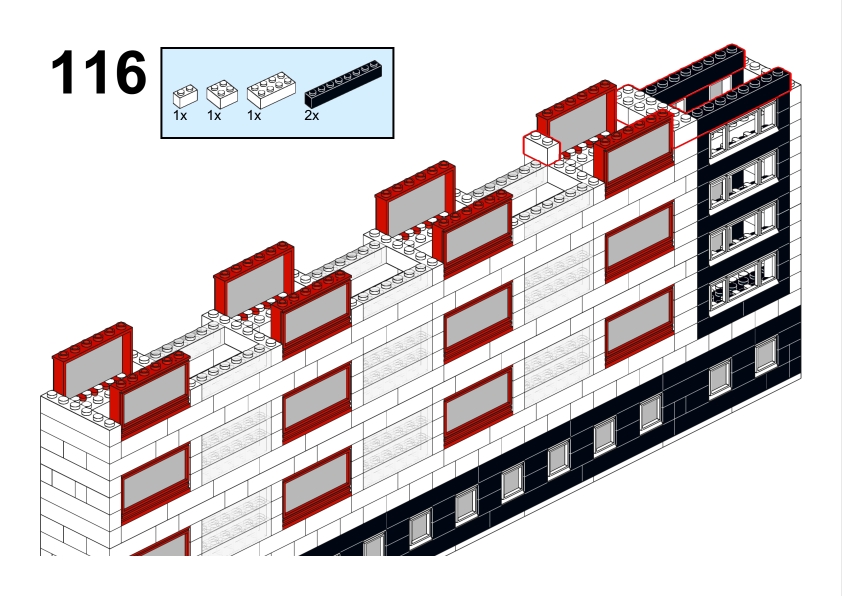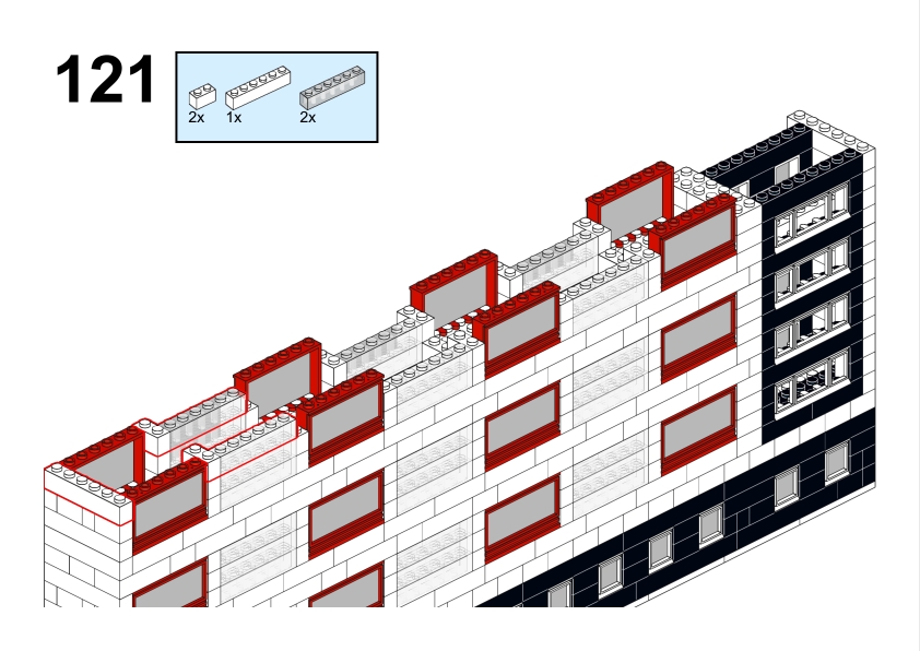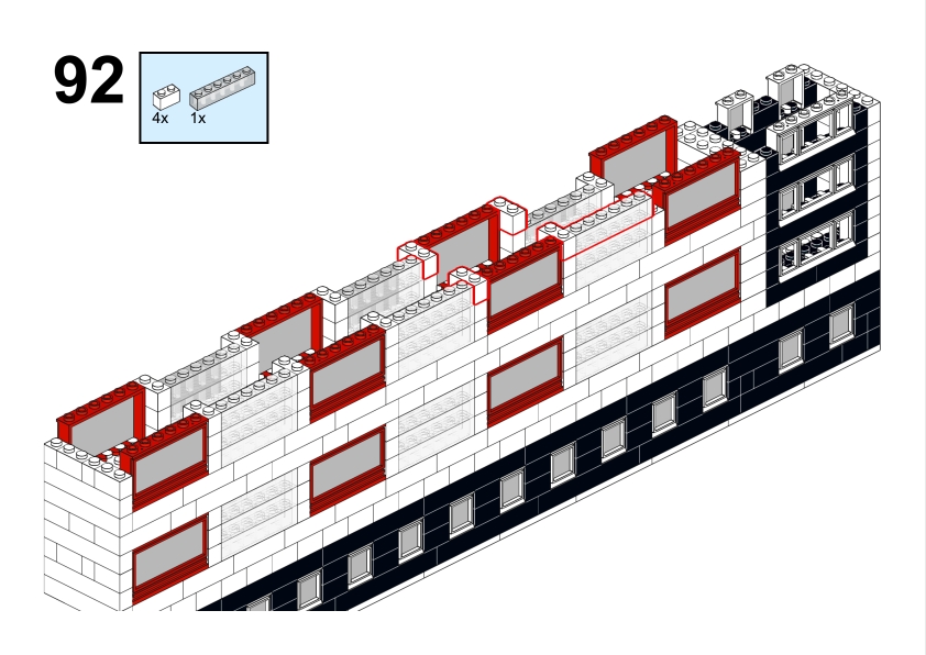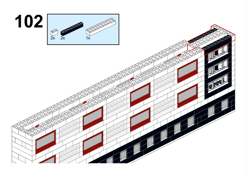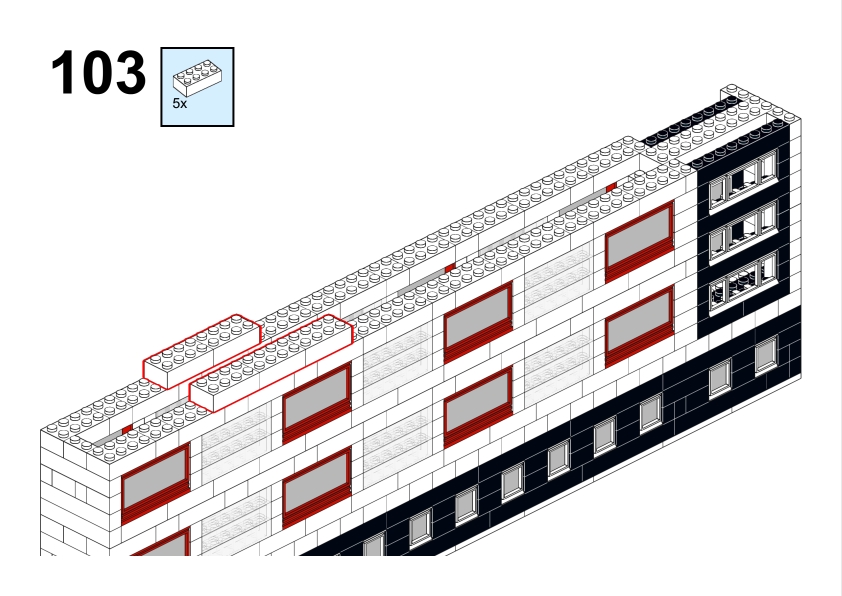 Discover this MOC apartment urban building, inspired by the classic designs of LEGO from the 1960s and 70s! A small version can be seen on the first image of this post for which I have also created instructions. Featuring a white facade with bold red window frames, a red roof, and a striking black tower, this structure captures the retro urban style of that era. With its multi-level design and modern windows, it’s ideal for a vintage LEGO city. Follow my building instructions to recreate this unique piece!