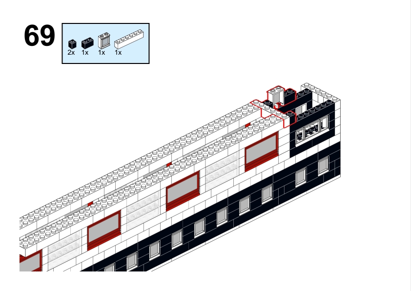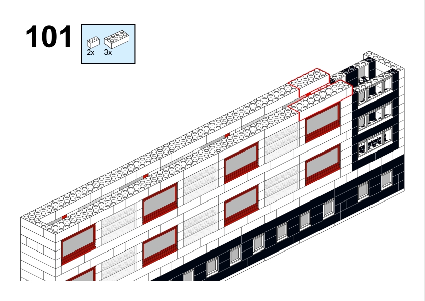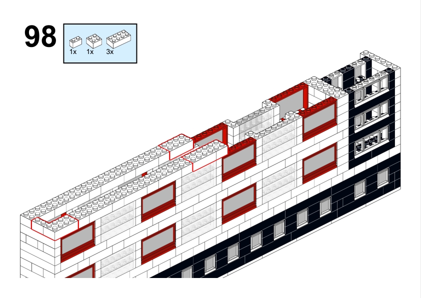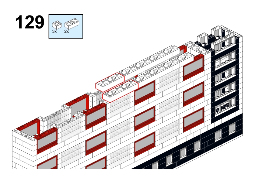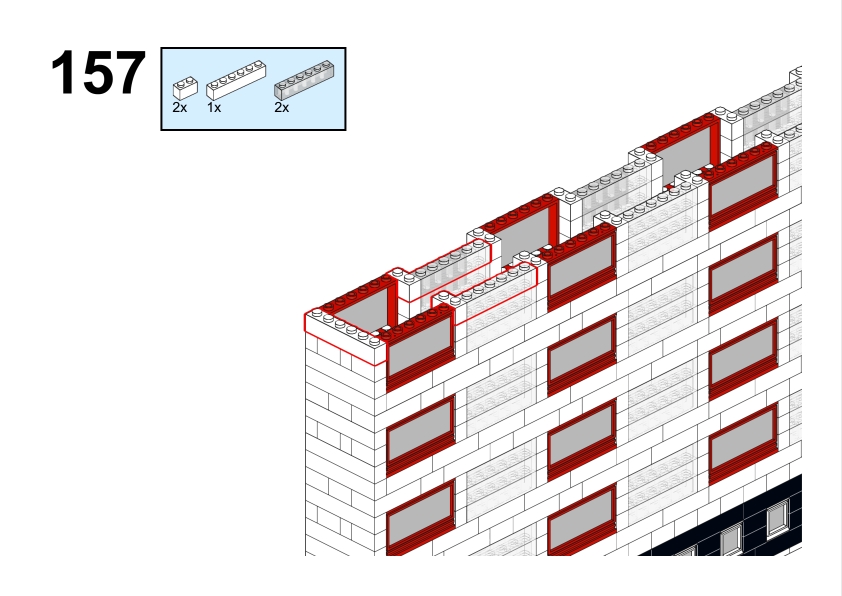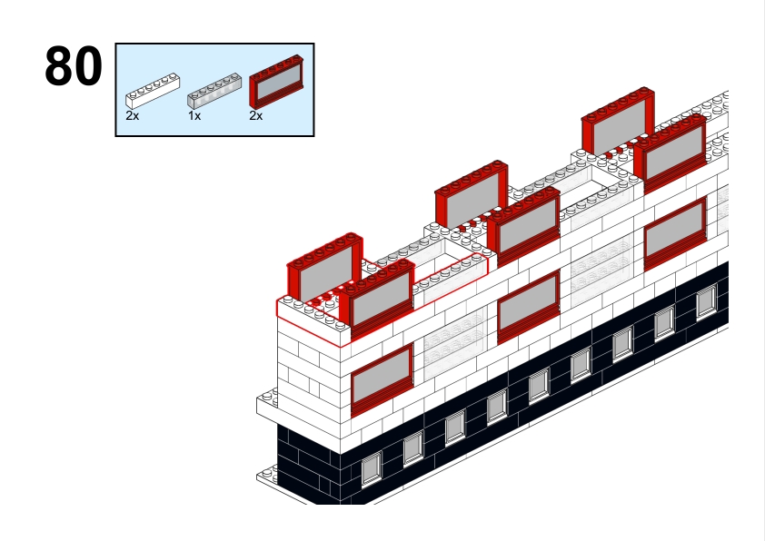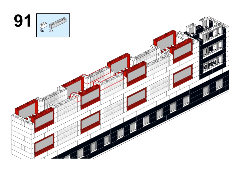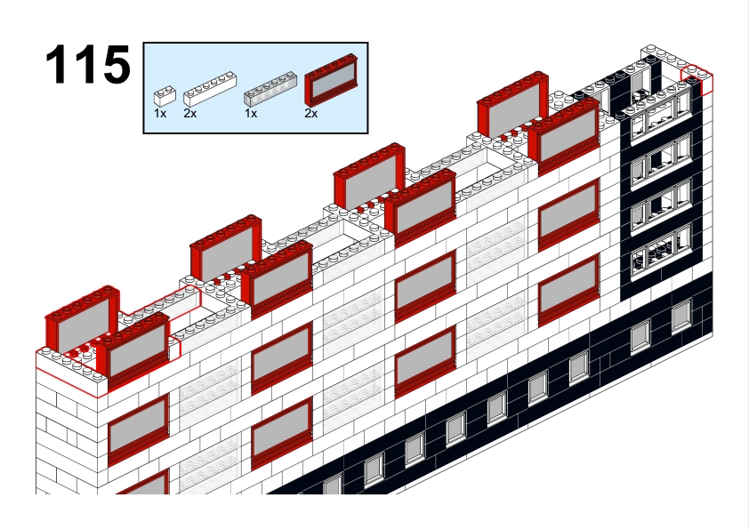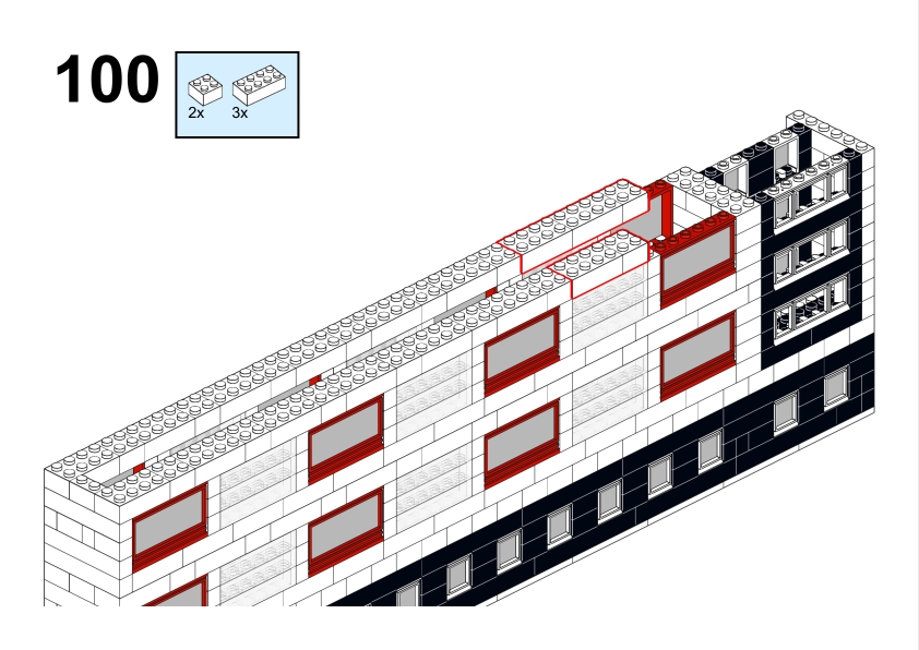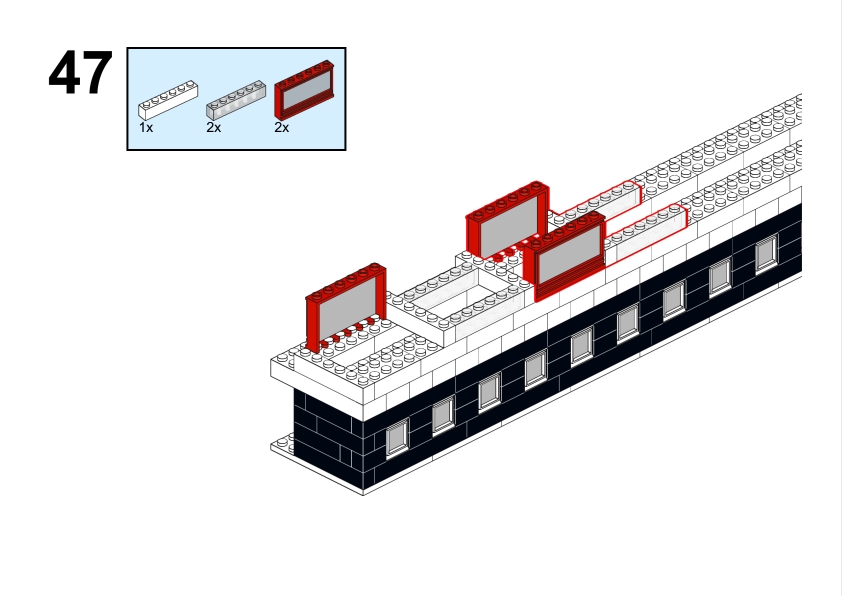 Discover this MOC apartment urban building, inspired by the classic designs of LEGO from the 1960s and 70s! A small version can be seen on the first image of this post for which I have also created instructions. Featuring a white facade with bold red window frames, a red roof, and a striking black tower, this structure captures the retro urban style of that era. With its multi-level design and modern windows, it’s ideal for a vintage LEGO city. Follow my building instructions to recreate this unique piece!