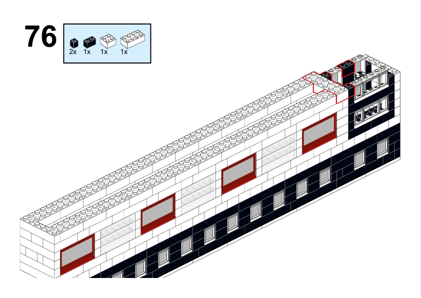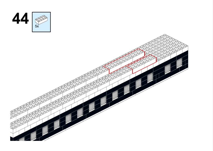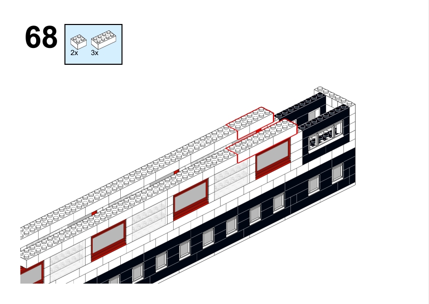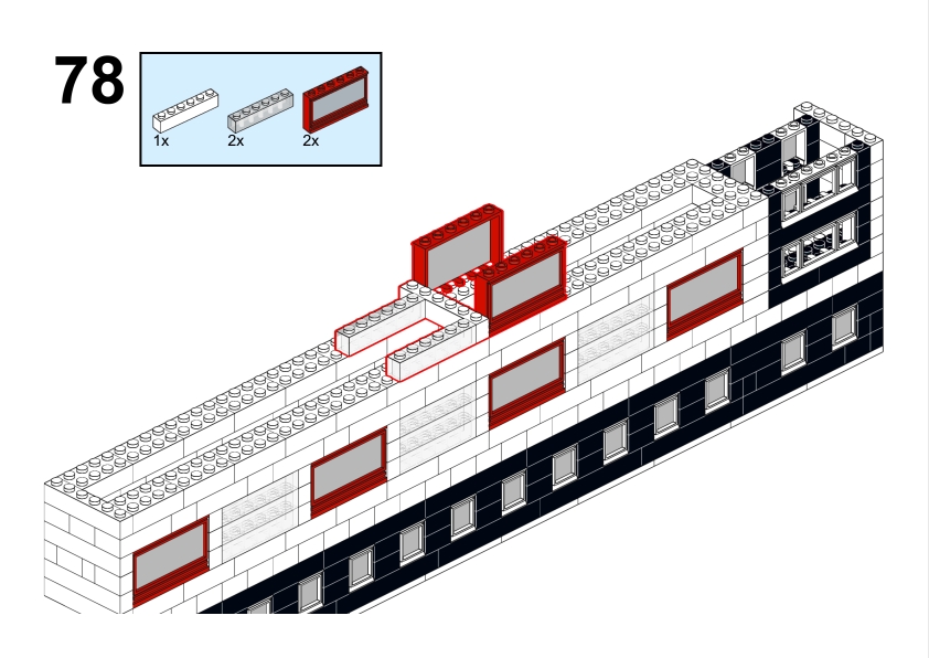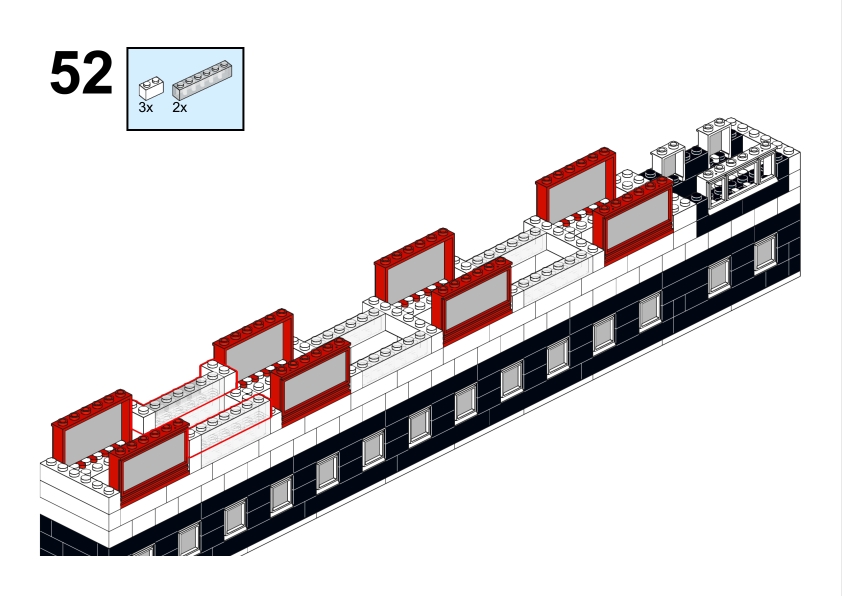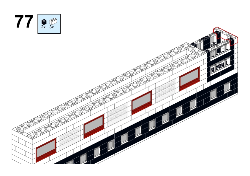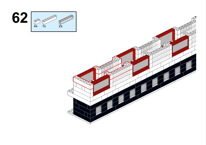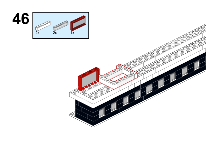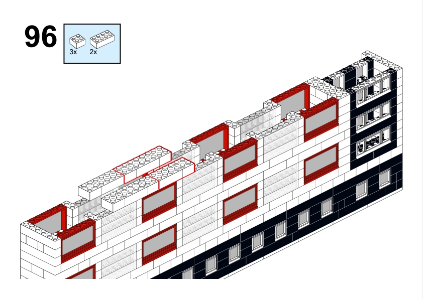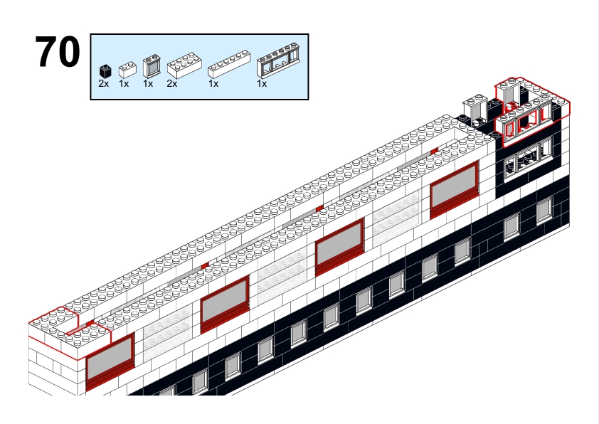 Discover this MOC apartment urban building, inspired by the classic designs of LEGO from the 1960s and 70s! A small version can be seen on the first image of this post for which I have also created instructions. Featuring a white facade with bold red window frames, a red roof, and a striking black tower, this structure captures the retro urban style of that era. With its multi-level design and modern windows, it’s ideal for a vintage LEGO city. Follow my building instructions to recreate this unique piece!