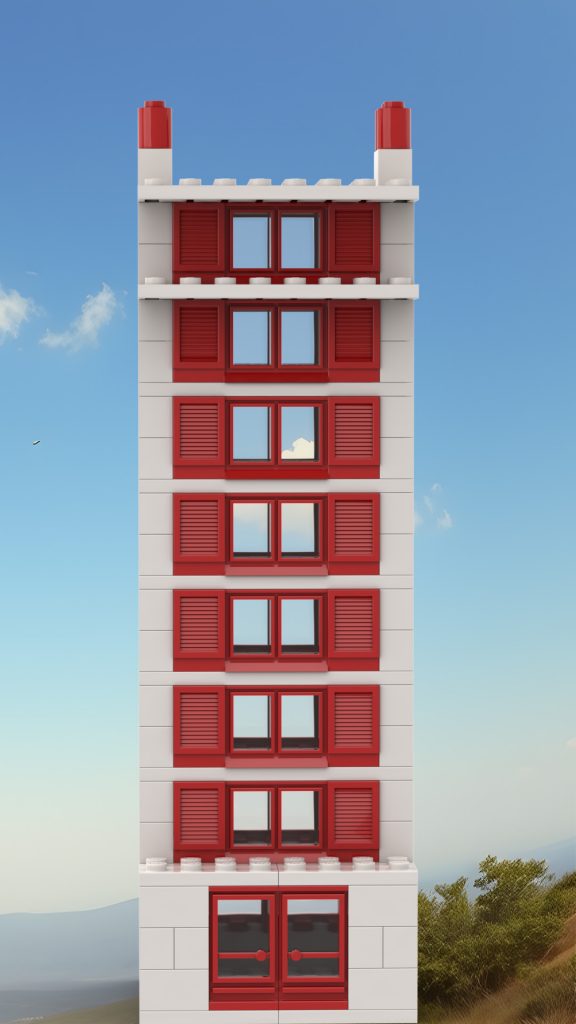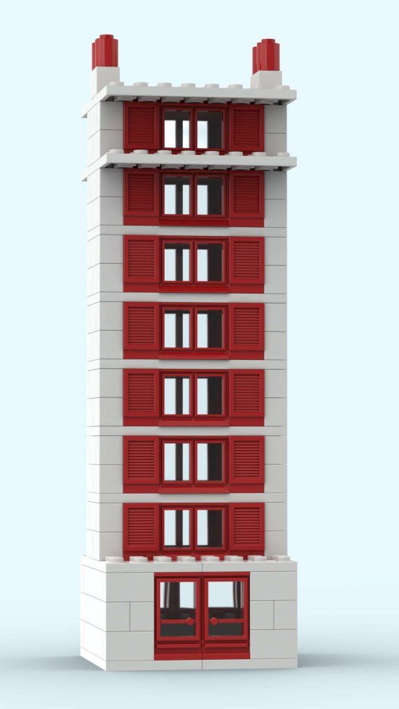 This image is the box art for LEGO set 236, “Garage and Van,” originally released in 1956 and re-released in the early 1960s as part of the LEGO System Town Plan series. The artwork captures the essence of LEGO’s early town-building sets, with a simple garage, a van, and a background tower to suggest a broader community setting.