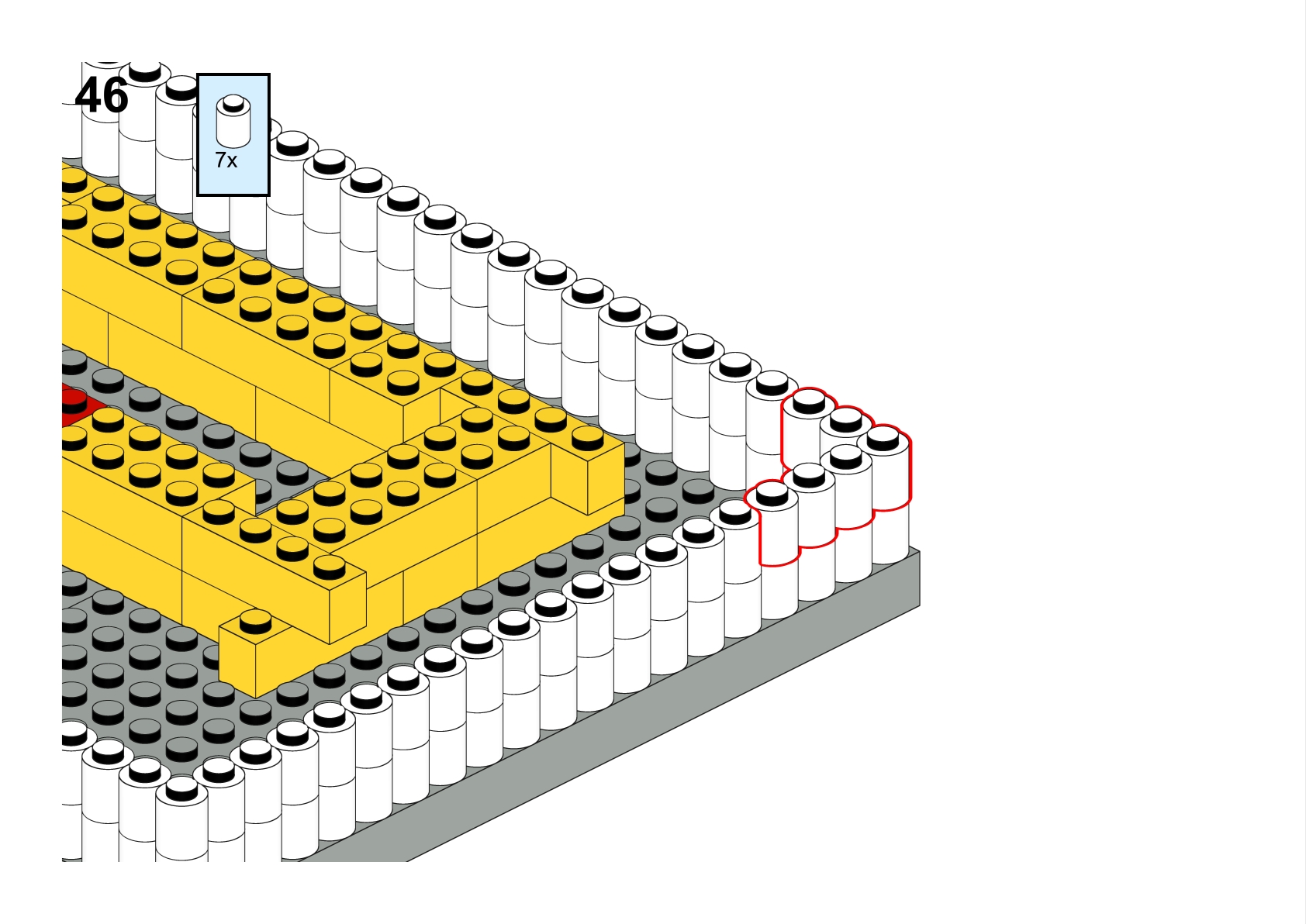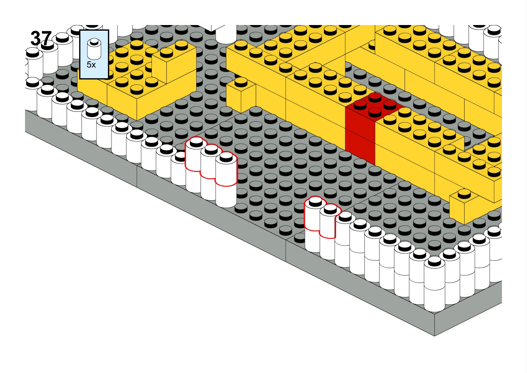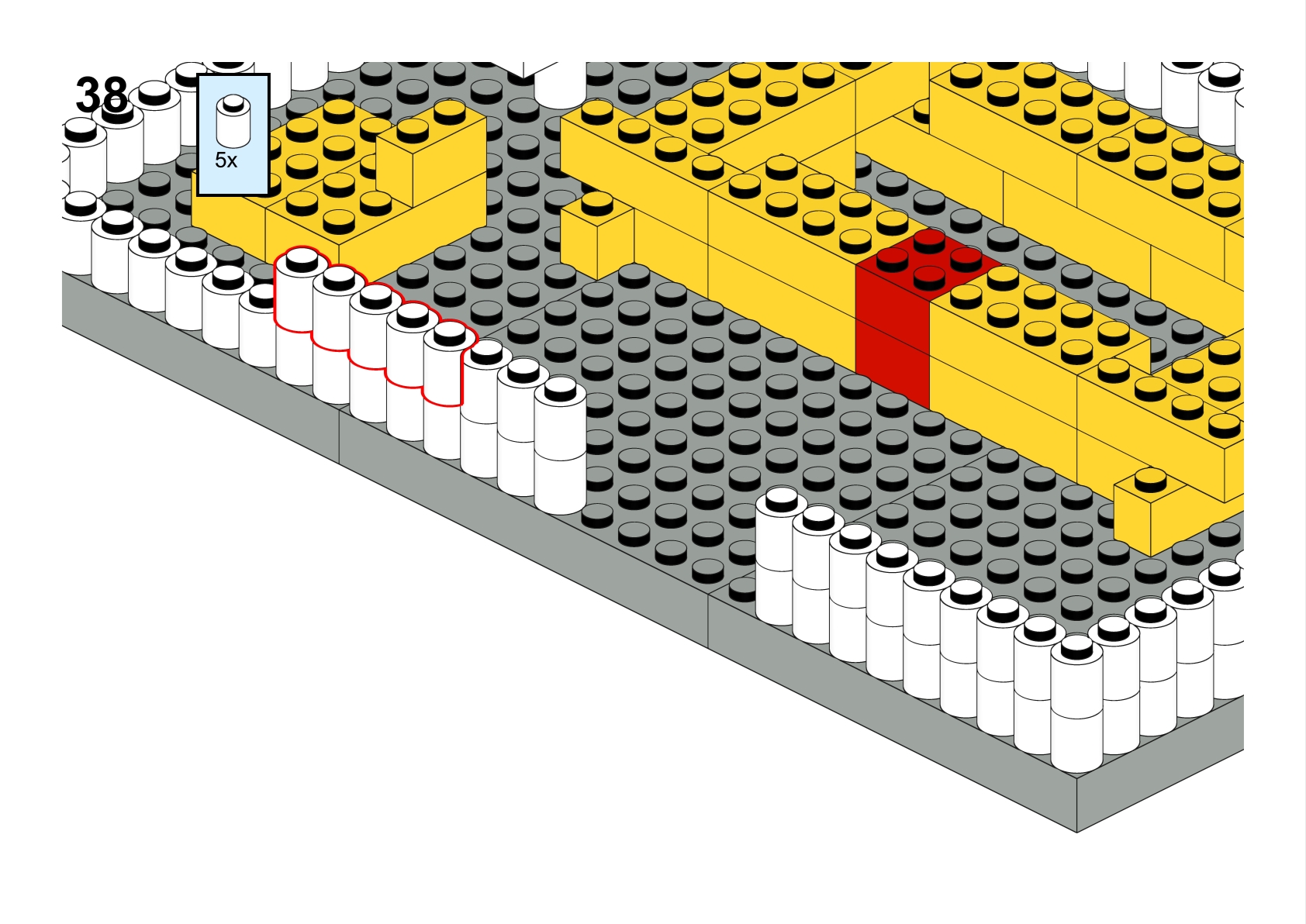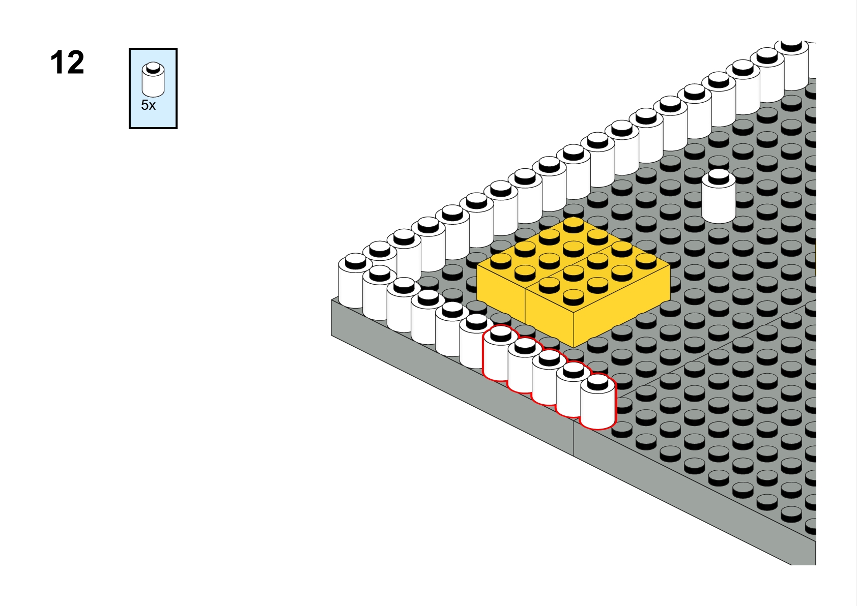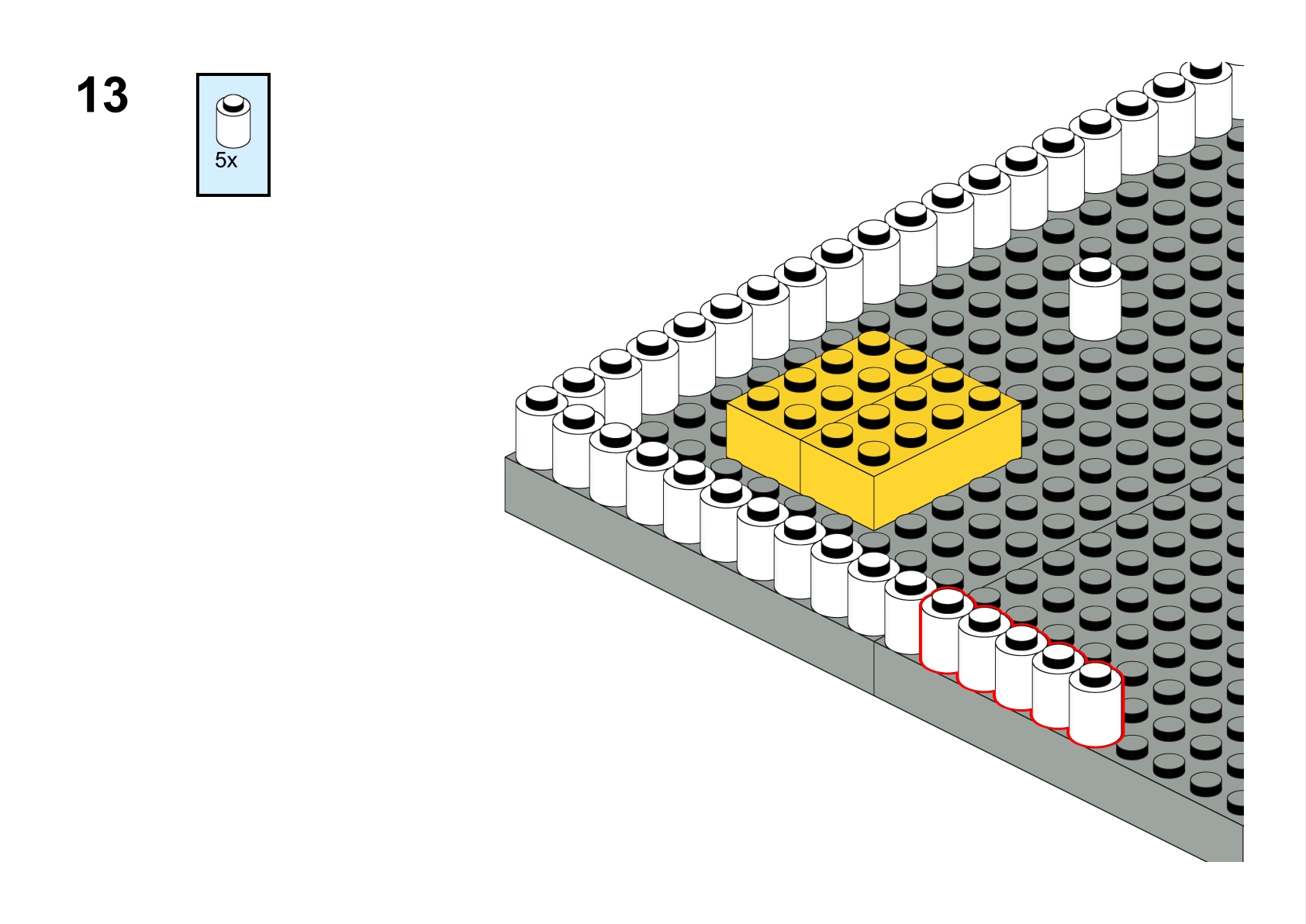It features a simple rectangular structure with white or gray walls, a red roof, a fence and a barbecue, using the 1960s primary color palette. It doesn’t use any doors or windows.