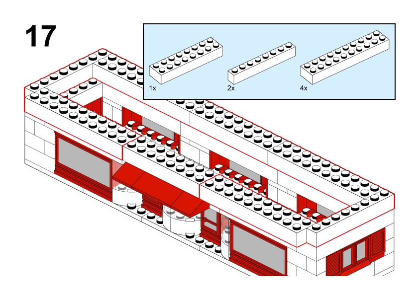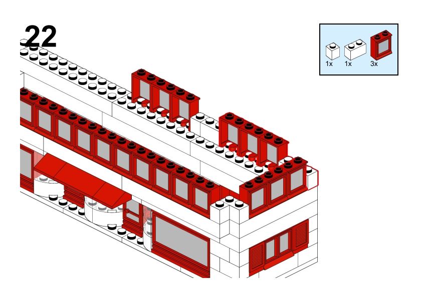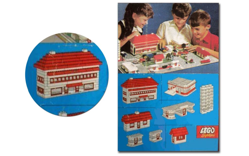 The LEGO hotel depicted in the image is a charming, vintage-style structure inspired by the designs from the LEGO System Idea Book no. 1 (238-0), published in 1960. This model reflects the aesthetic of early LEGO town sets, characterized by its simple yet iconic design.