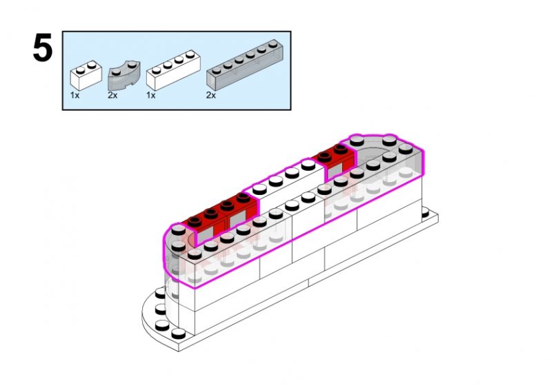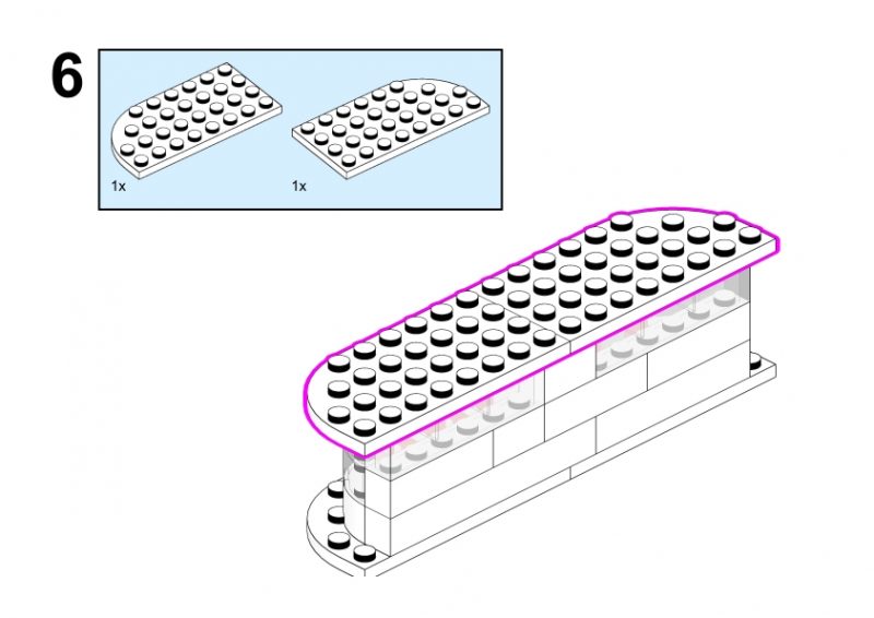 Welcome to the guide for building a quaint LEGO shop inspired by the classic designs of the Lego System Town Set. On the left side of the yellow section of the image, you’ll notice a small building partially cut off, with rounded angles, suggesting a small storefront.