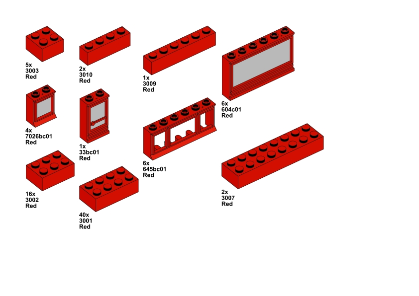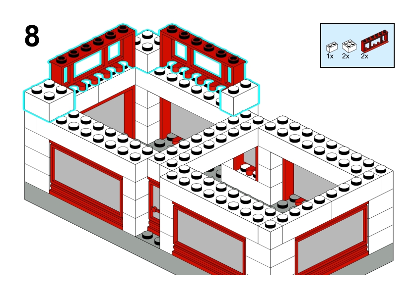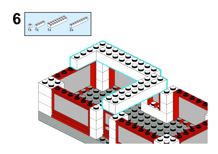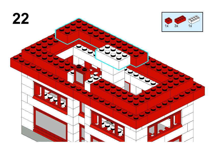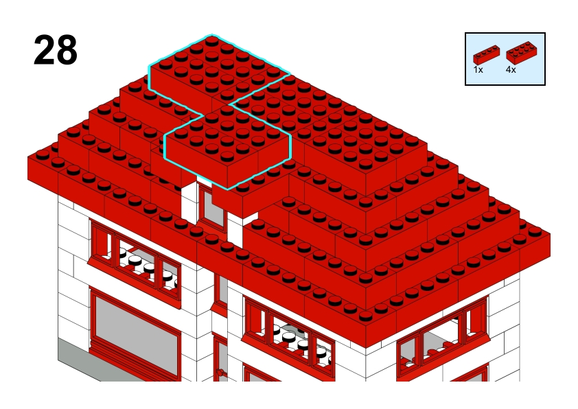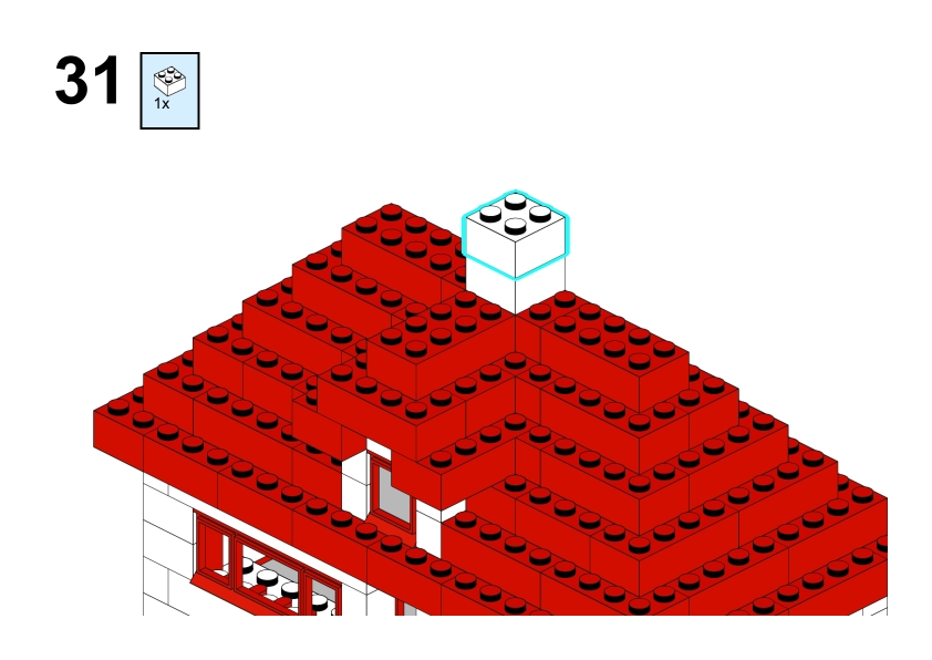 This image, sourced from the LEGO System Idea Book1 (238-0), page 2 set under the theme “Something about houses,”. The construction highlighted within the green circle showcases a charming house with 2 floors, a red roof and white walls, decorated with a dormer window. On this web page, we provide step-by-step instructions to build this delightful house. Interestingly, the image includes pieces on top of the dormer window that did not exist in the original LEGO sets. Additionally, in the instructions provided, I have incorporated extra elements to ensure the roof’s stability. Also the back side of it is improvised based on the front, as this is the only existing picture of this construction.