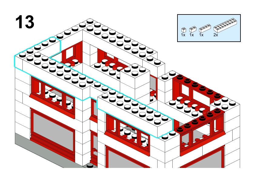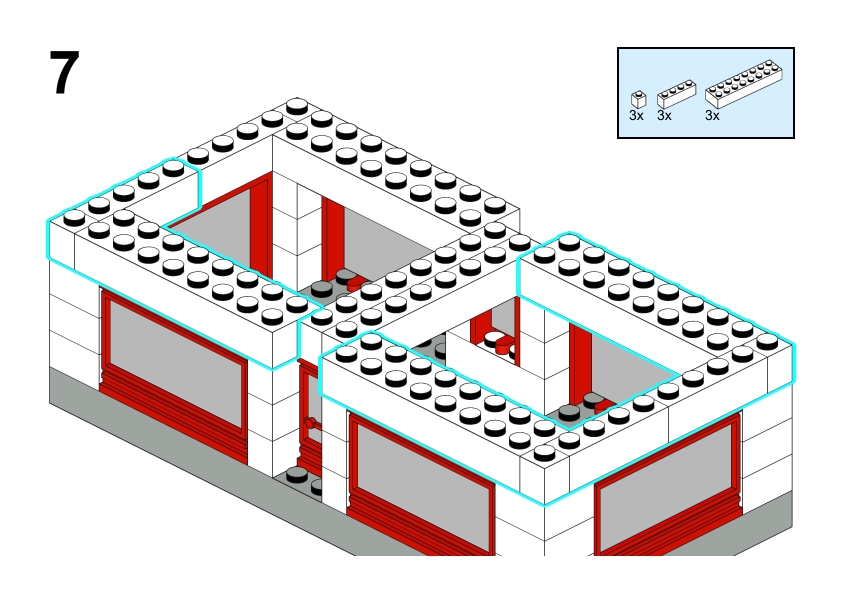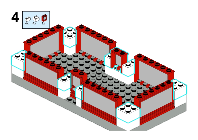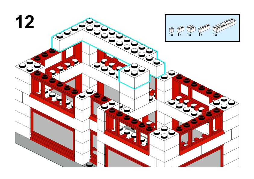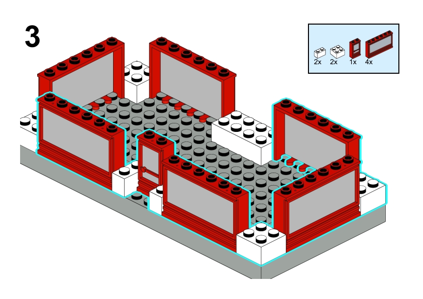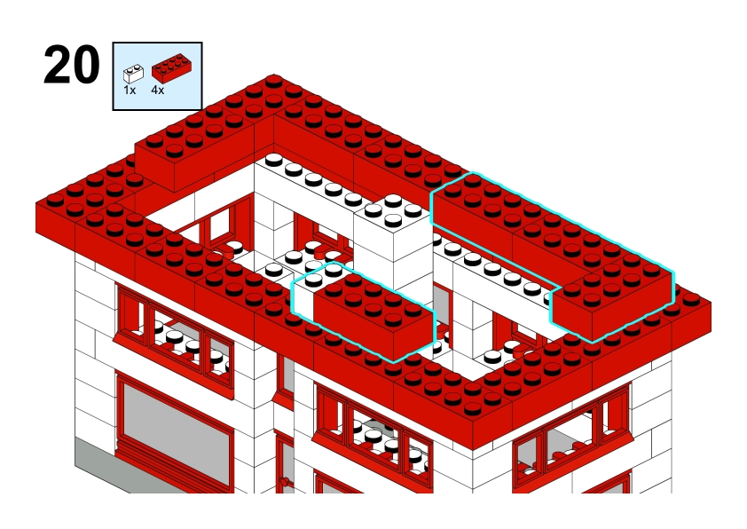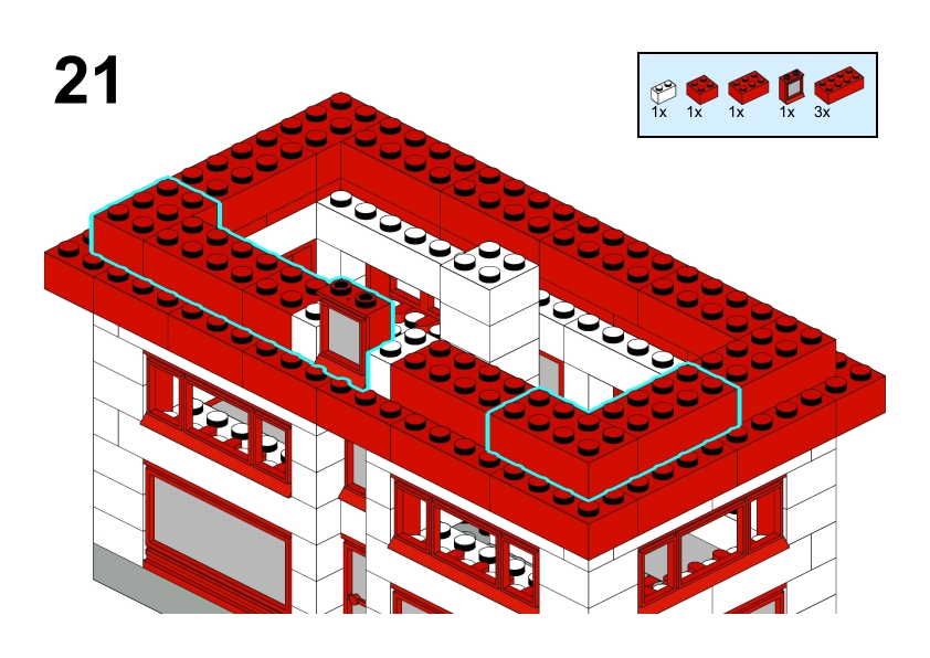 This image, sourced from the LEGO System Idea Book1 (238-0), page 2 set under the theme “Something about houses,”. The construction highlighted within the green circle showcases a charming house with 2 floors, a red roof and white walls, decorated with a dormer window. On this web page, we provide step-by-step instructions to build this delightful house. Interestingly, the image includes pieces on top of the dormer window that did not exist in the original LEGO sets. Additionally, in the instructions provided, I have incorporated extra elements to ensure the roof’s stability. Also the back side of it is improvised based on the front, as this is the only existing picture of this construction.