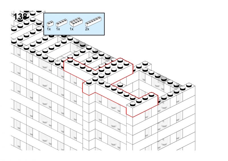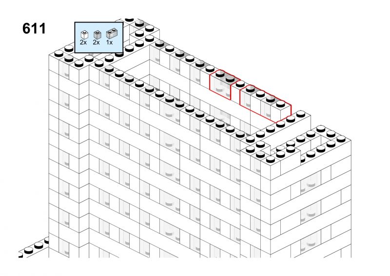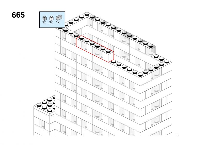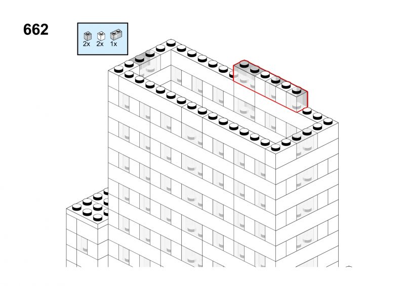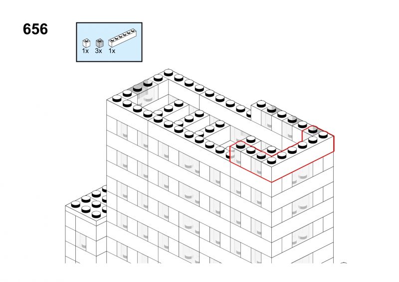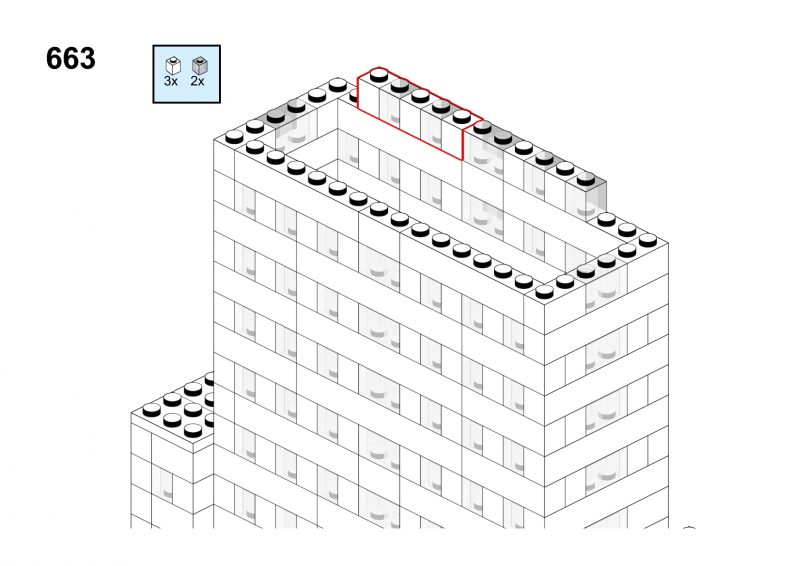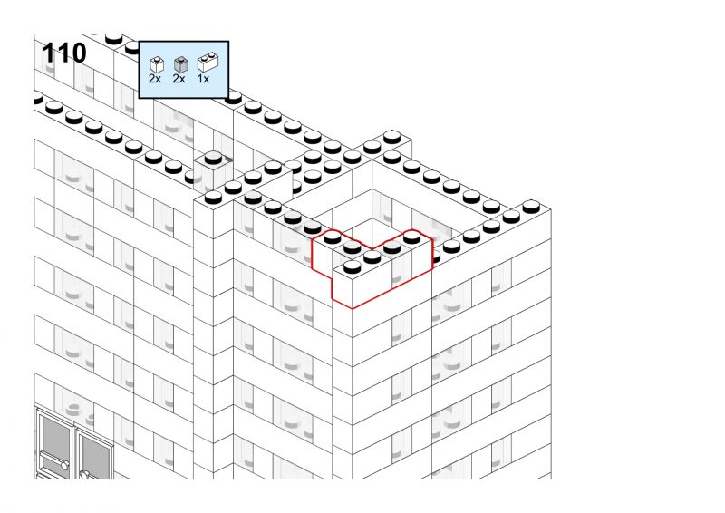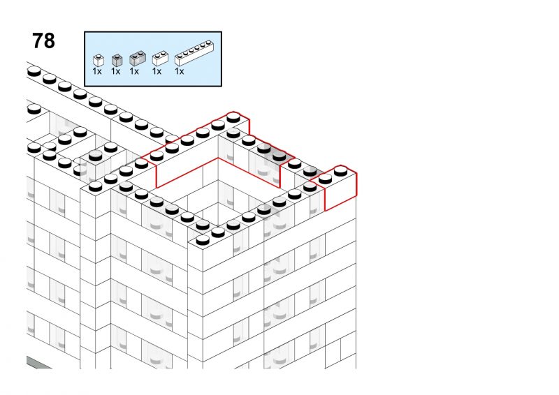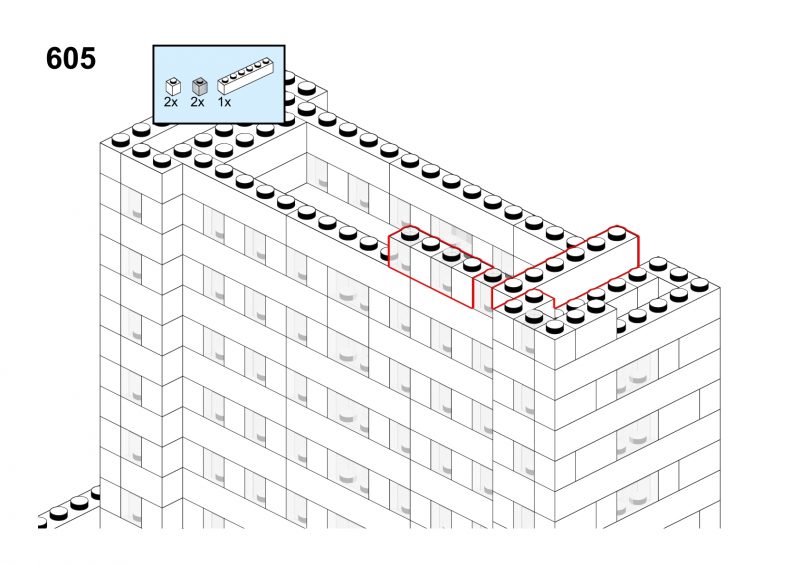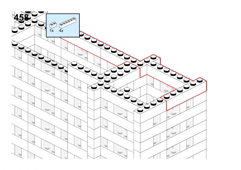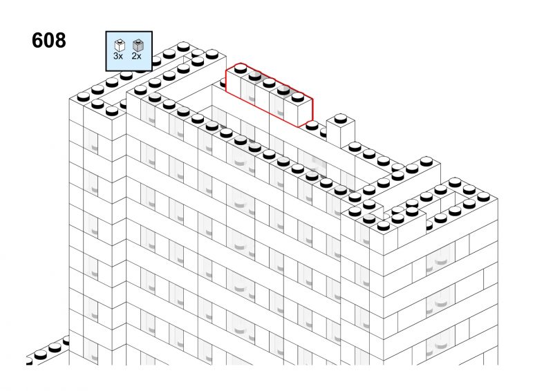 I have built it recently, and included a lighting system. I deviated a bit from the plan and inventory bellow to make it slightly lighter but same height and width. I have added a Hotel sign on top of the doors. Also the top 6 floors level in this version is 6 slots wide which makes it more comfortable, and I have reduced the number of inner reinforcement. It is stable and relatively solid. I’ll drop the insructions and inventory soon.