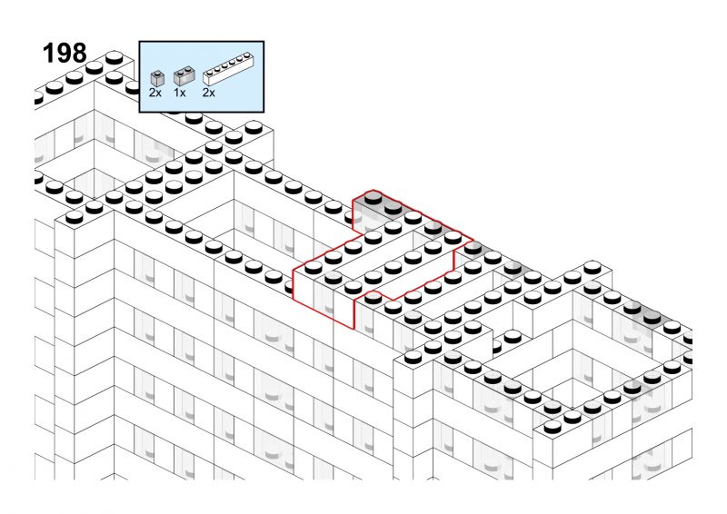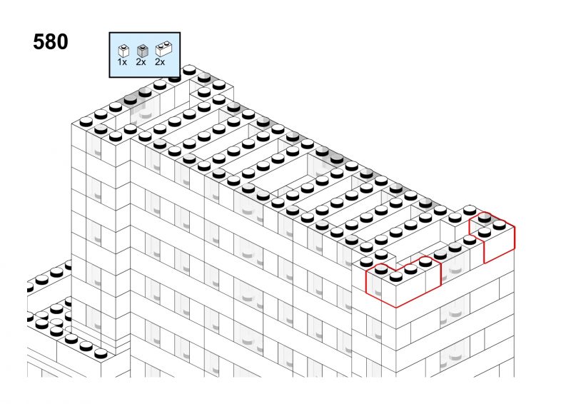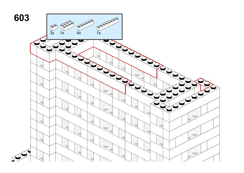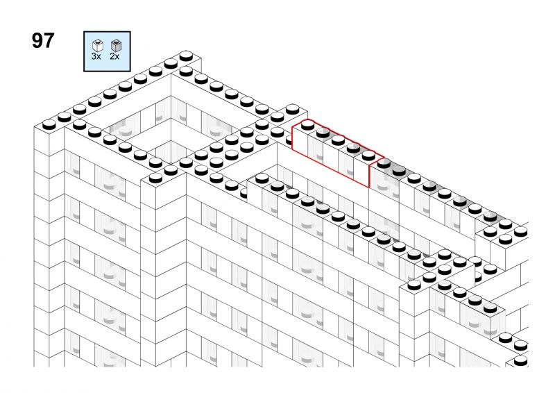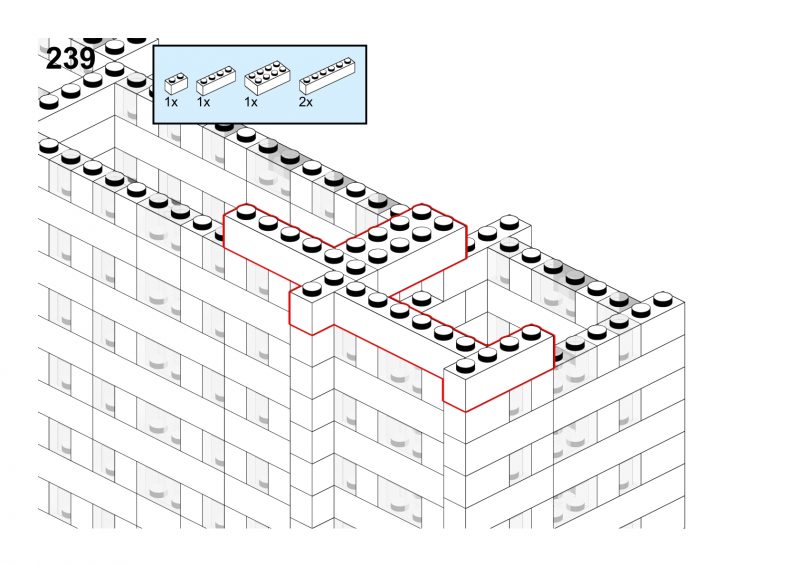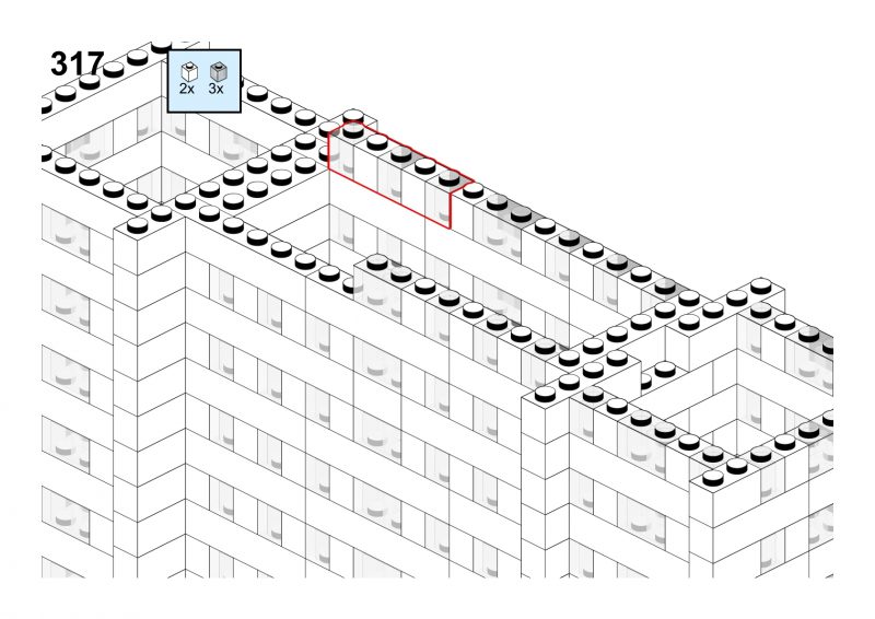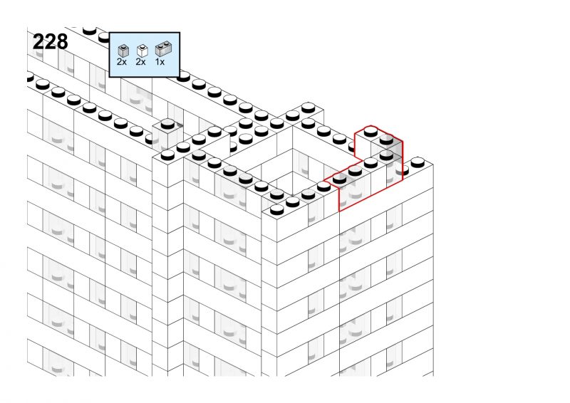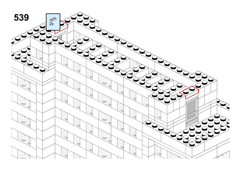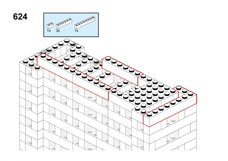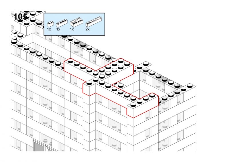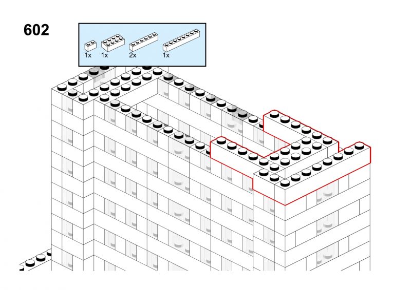 I have built it recently, and included a lighting system. I deviated a bit from the plan and inventory bellow to make it slightly lighter but same height and width. I have added a Hotel sign on top of the doors. Also the top 6 floors level in this version is 6 slots wide which makes it more comfortable, and I have reduced the number of inner reinforcement. It is stable and relatively solid. I’ll drop the insructions and inventory soon.