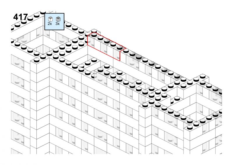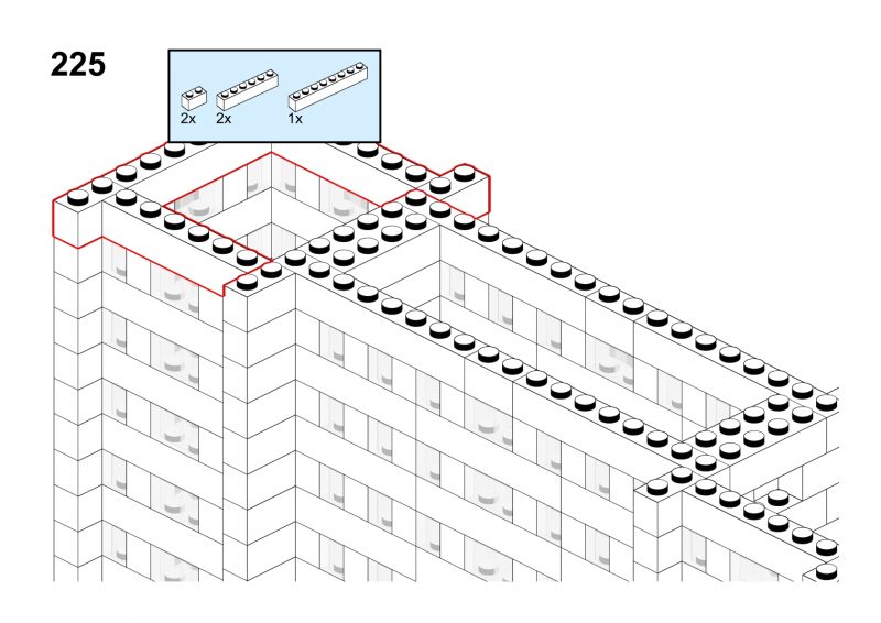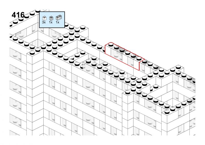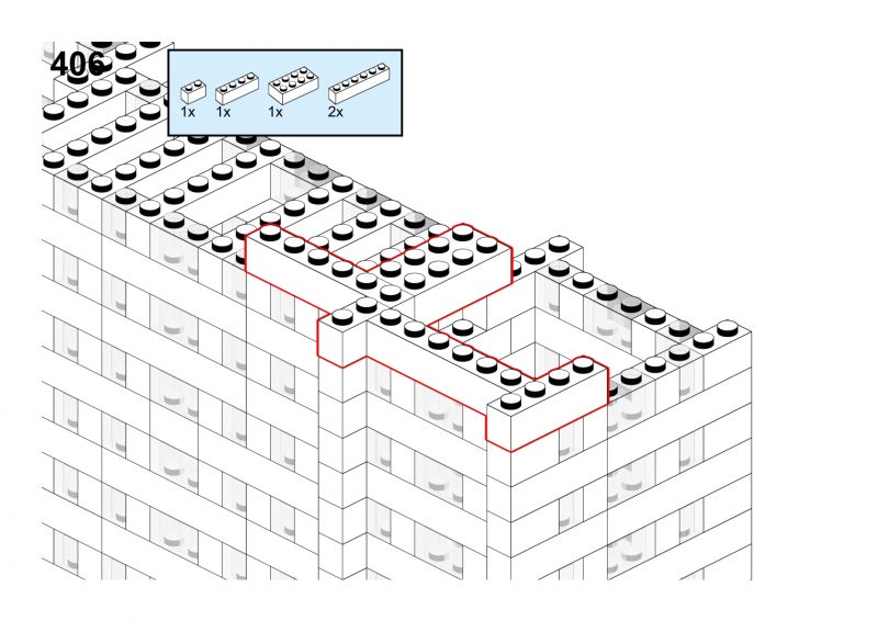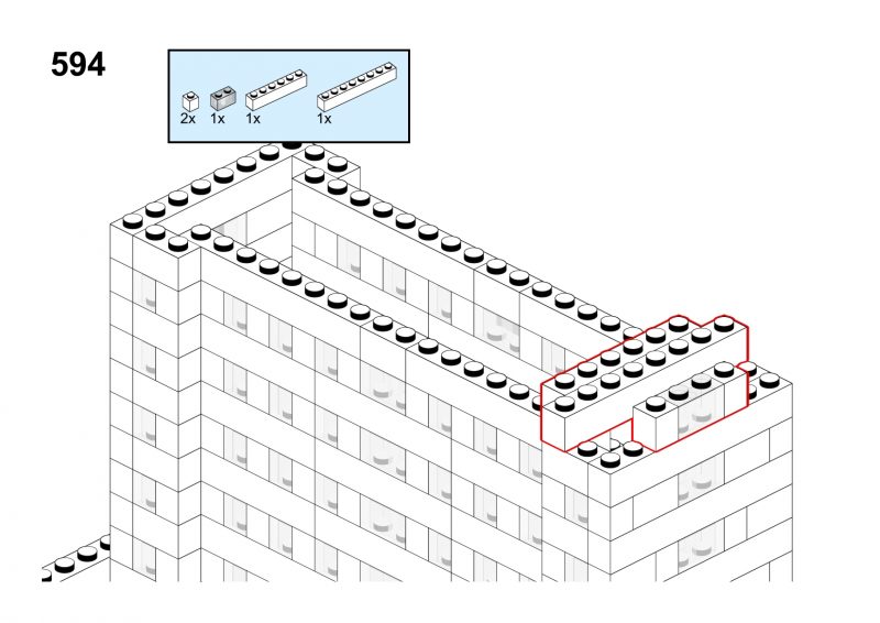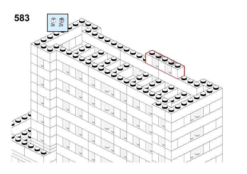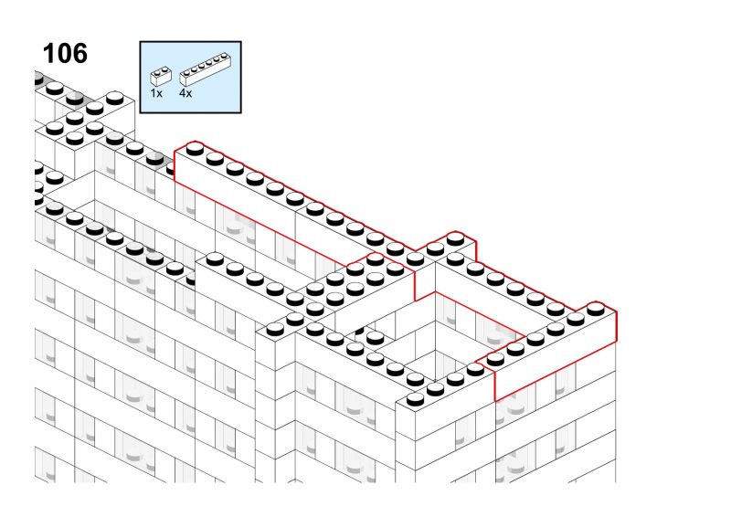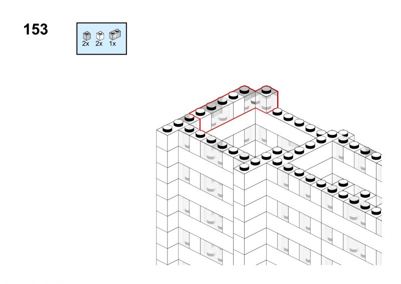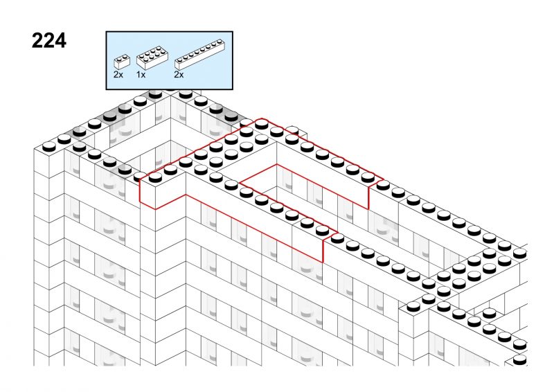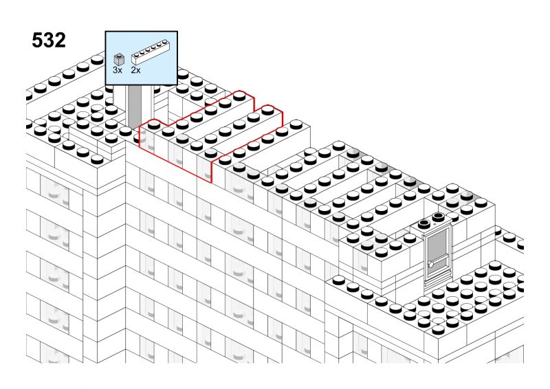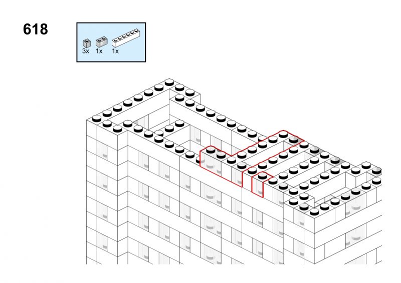 I have built it recently, and included a lighting system. I deviated a bit from the plan and inventory bellow to make it slightly lighter but same height and width. I have added a Hotel sign on top of the doors. Also the top 6 floors level in this version is 6 slots wide which makes it more comfortable, and I have reduced the number of inner reinforcement. It is stable and relatively solid. I’ll drop the insructions and inventory soon.
