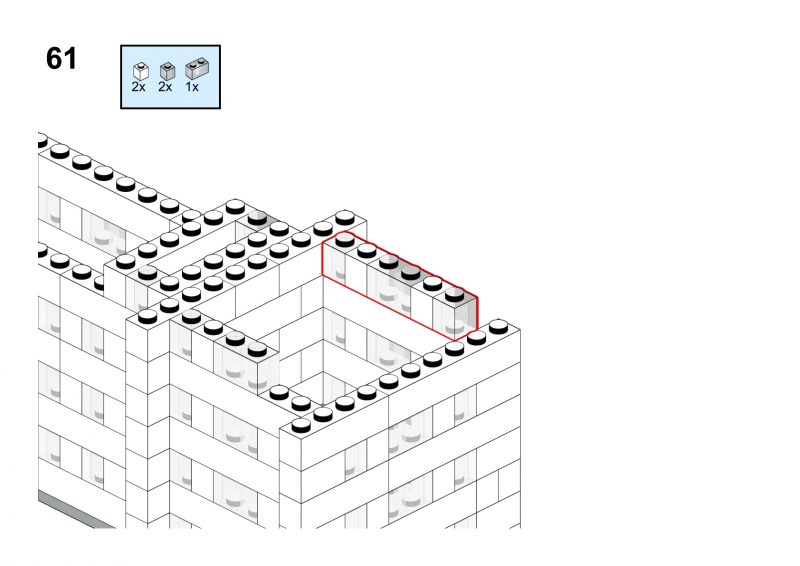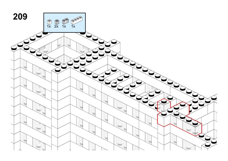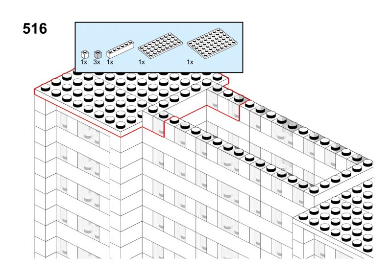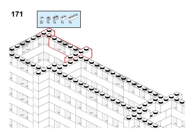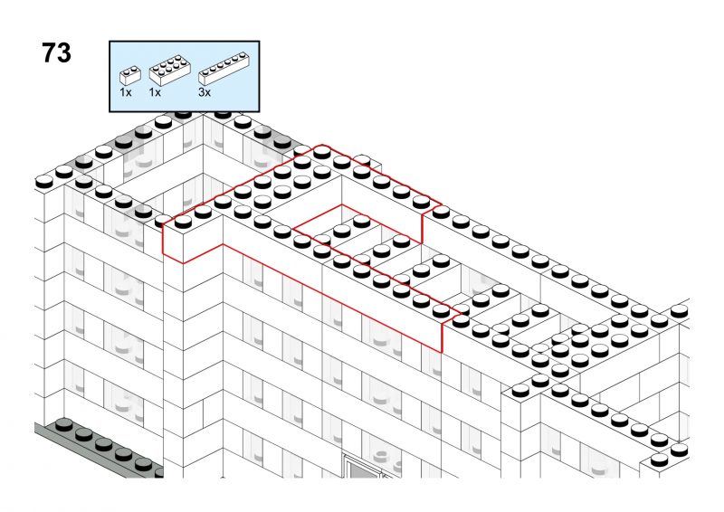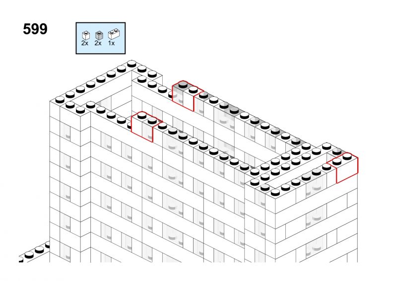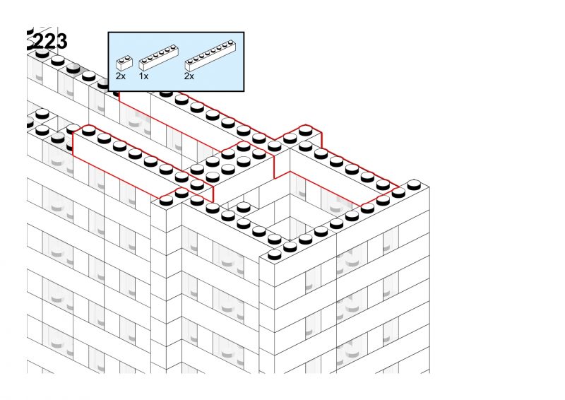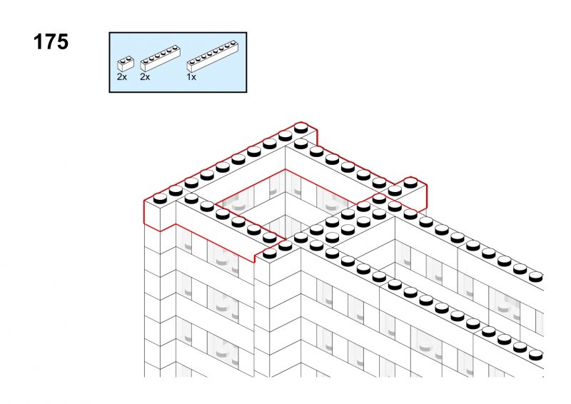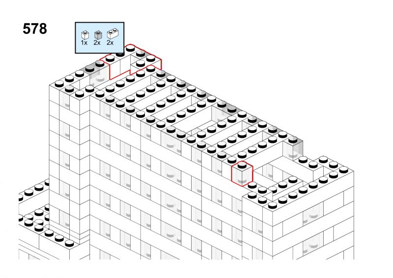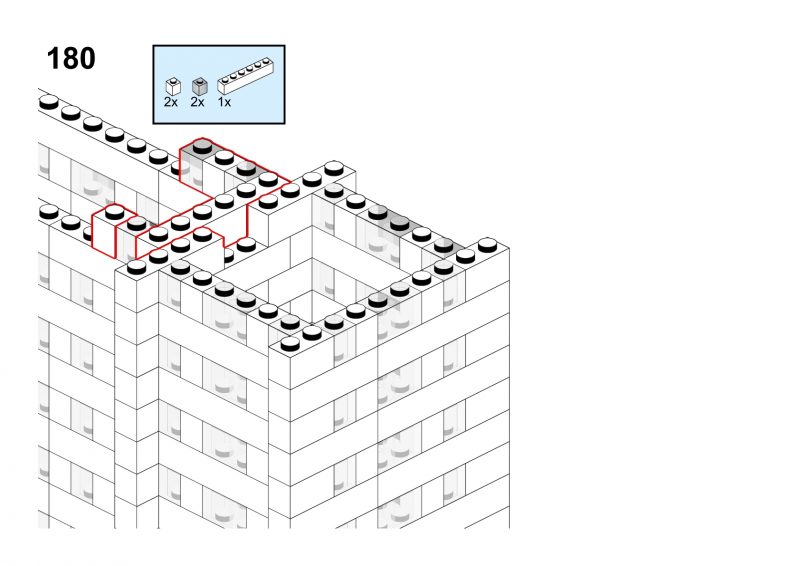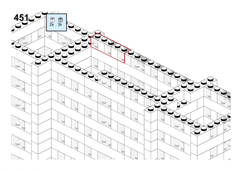 I have built it recently, and included a lighting system. I deviated a bit from the plan and inventory bellow to make it slightly lighter but same height and width. I have added a Hotel sign on top of the doors. Also the top 6 floors level in this version is 6 slots wide which makes it more comfortable, and I have reduced the number of inner reinforcement. It is stable and relatively solid. I’ll drop the insructions and inventory soon.