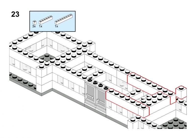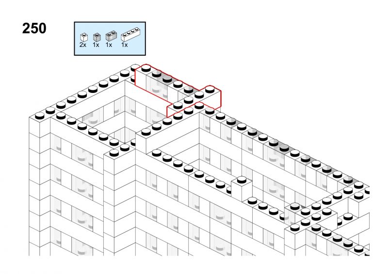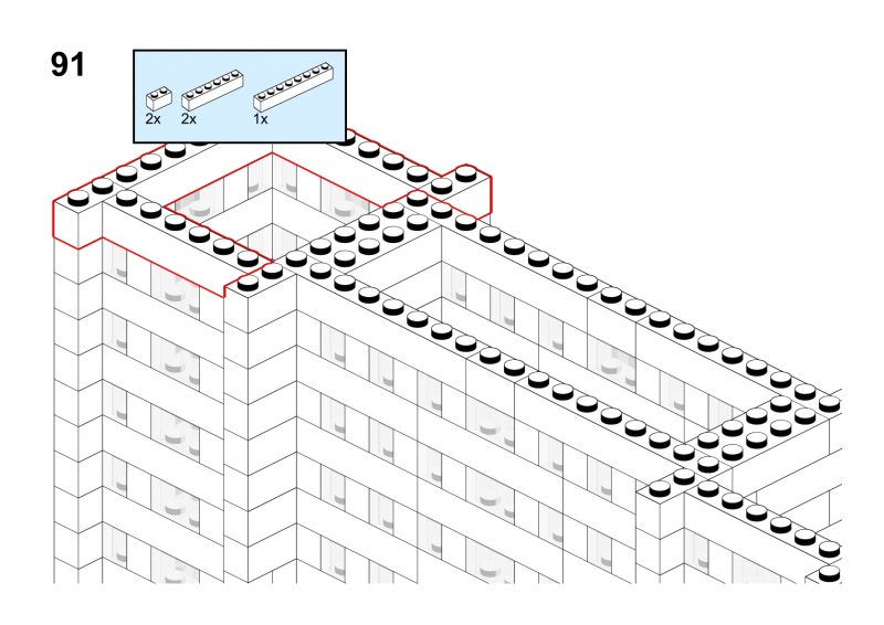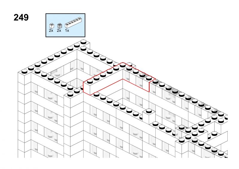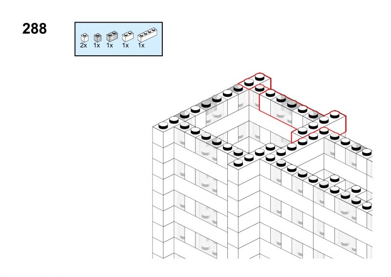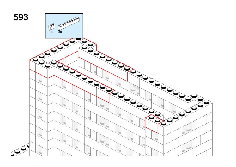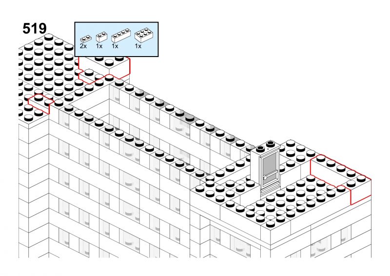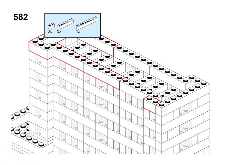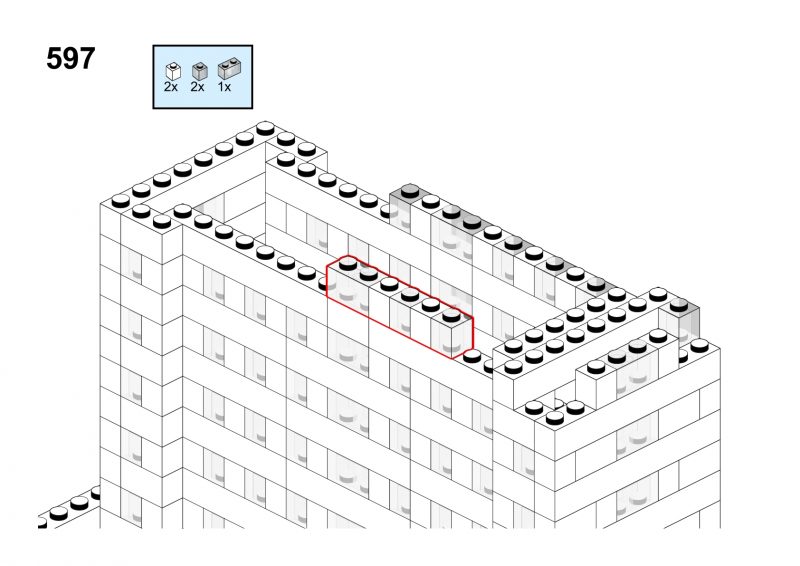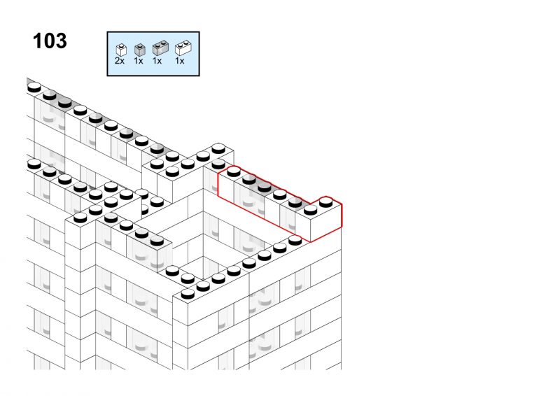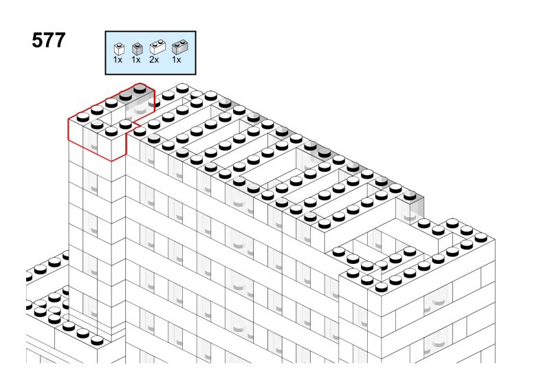 I have built it recently, and included a lighting system. I deviated a bit from the plan and inventory bellow to make it slightly lighter but same height and width. I have added a Hotel sign on top of the doors. Also the top 6 floors level in this version is 6 slots wide which makes it more comfortable, and I have reduced the number of inner reinforcement. It is stable and relatively solid. I’ll drop the insructions and inventory soon.