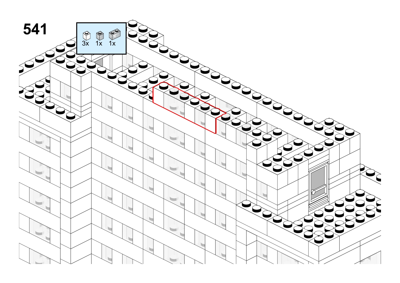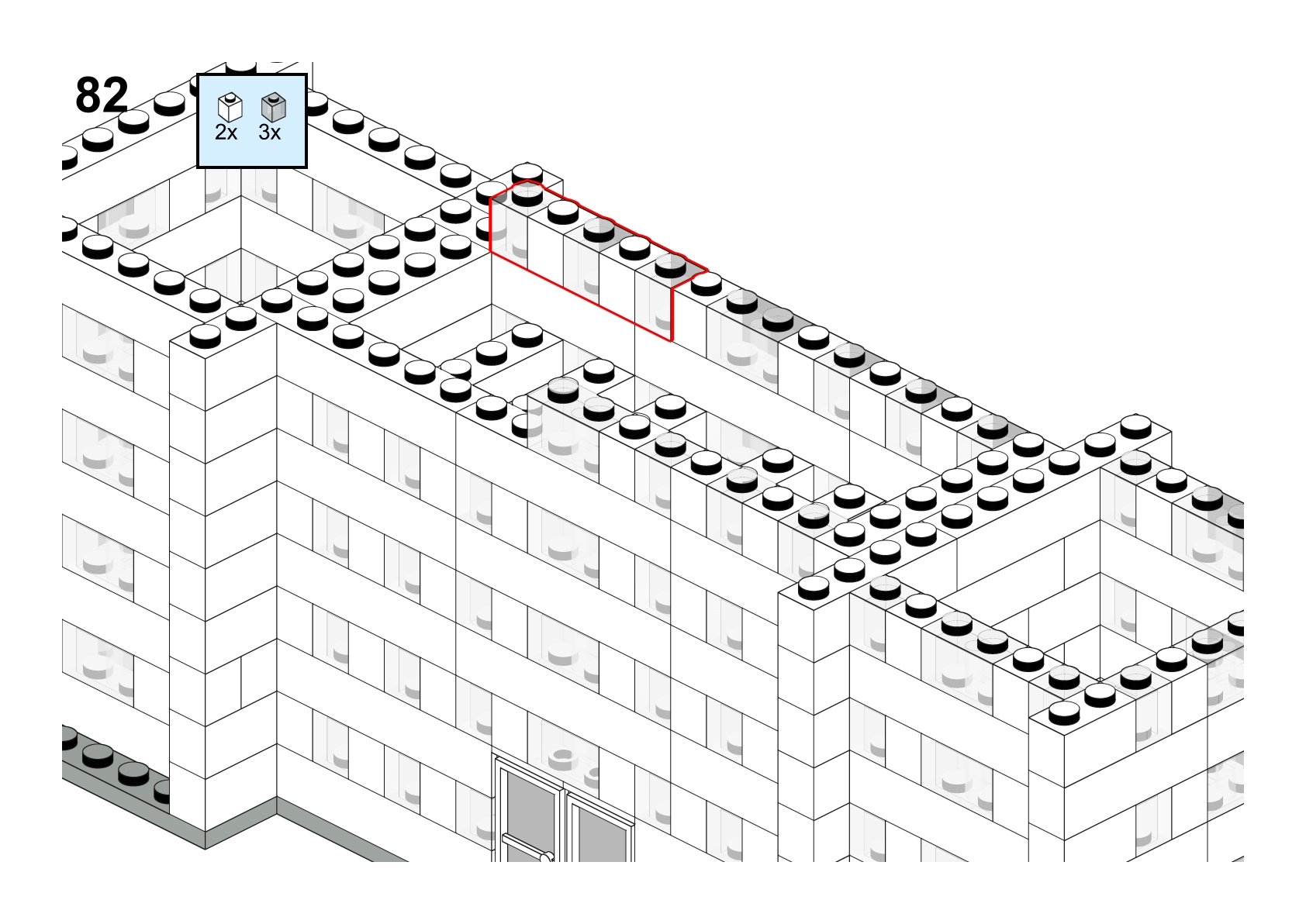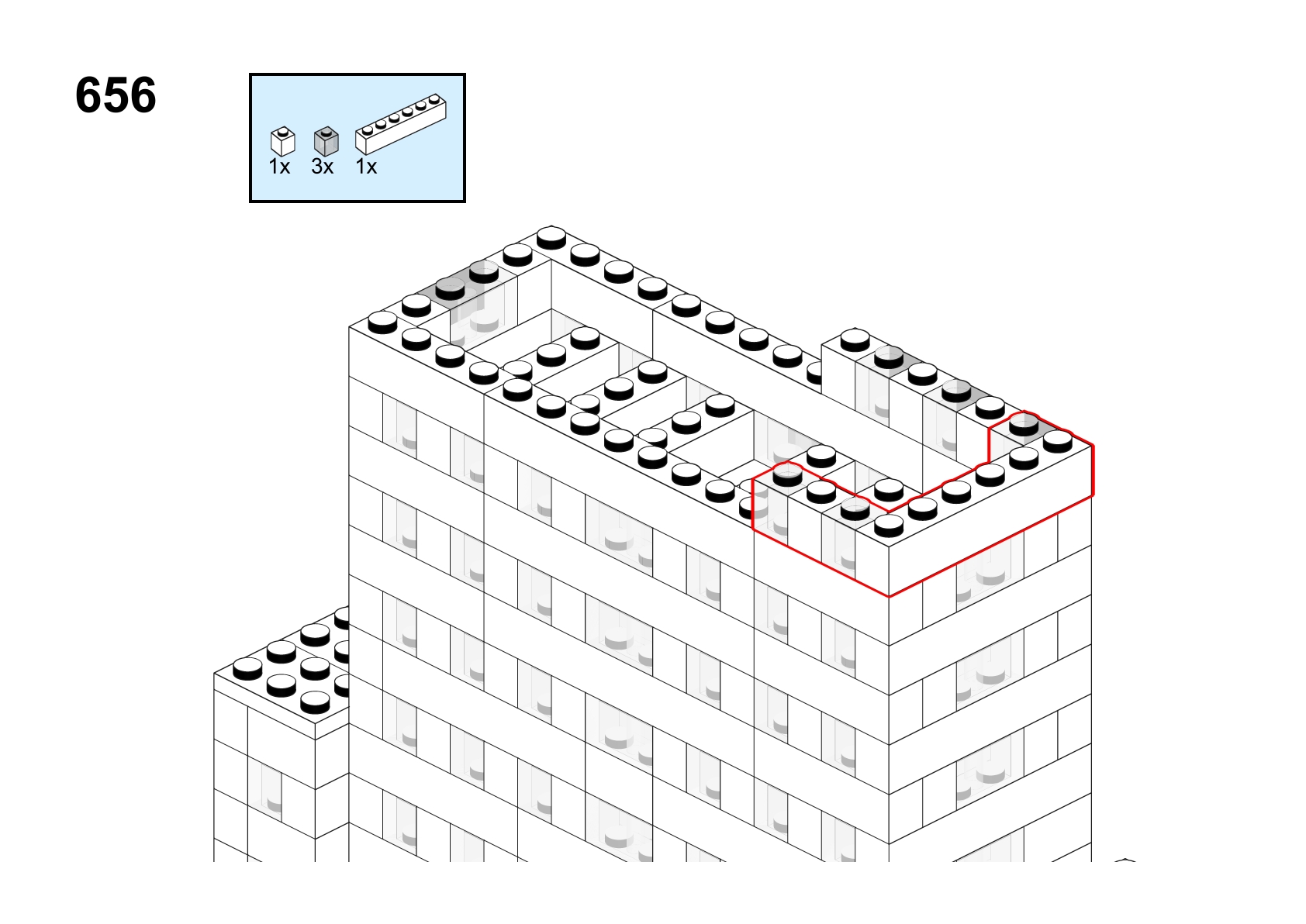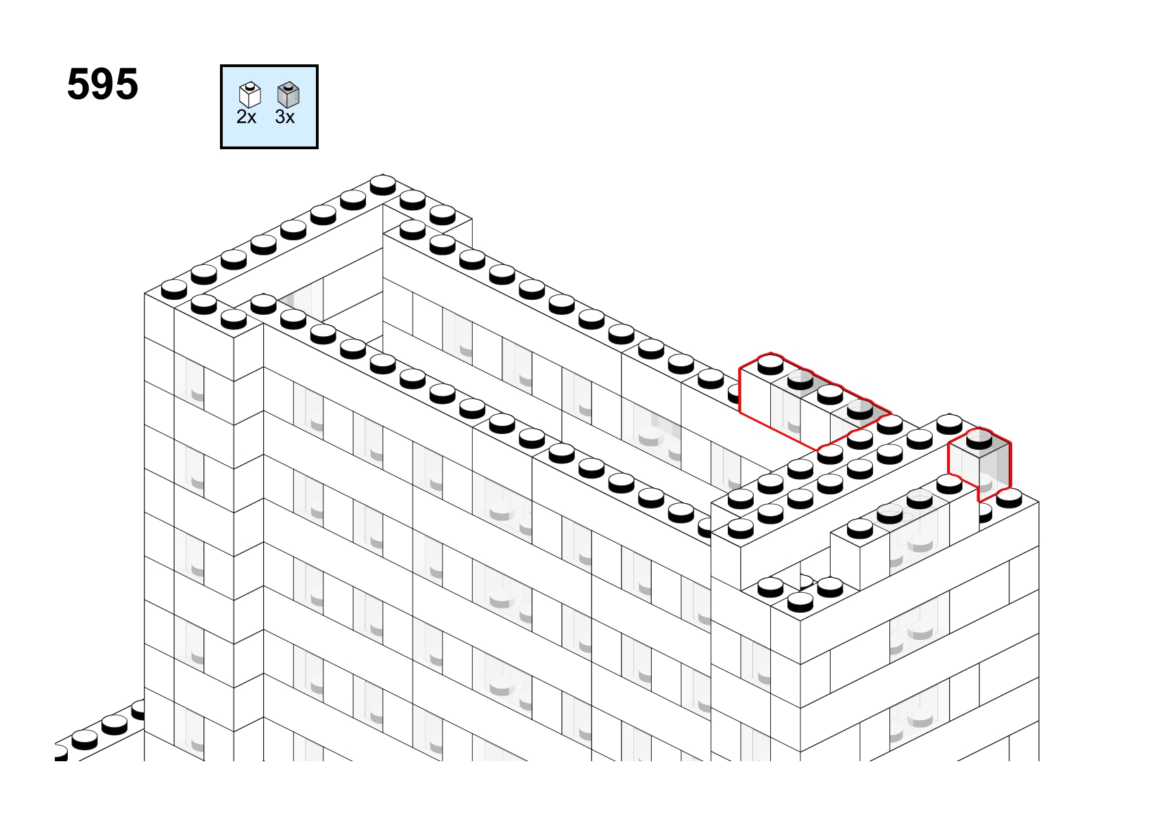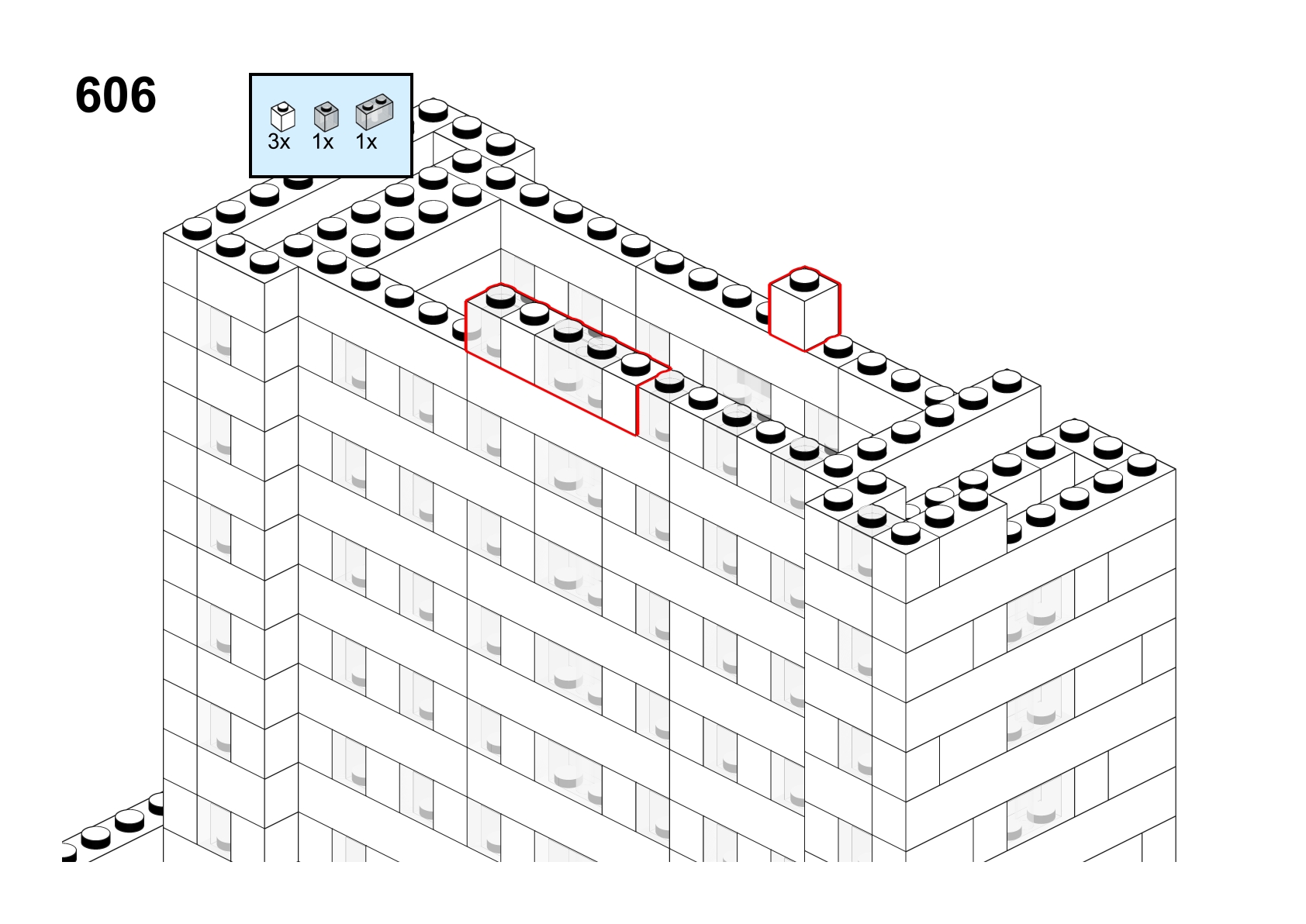 I have built it recently, and included a lighting system. I deviated a bit from the plan and inventory bellow to make it slightly lighter but same height and width. I have added a Hotel sign on top of the doors. Also the top 6 floors level in this version is 6 slots wide which makes it more comfortable, and I have reduced the number of inner reinforcement. It is stable and relatively solid. I’ll drop the insructions and inventory soon.