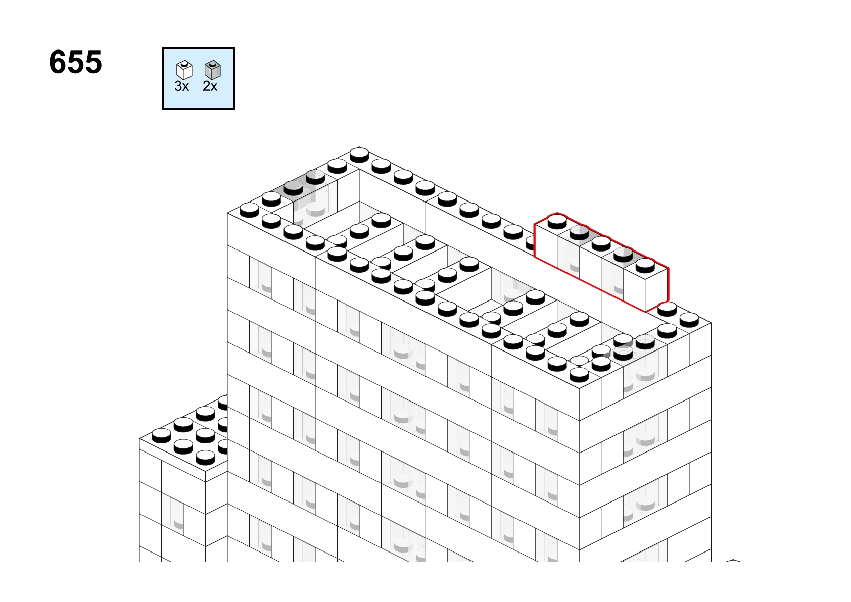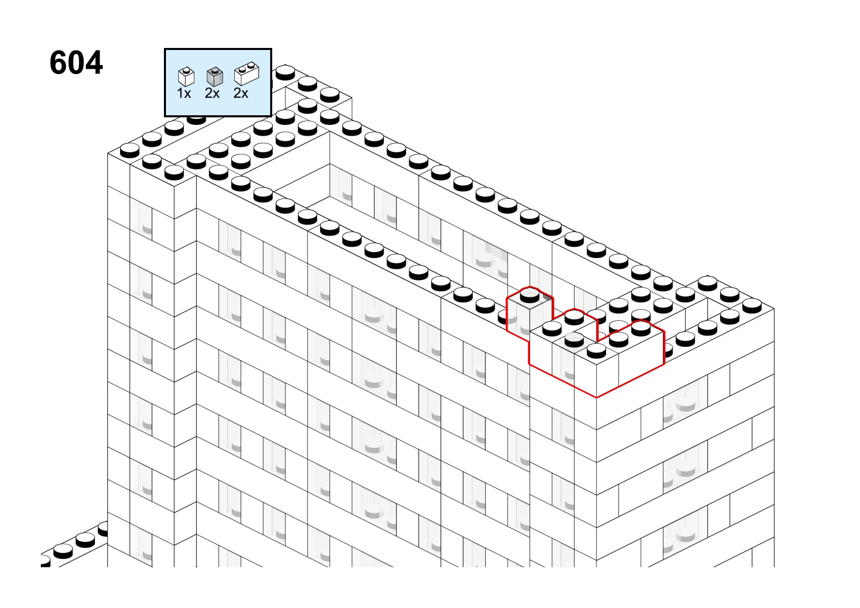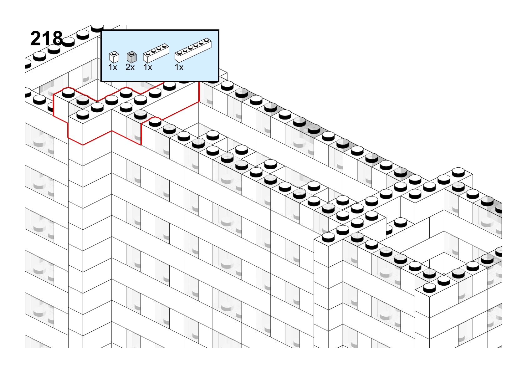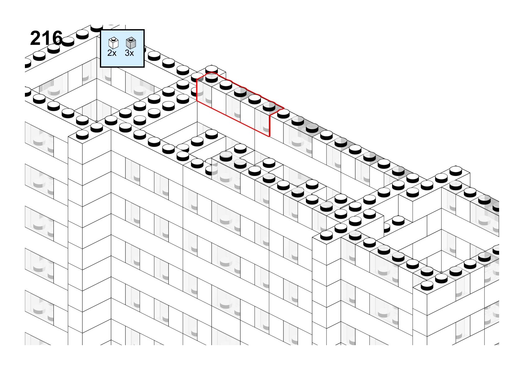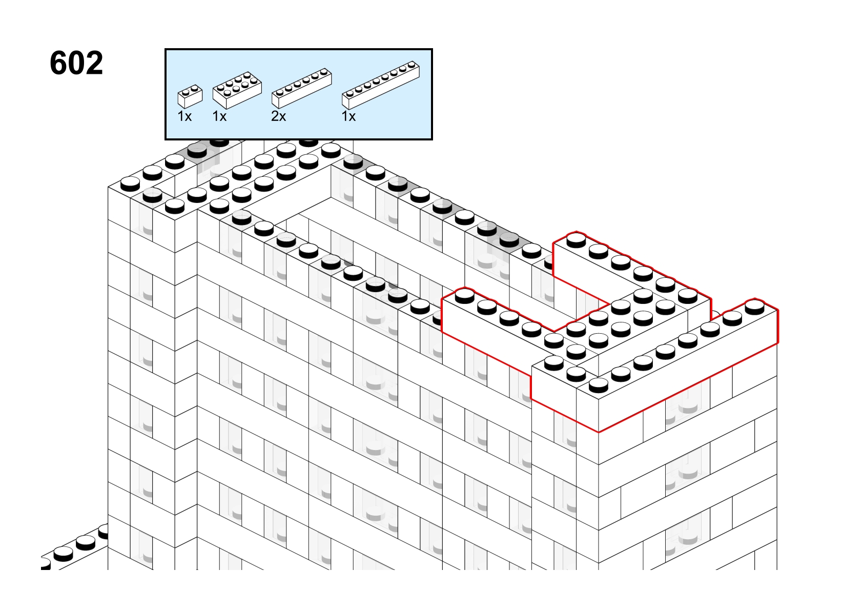 I have built it recently, and included a lighting system. I deviated a bit from the plan and inventory bellow to make it slightly lighter but same height and width. I have added a Hotel sign on top of the doors. Also the top 6 floors level in this version is 6 slots wide which makes it more comfortable, and I have reduced the number of inner reinforcement. It is stable and relatively solid. I’ll drop the insructions and inventory soon.