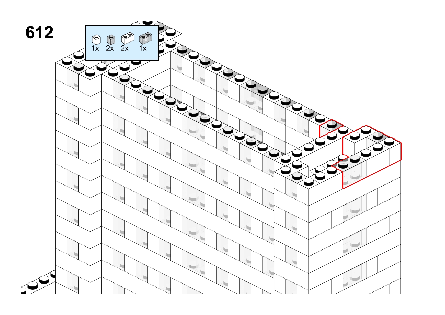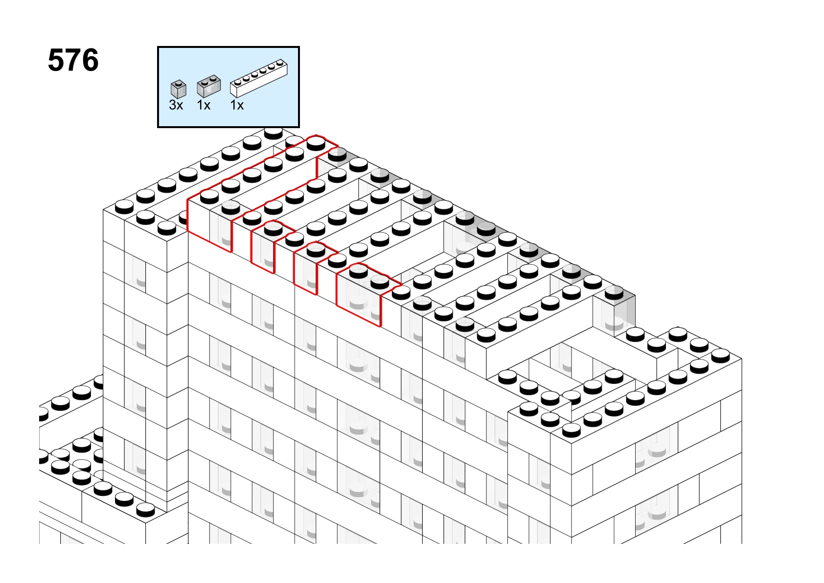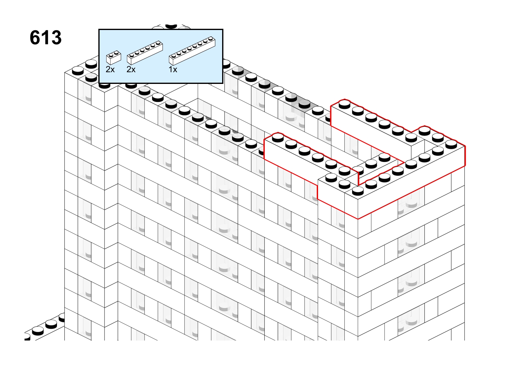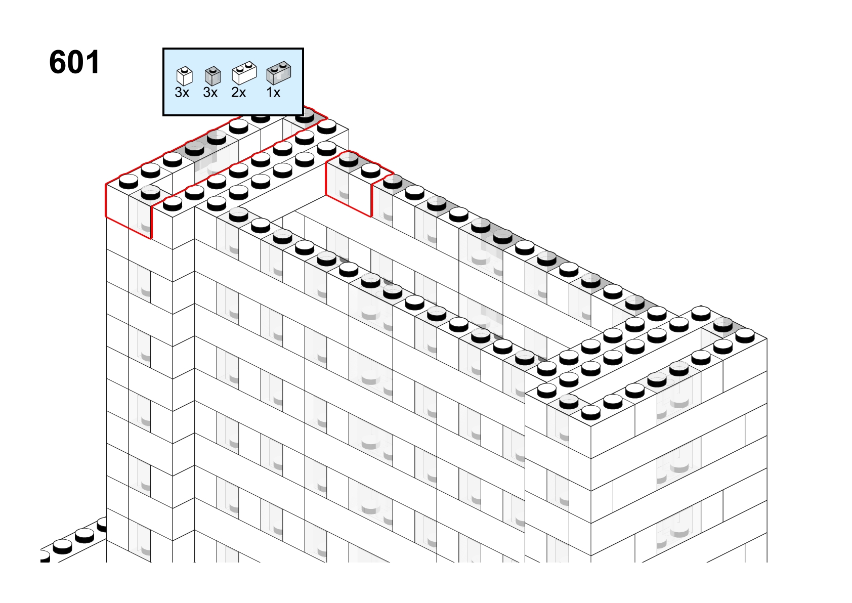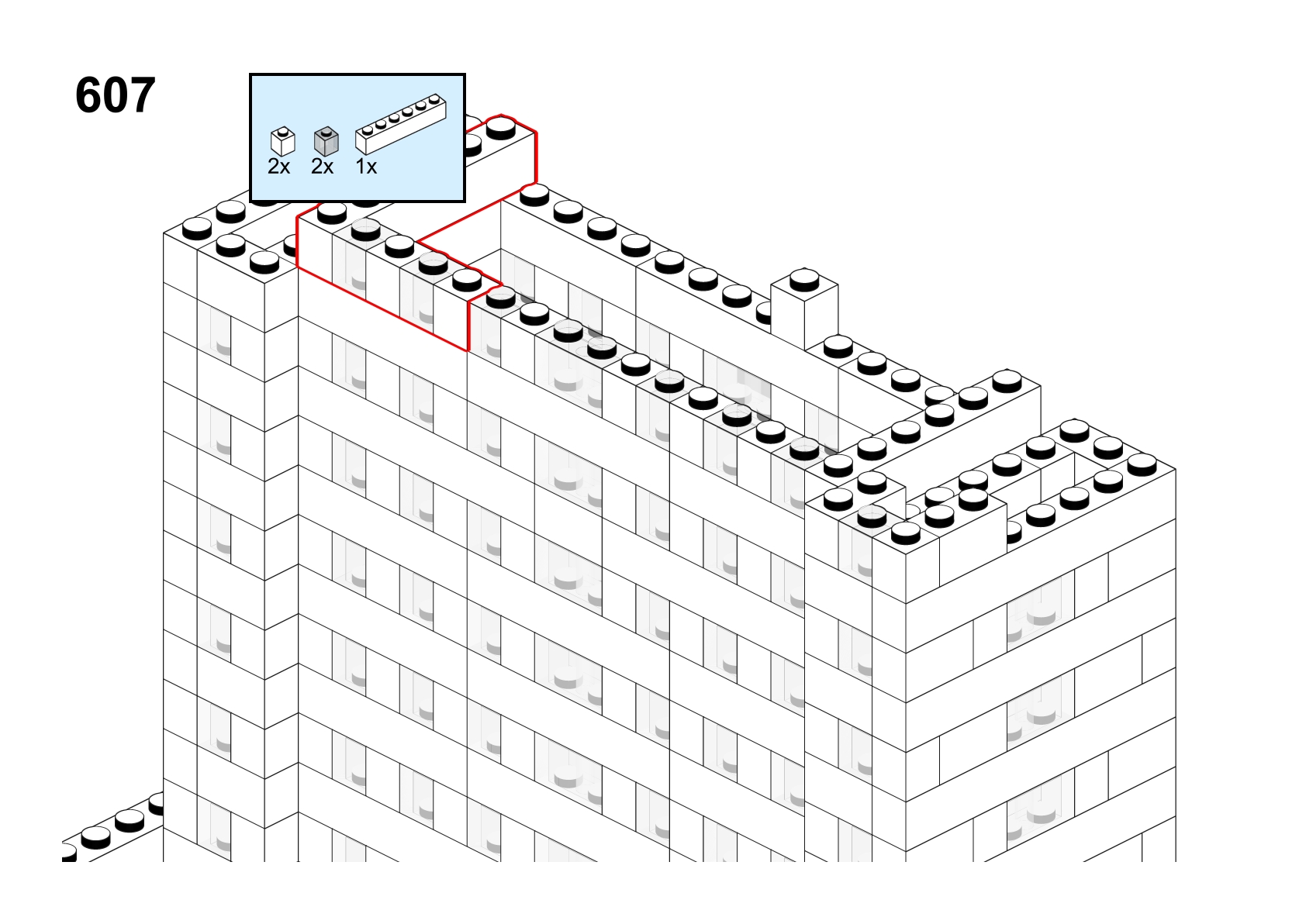 I have built it recently, and included a lighting system. I deviated a bit from the plan and inventory bellow to make it slightly lighter but same height and width. I have added a Hotel sign on top of the doors. Also the top 6 floors level in this version is 6 slots wide which makes it more comfortable, and I have reduced the number of inner reinforcement. It is stable and relatively solid. I’ll drop the insructions and inventory soon.