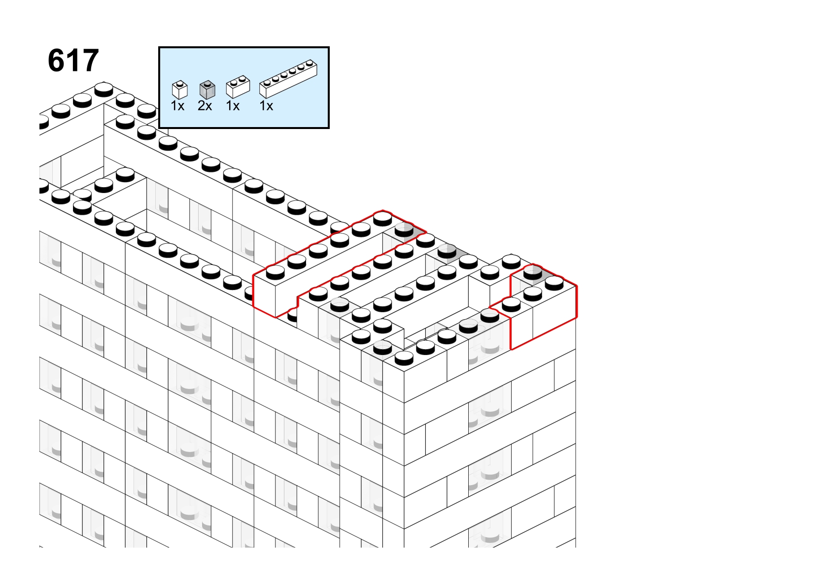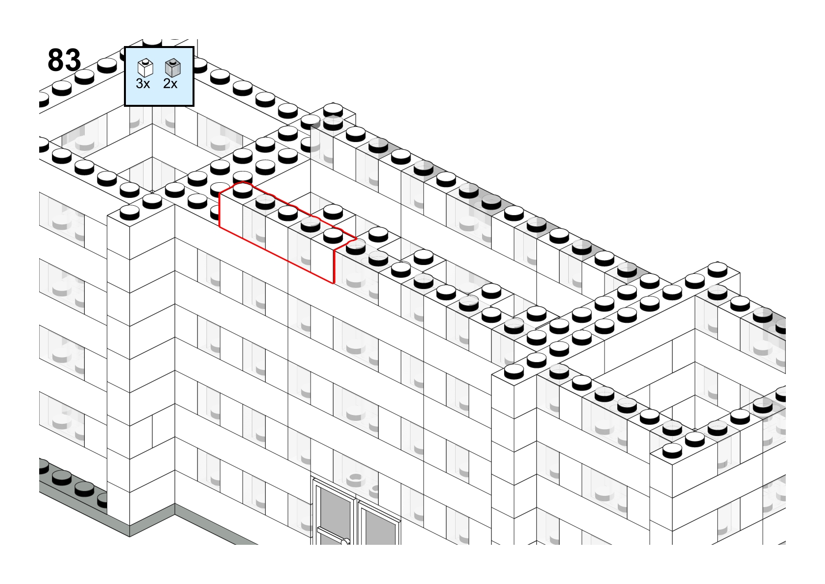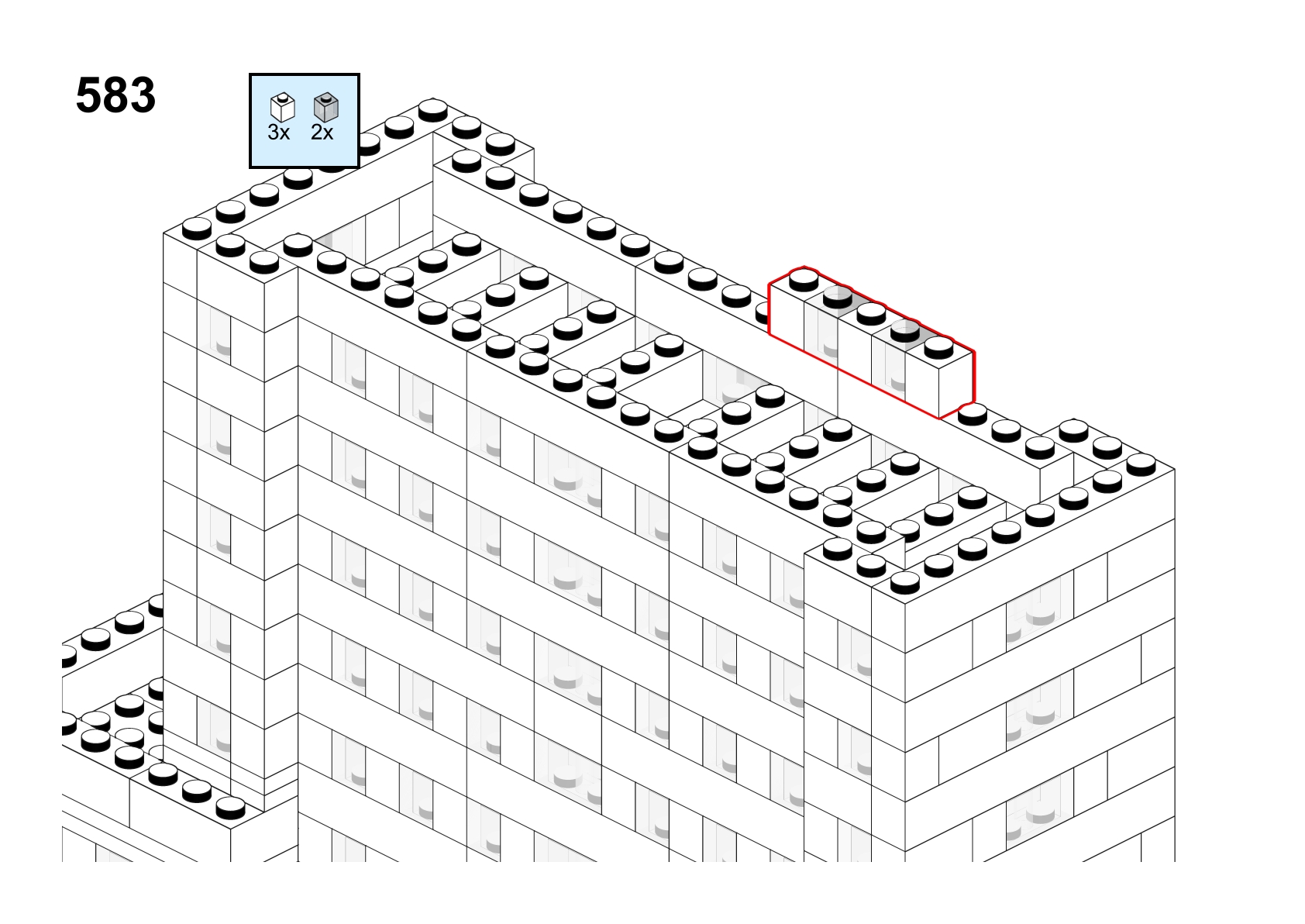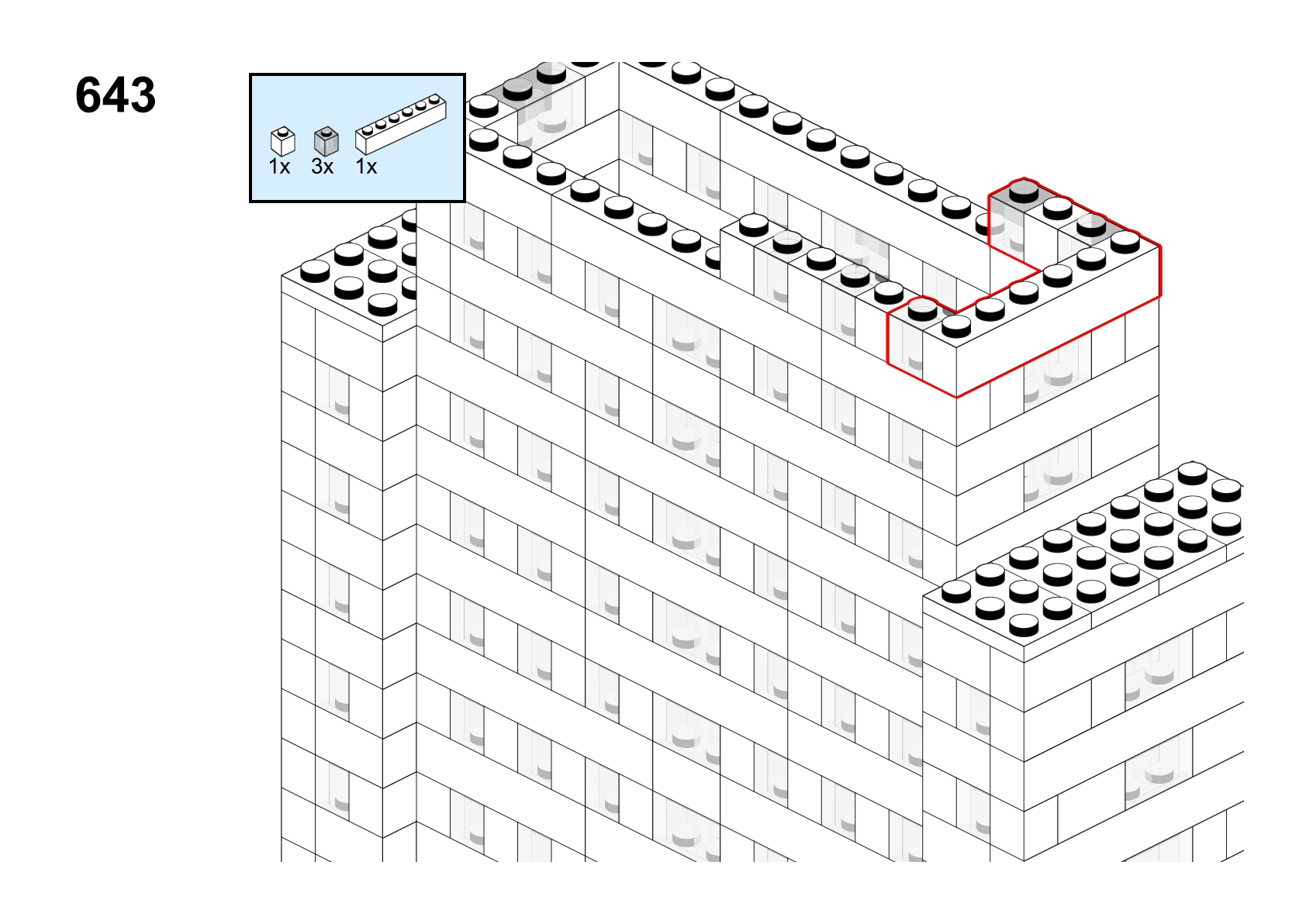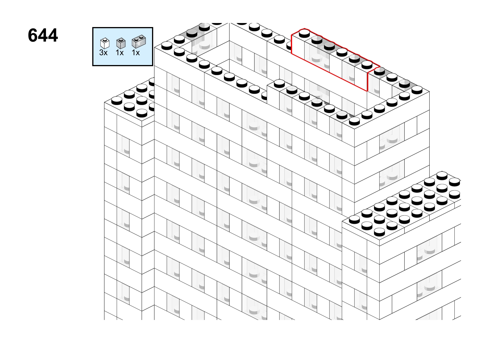 I have built it recently, and included a lighting system. I deviated a bit from the plan and inventory bellow to make it slightly lighter but same height and width. I have added a Hotel sign on top of the doors. Also the top 6 floors level in this version is 6 slots wide which makes it more comfortable, and I have reduced the number of inner reinforcement. It is stable and relatively solid. I’ll drop the insructions and inventory soon.