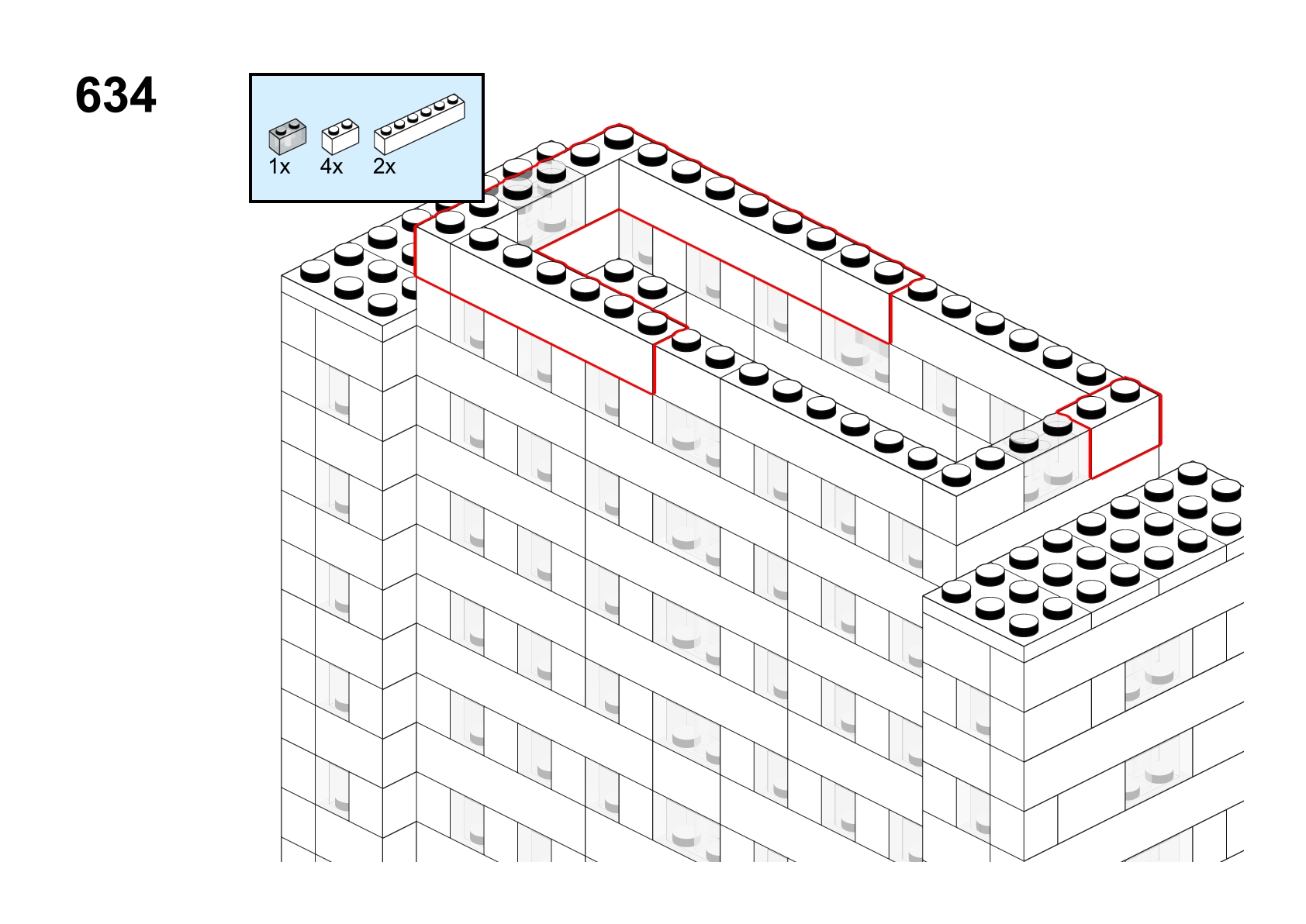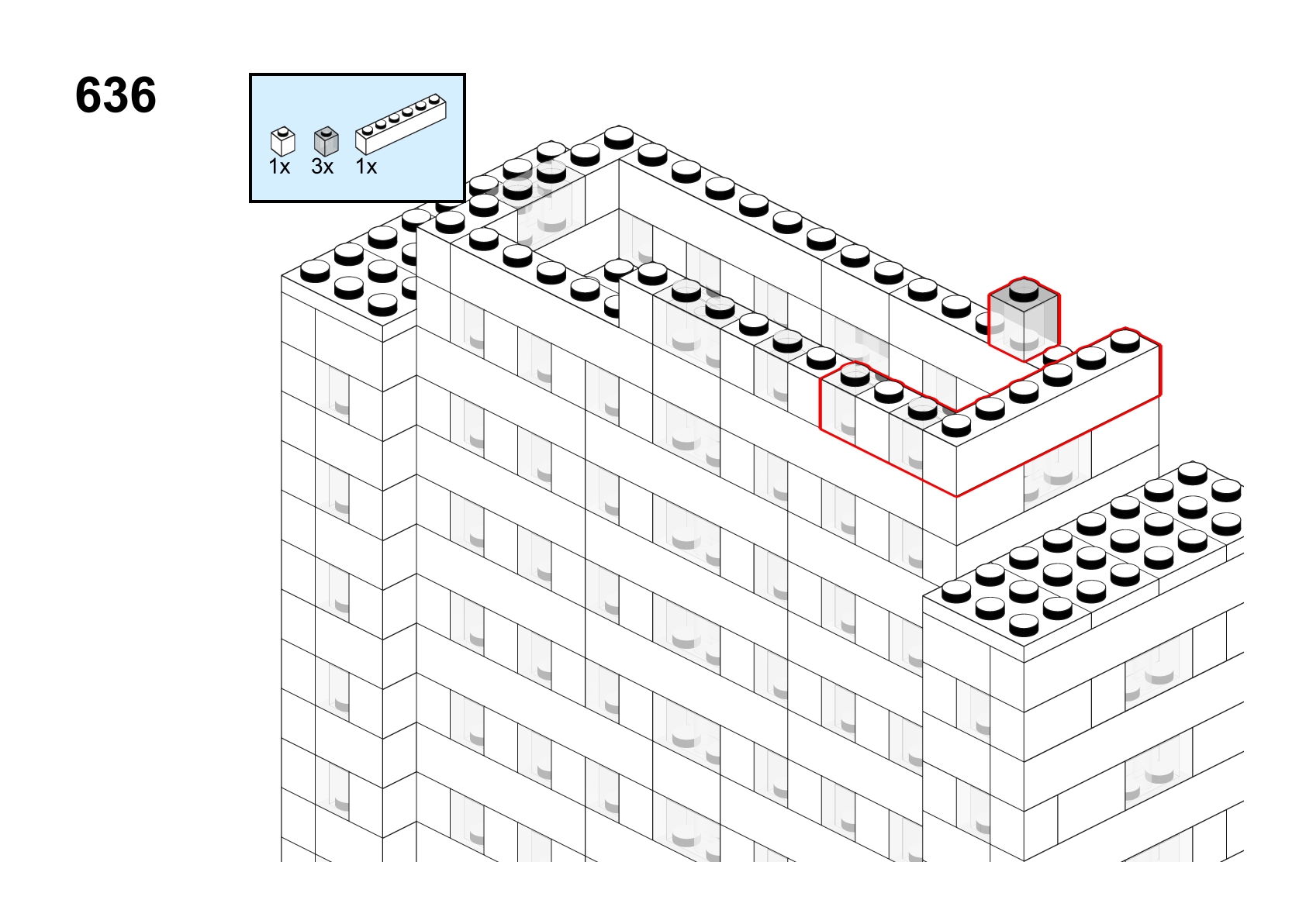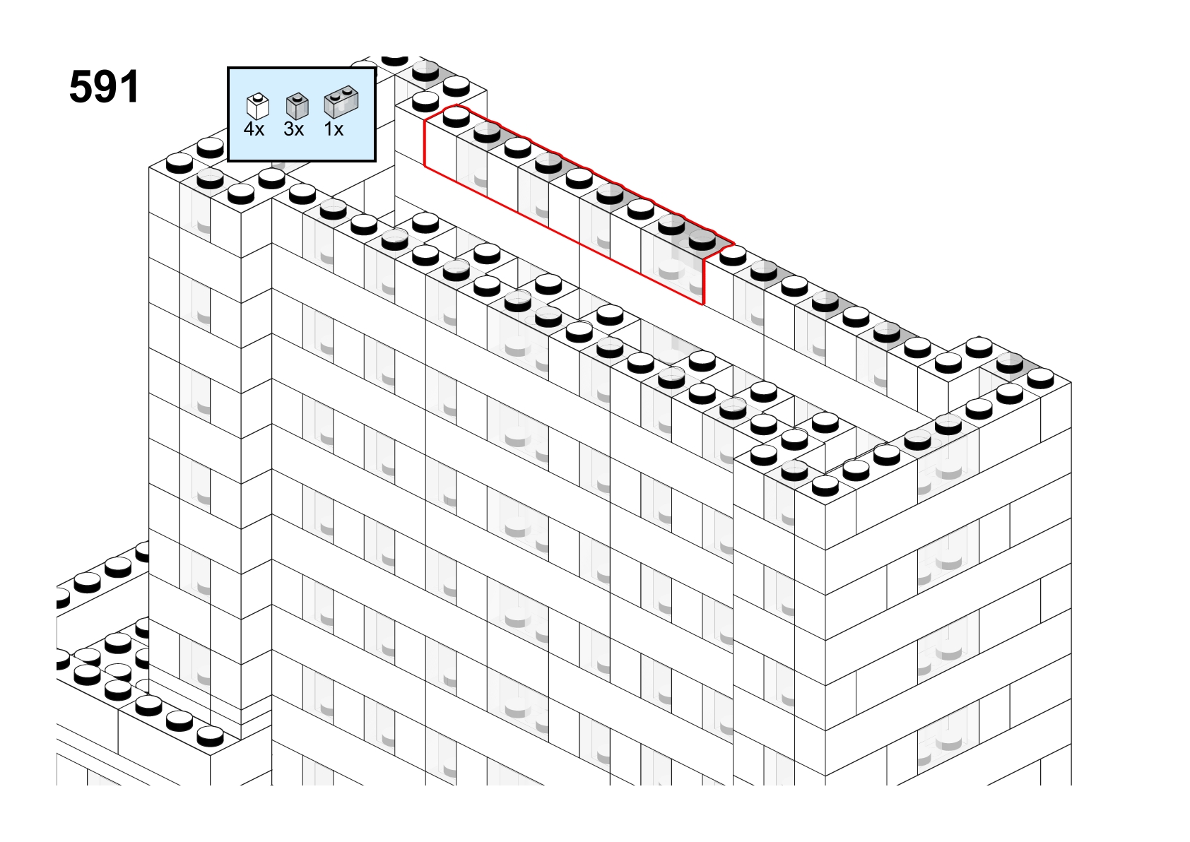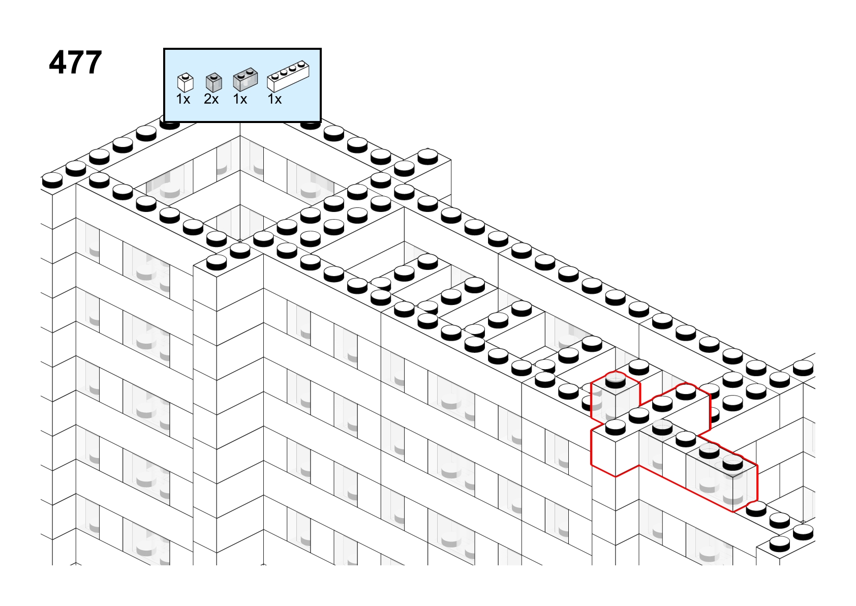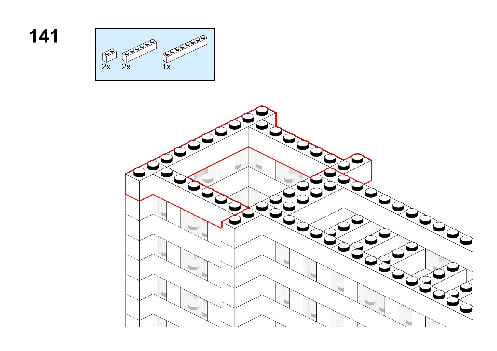 I have built it recently, and included a lighting system. I deviated a bit from the plan and inventory bellow to make it slightly lighter but same height and width. I have added a Hotel sign on top of the doors. Also the top 6 floors level in this version is 6 slots wide which makes it more comfortable, and I have reduced the number of inner reinforcement. It is stable and relatively solid. I’ll drop the insructions and inventory soon.
