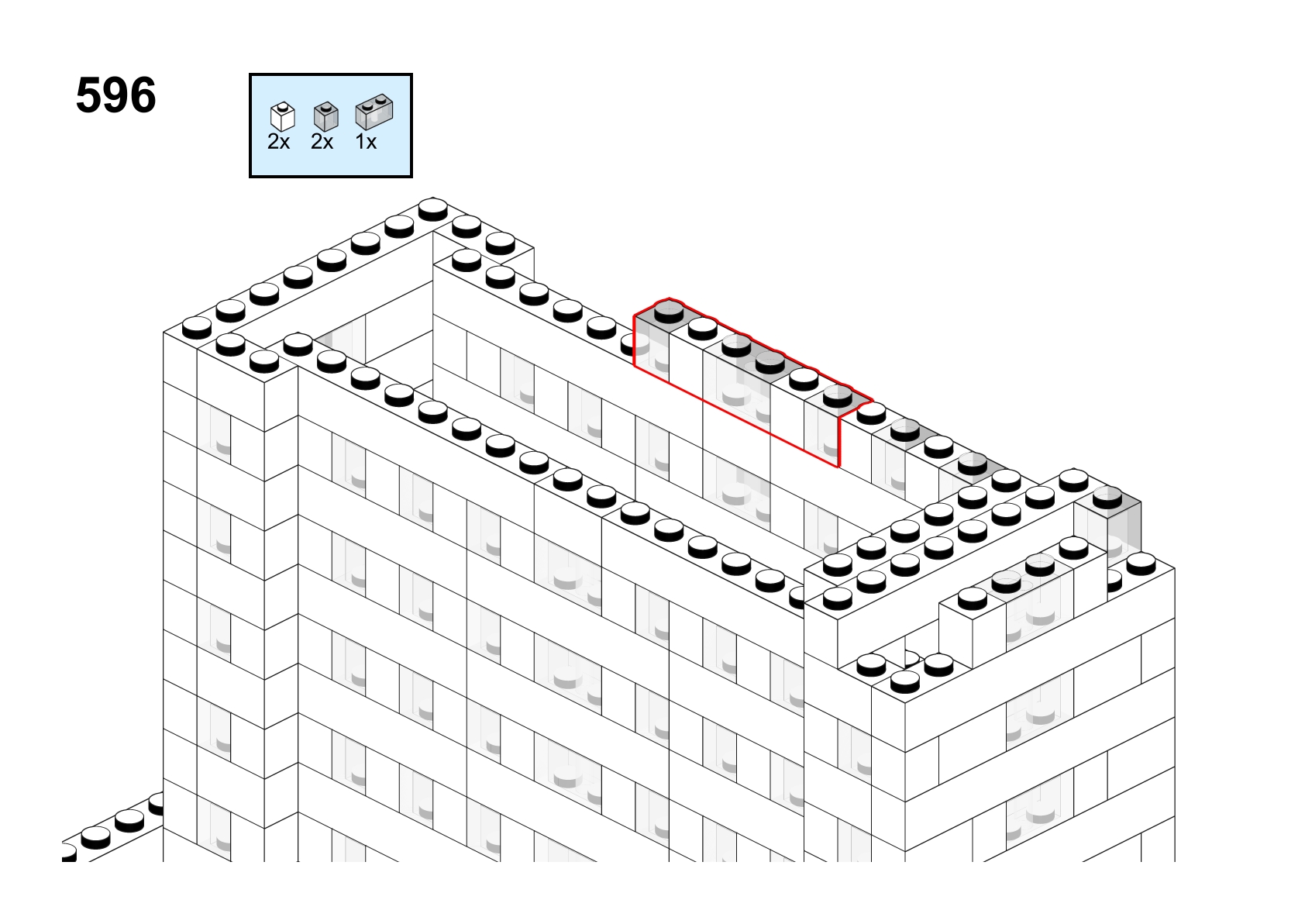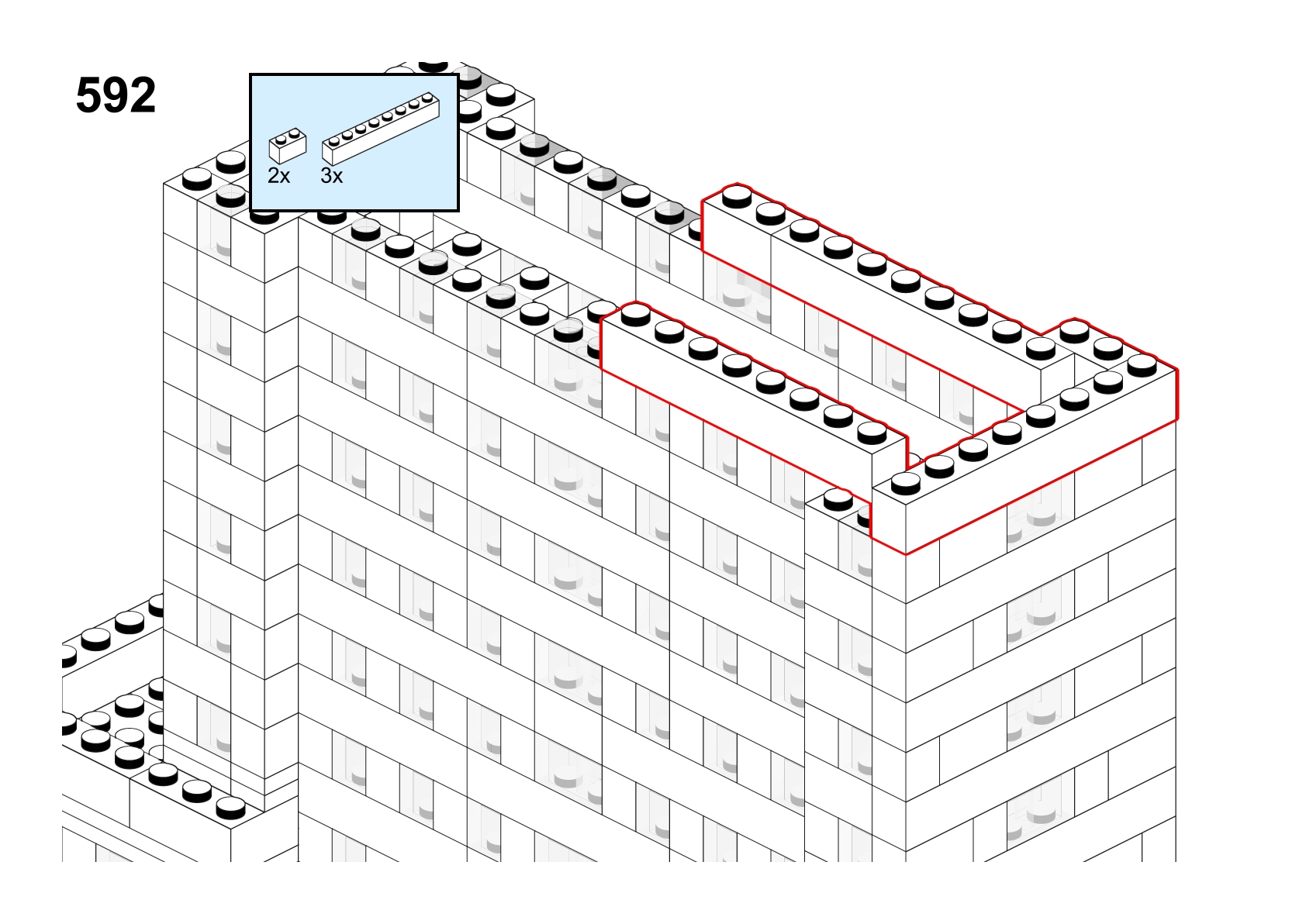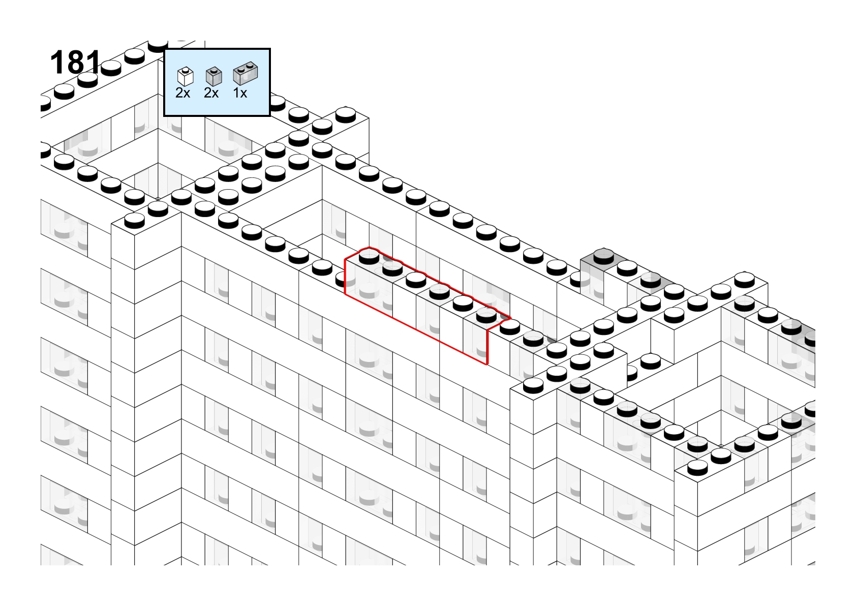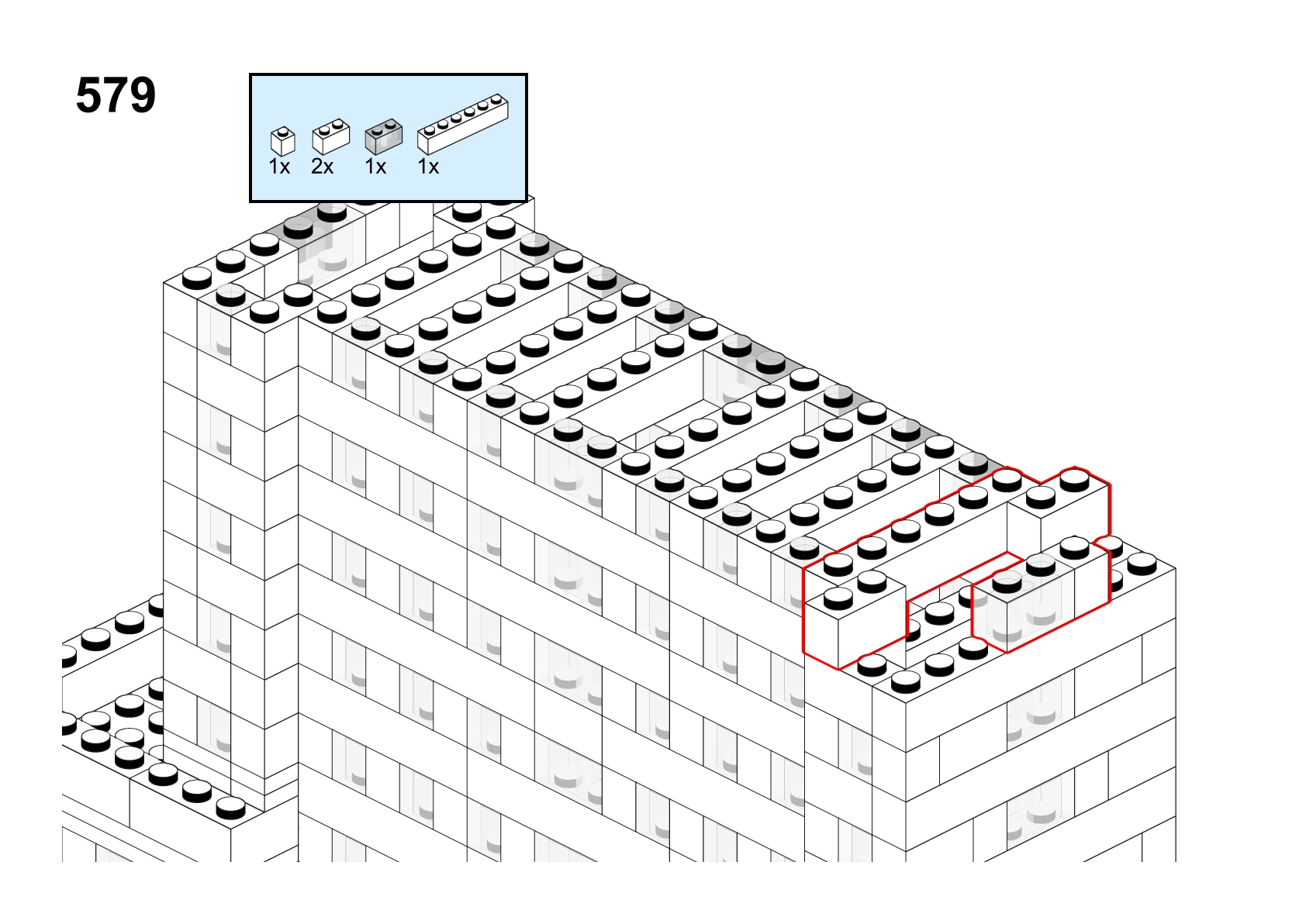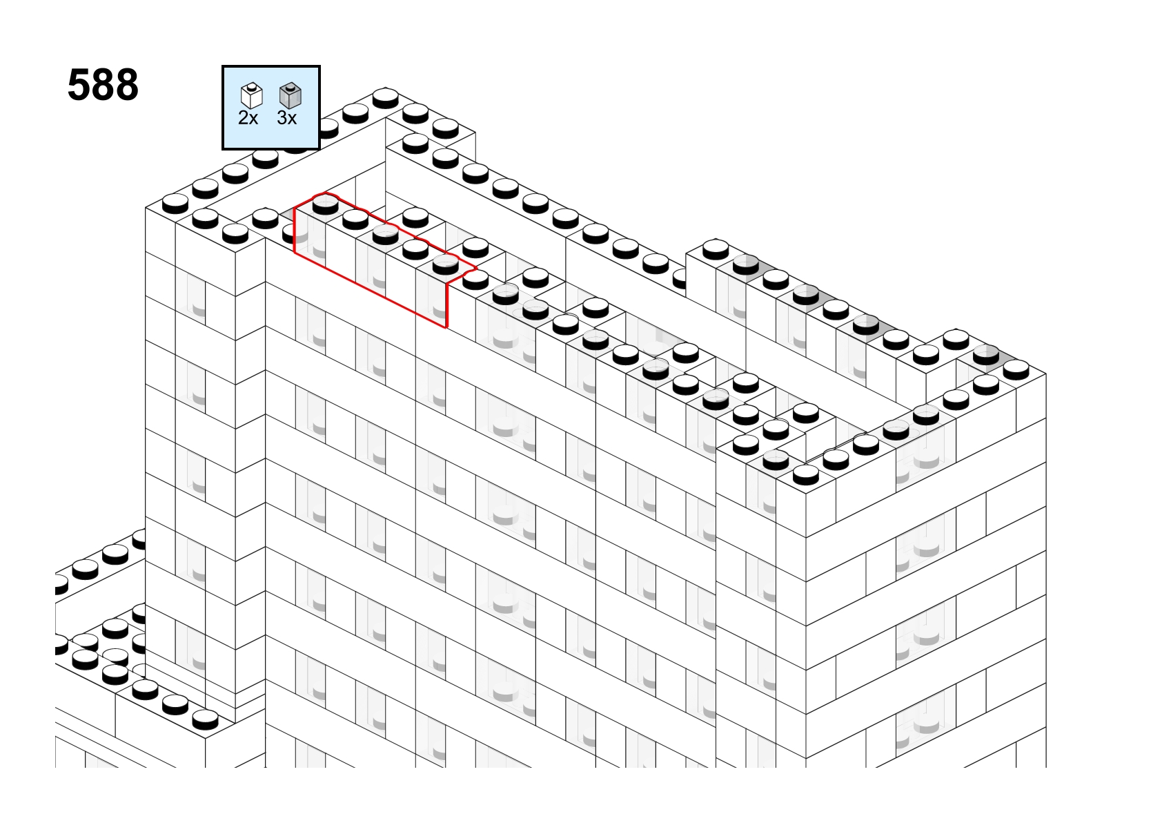 I have built it recently, and included a lighting system. I deviated a bit from the plan and inventory bellow to make it slightly lighter but same height and width. I have added a Hotel sign on top of the doors. Also the top 6 floors level in this version is 6 slots wide which makes it more comfortable, and I have reduced the number of inner reinforcement. It is stable and relatively solid. I’ll drop the insructions and inventory soon.