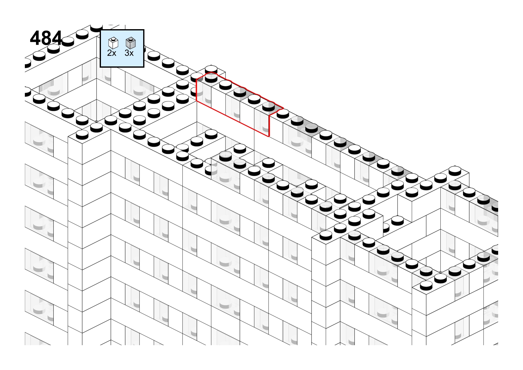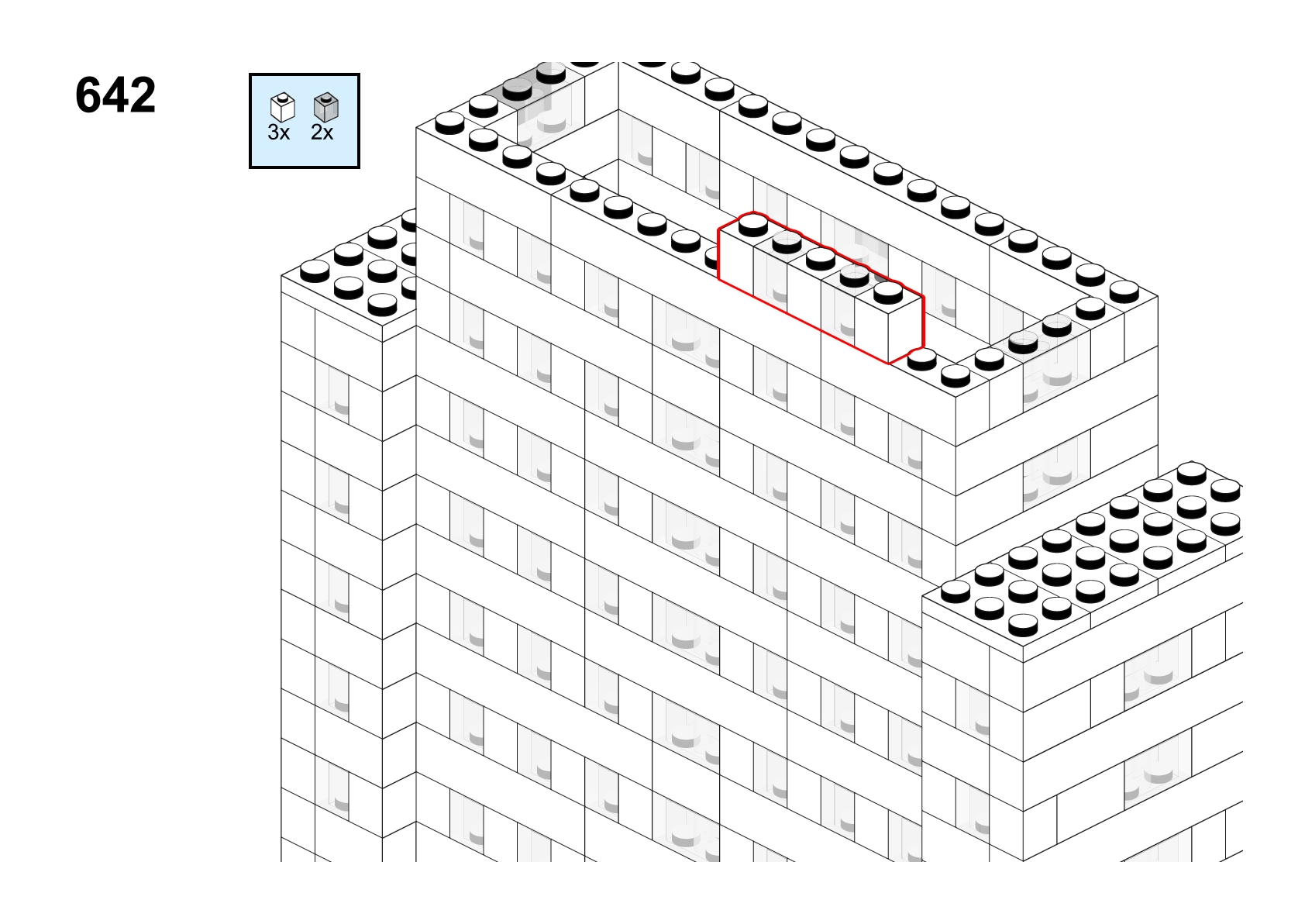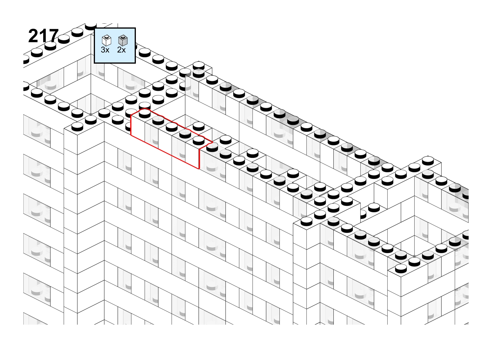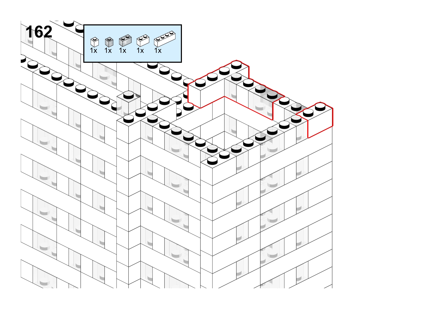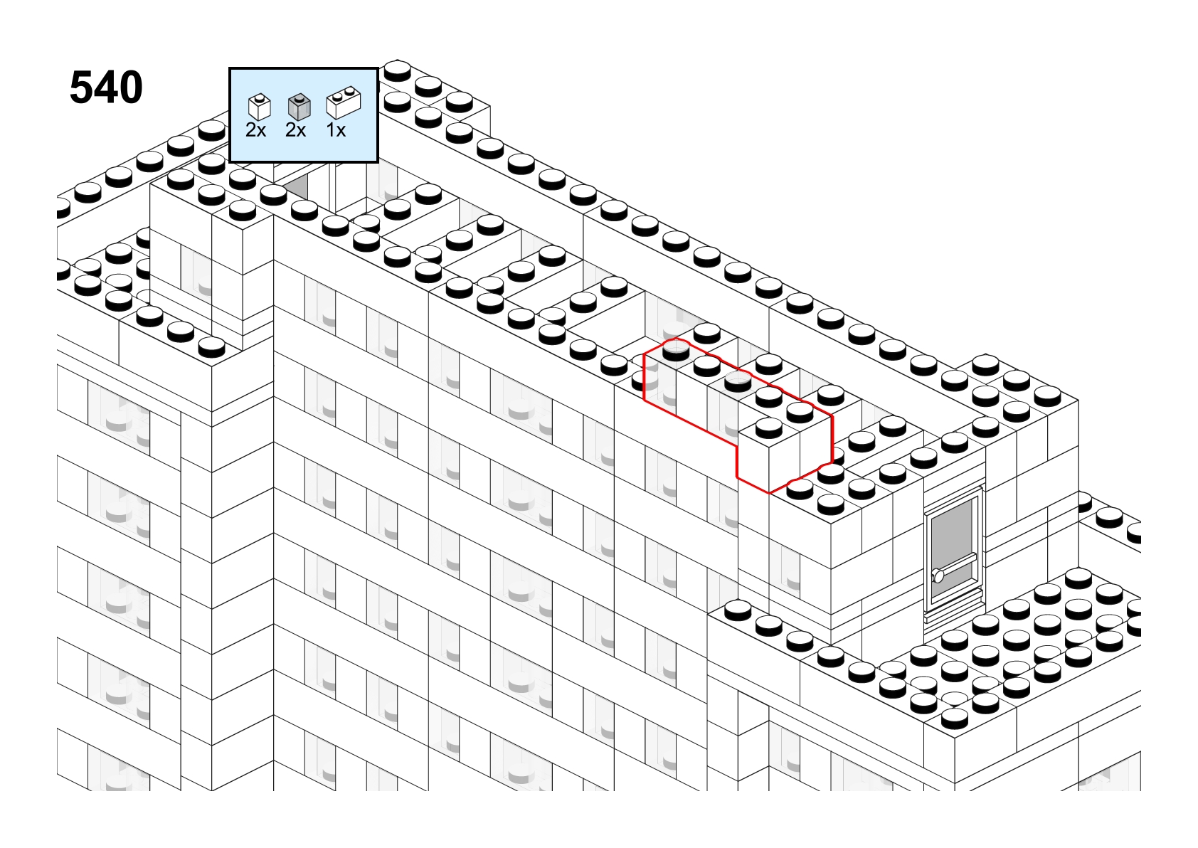 I have built it recently, and included a lighting system. I deviated a bit from the plan and inventory bellow to make it slightly lighter but same height and width. I have added a Hotel sign on top of the doors. Also the top 6 floors level in this version is 6 slots wide which makes it more comfortable, and I have reduced the number of inner reinforcement. It is stable and relatively solid. I’ll drop the insructions and inventory soon.
