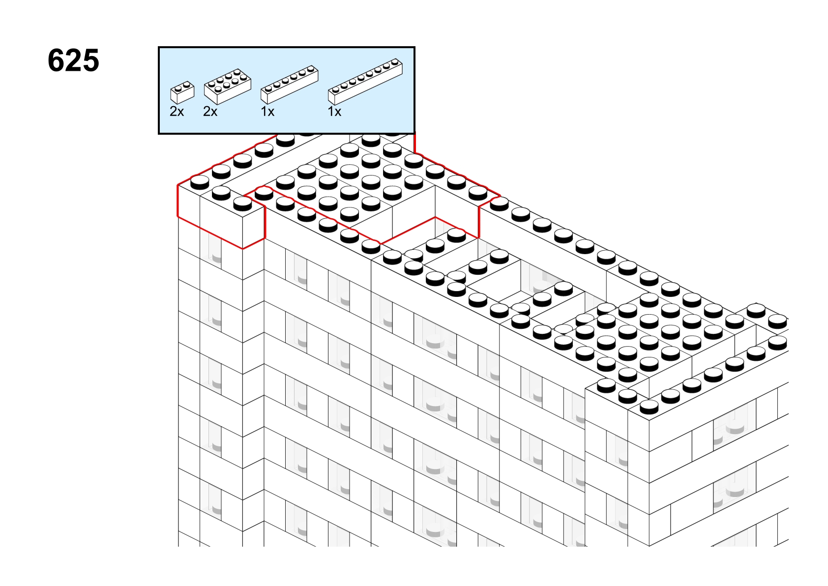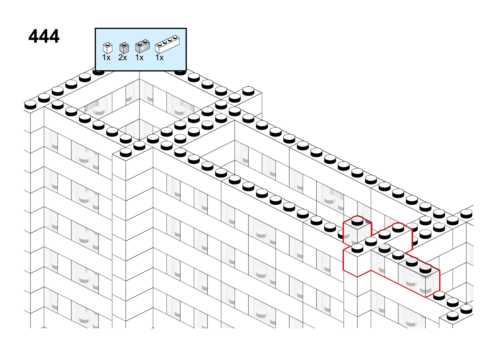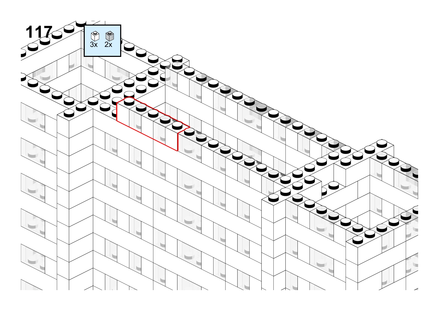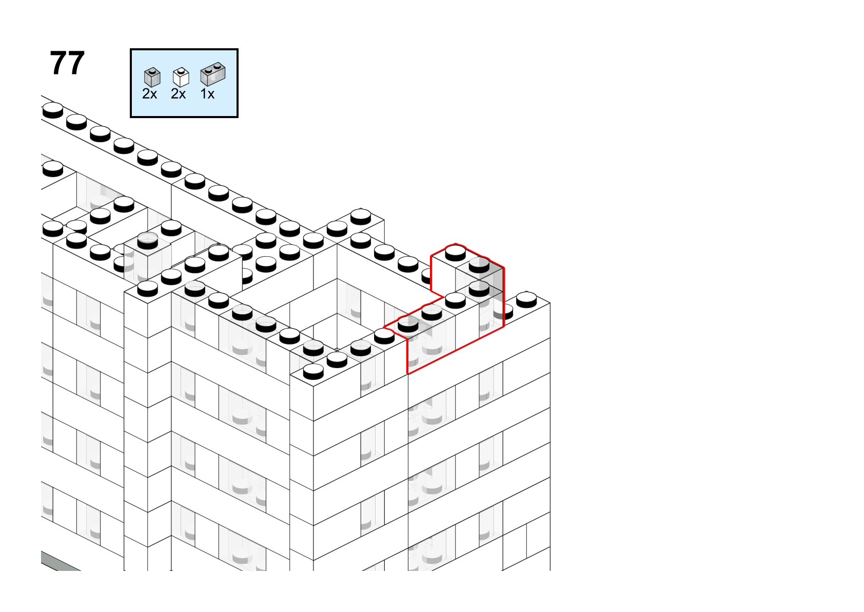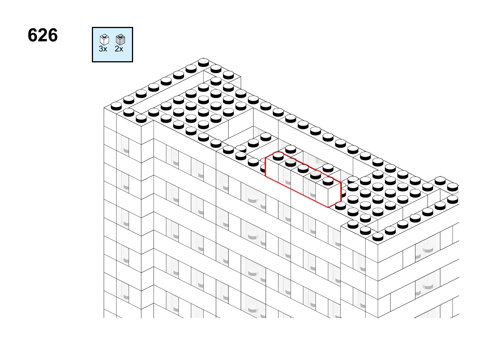 I have built it recently, and included a lighting system. I deviated a bit from the plan and inventory bellow to make it slightly lighter but same height and width. I have added a Hotel sign on top of the doors. Also the top 6 floors level in this version is 6 slots wide which makes it more comfortable, and I have reduced the number of inner reinforcement. It is stable and relatively solid. I’ll drop the insructions and inventory soon.