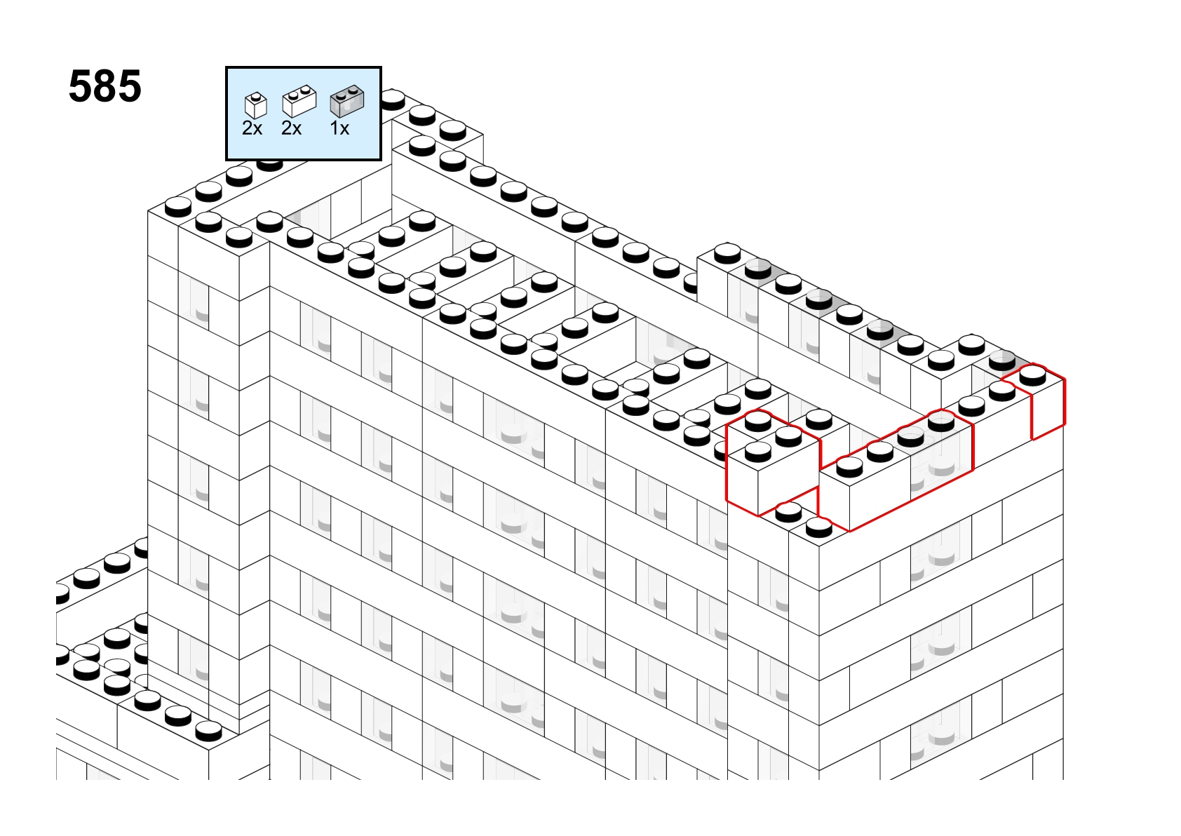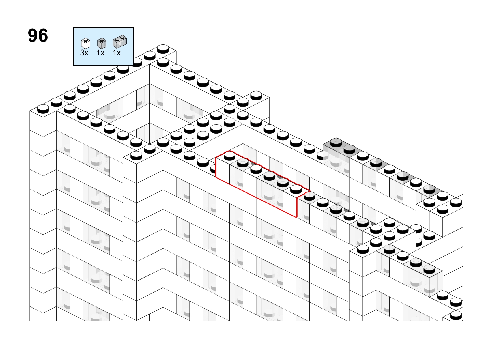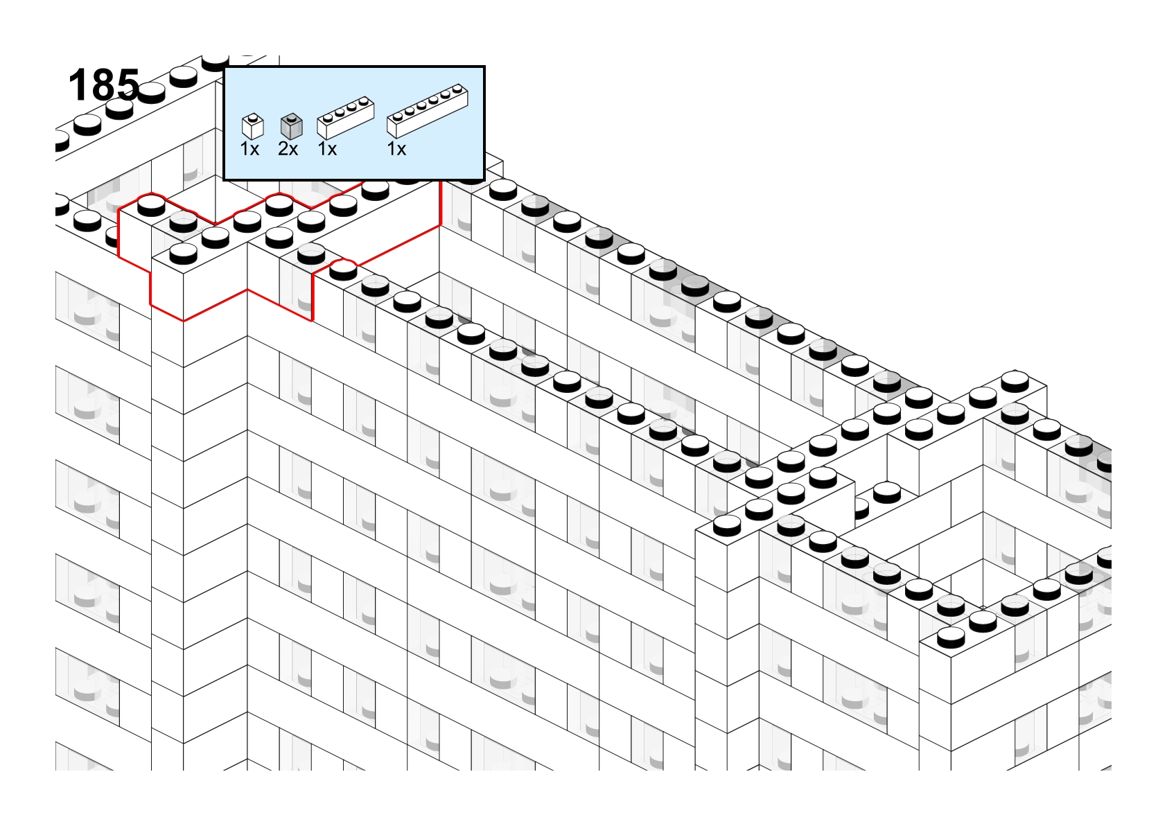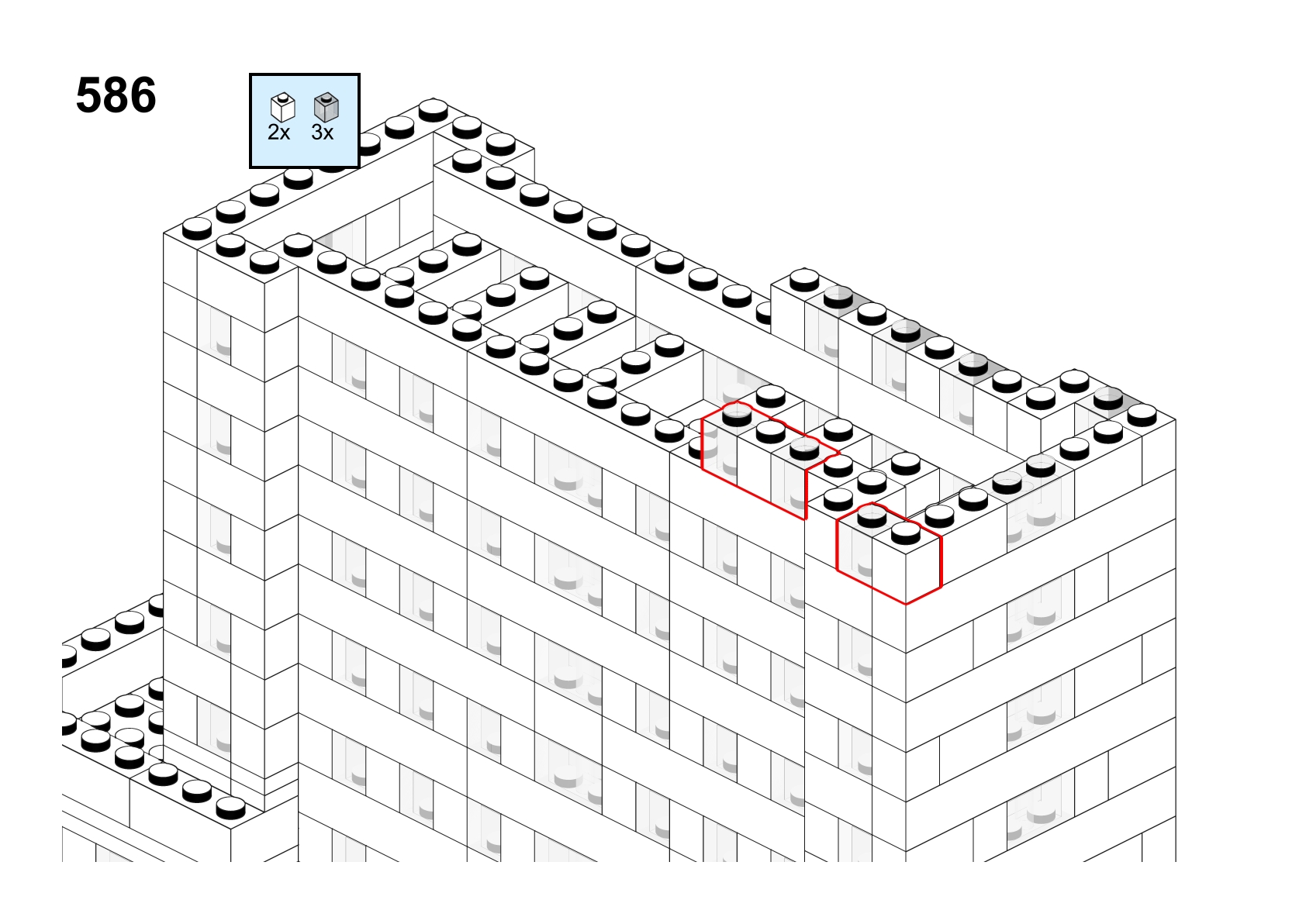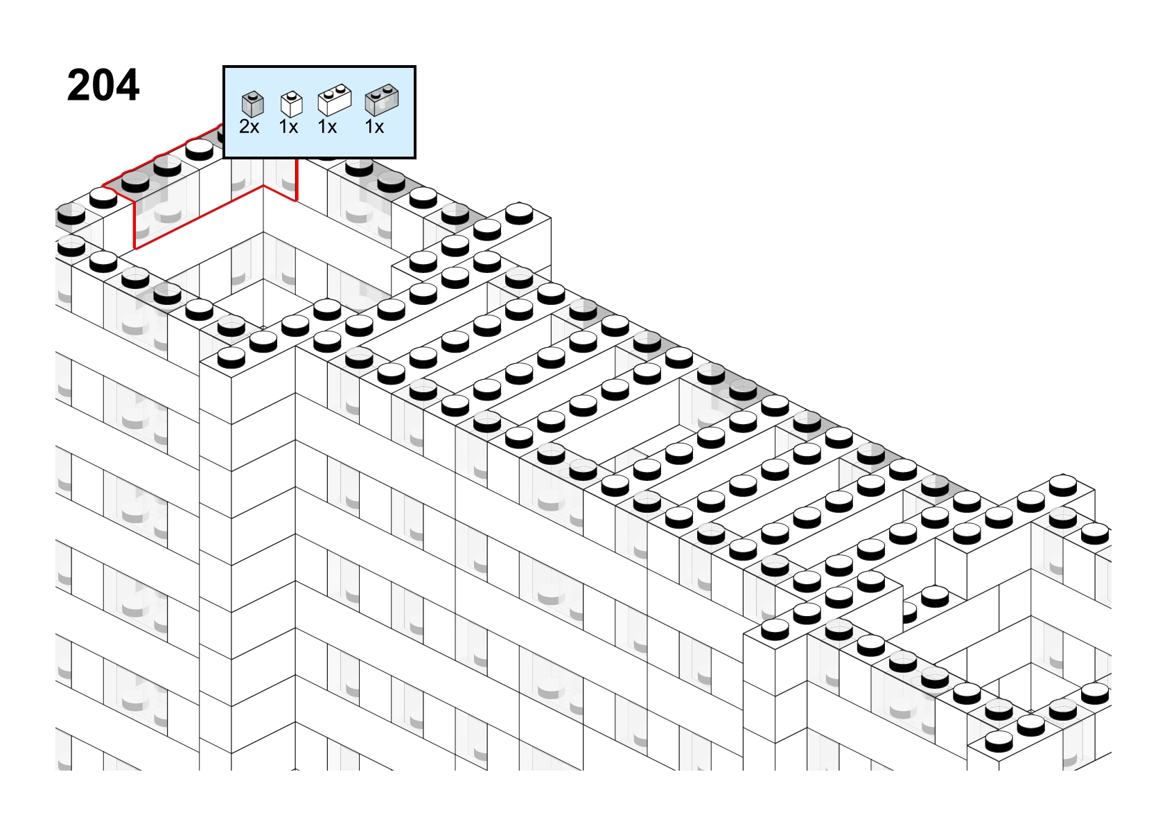 I have built it recently, and included a lighting system. I deviated a bit from the plan and inventory bellow to make it slightly lighter but same height and width. I have added a Hotel sign on top of the doors. Also the top 6 floors level in this version is 6 slots wide which makes it more comfortable, and I have reduced the number of inner reinforcement. It is stable and relatively solid. I’ll drop the insructions and inventory soon.