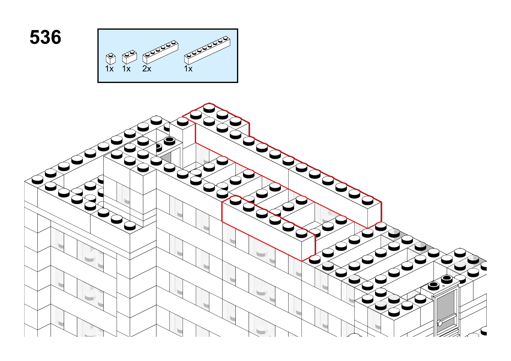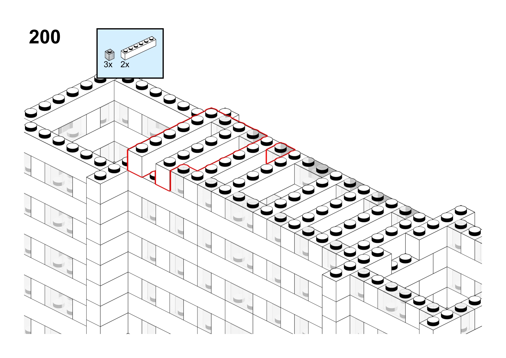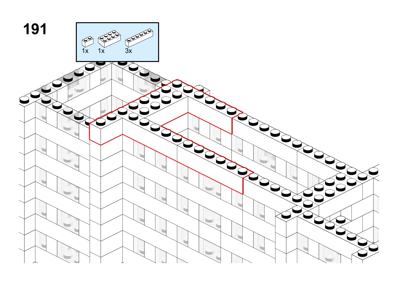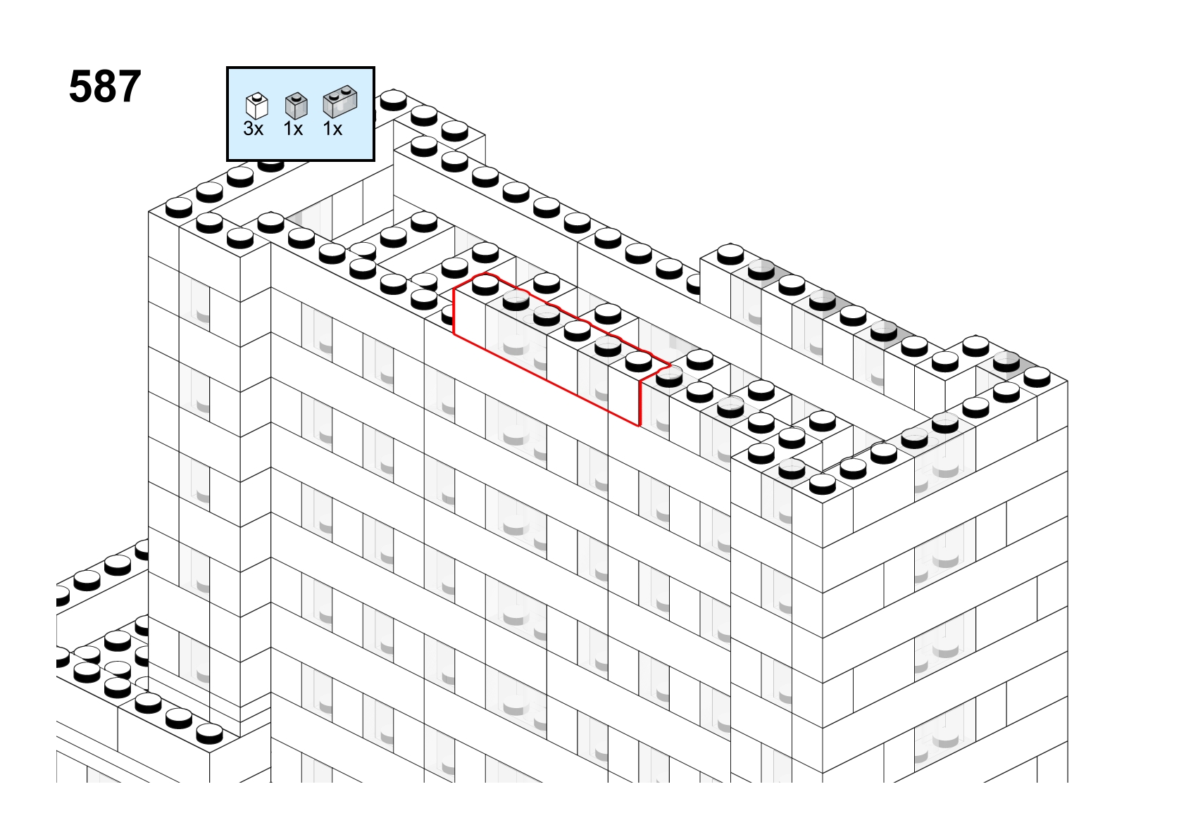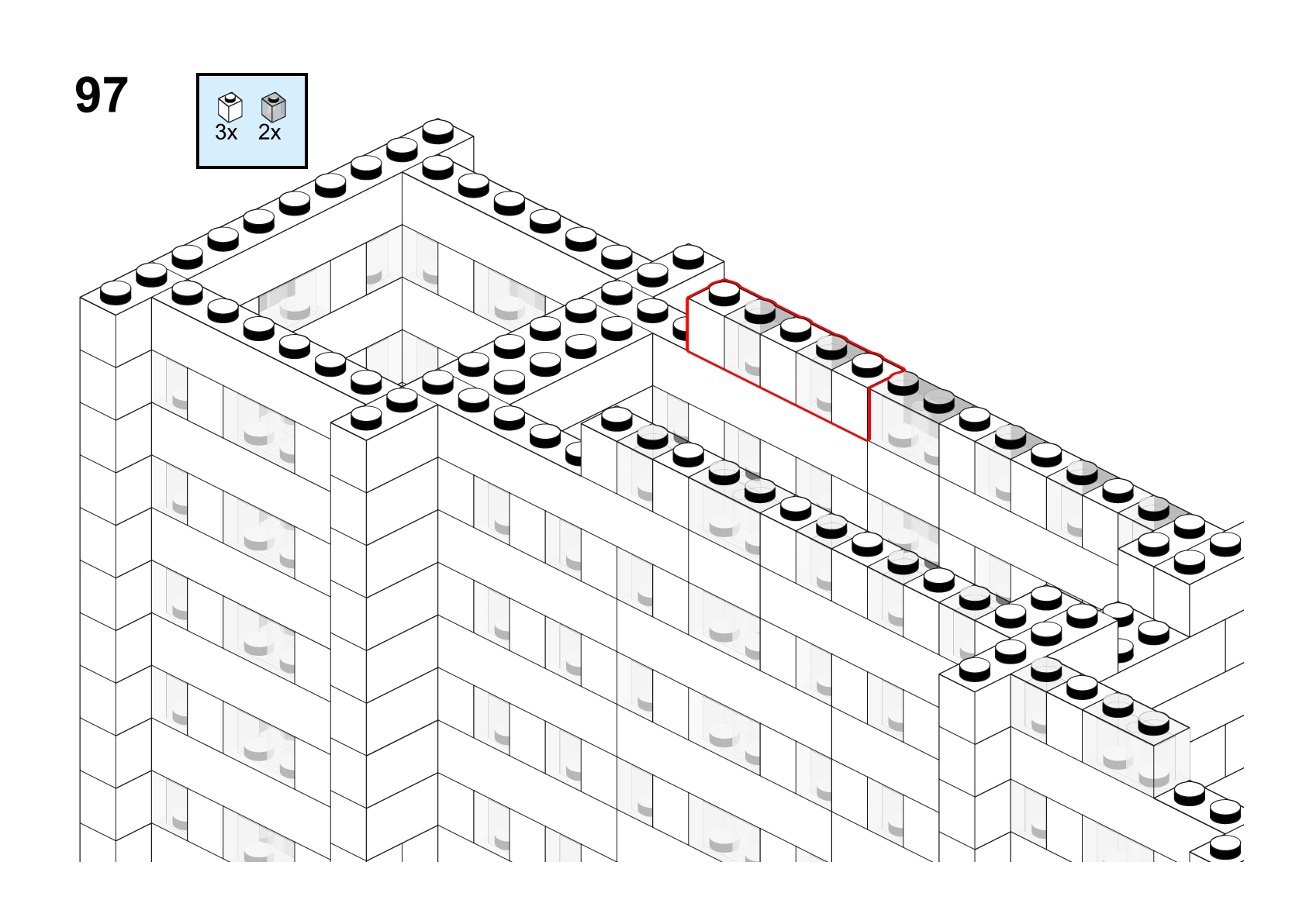 I have built it recently, and included a lighting system. I deviated a bit from the plan and inventory bellow to make it slightly lighter but same height and width. I have added a Hotel sign on top of the doors. Also the top 6 floors level in this version is 6 slots wide which makes it more comfortable, and I have reduced the number of inner reinforcement. It is stable and relatively solid. I’ll drop the insructions and inventory soon.