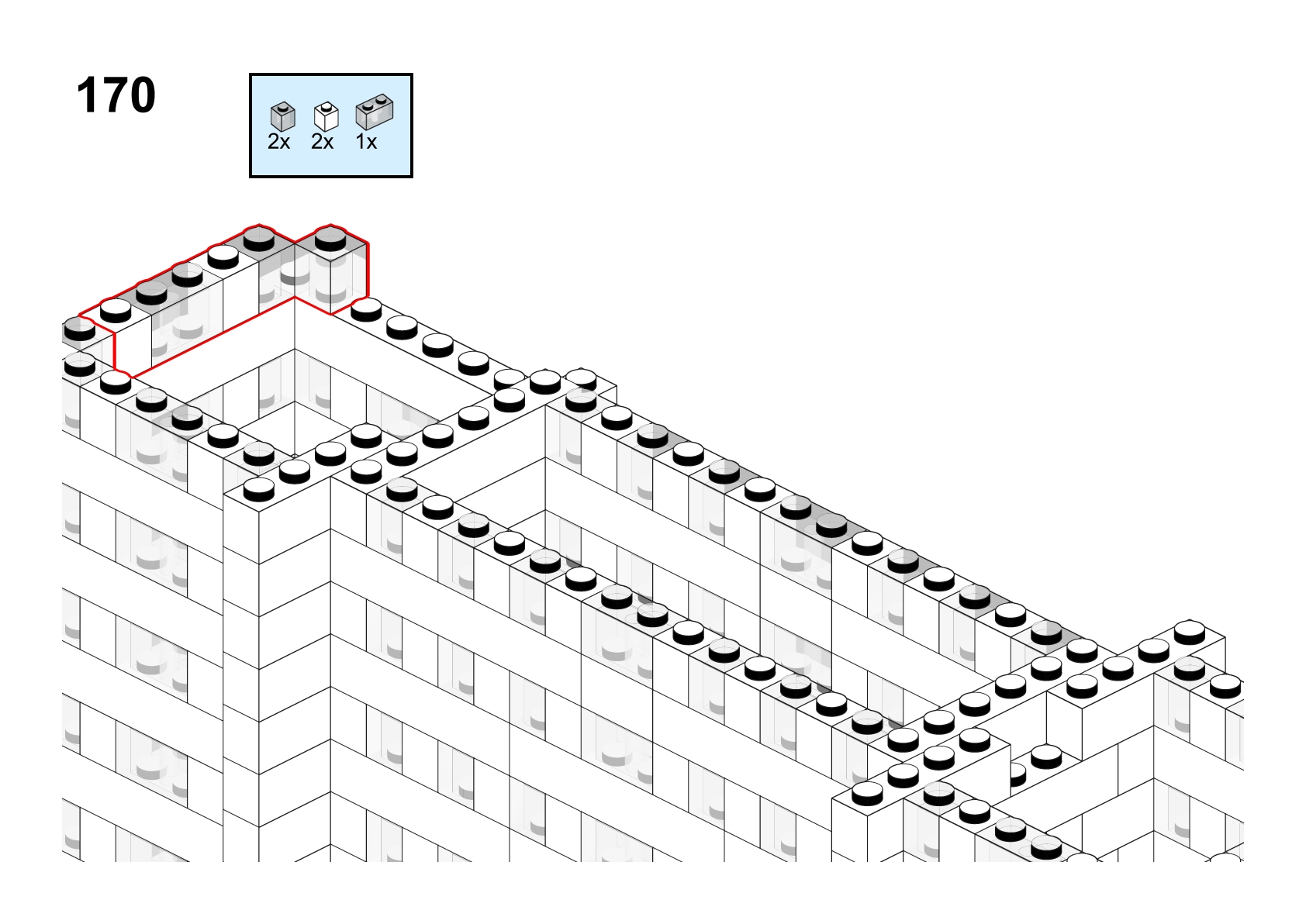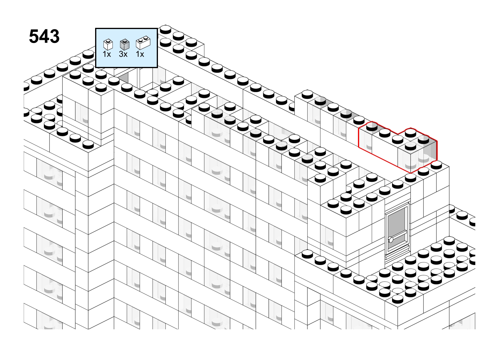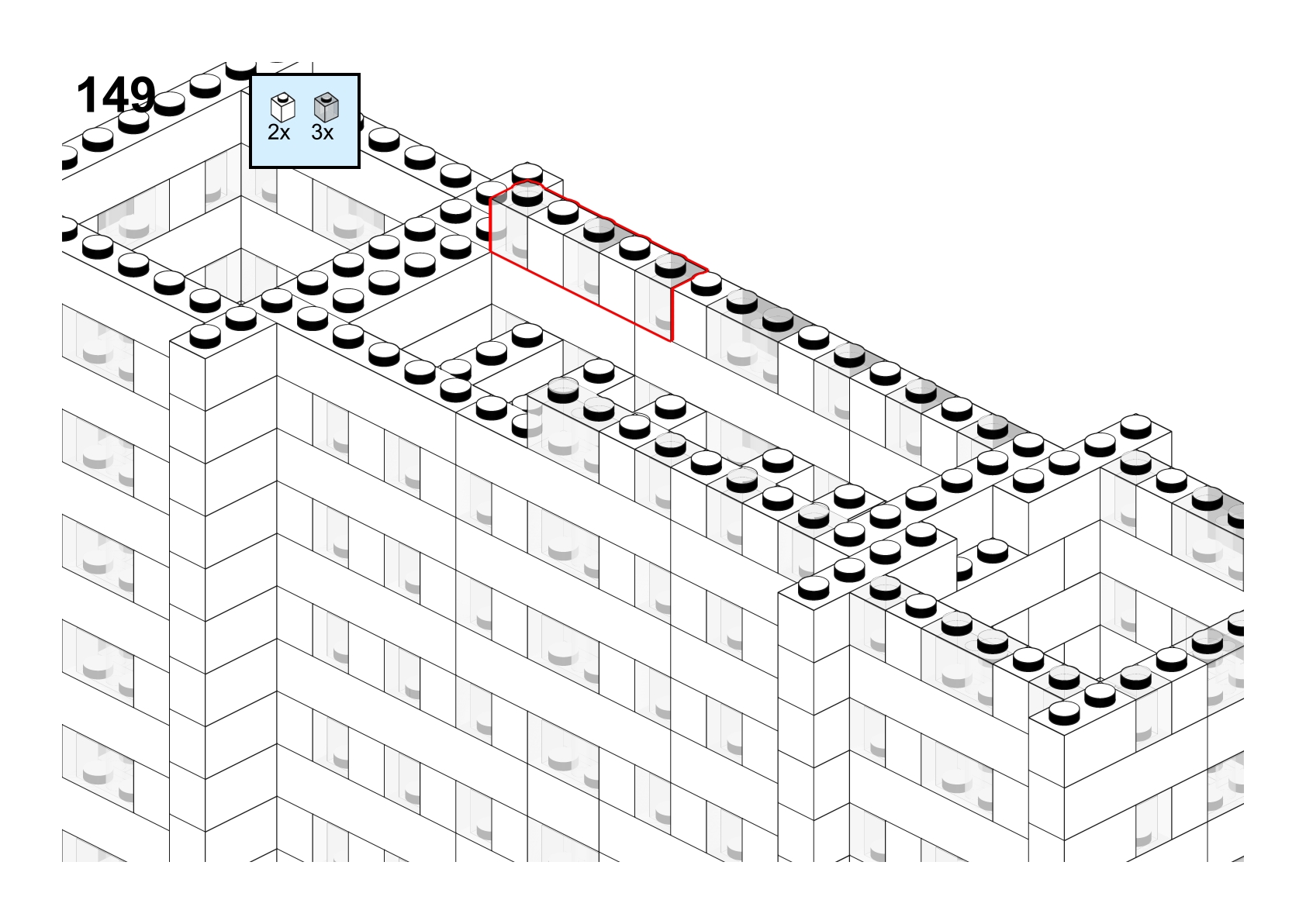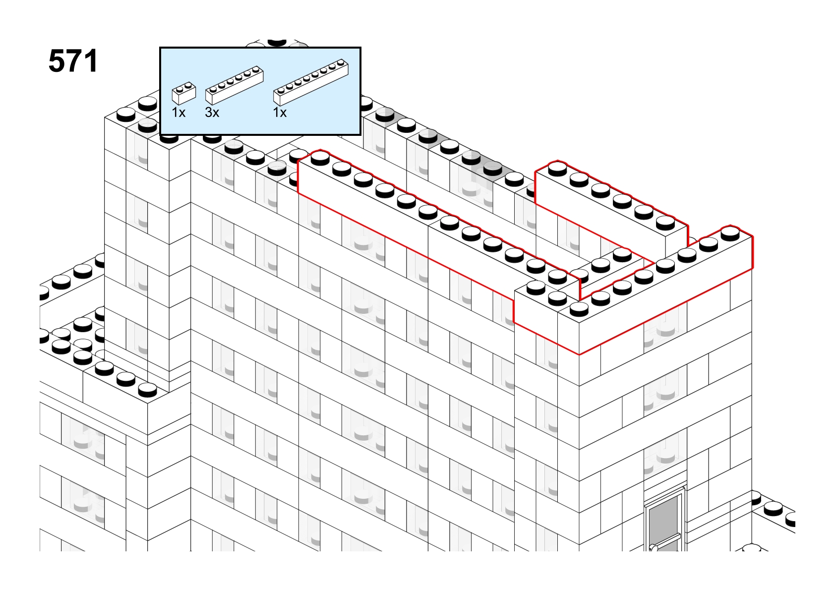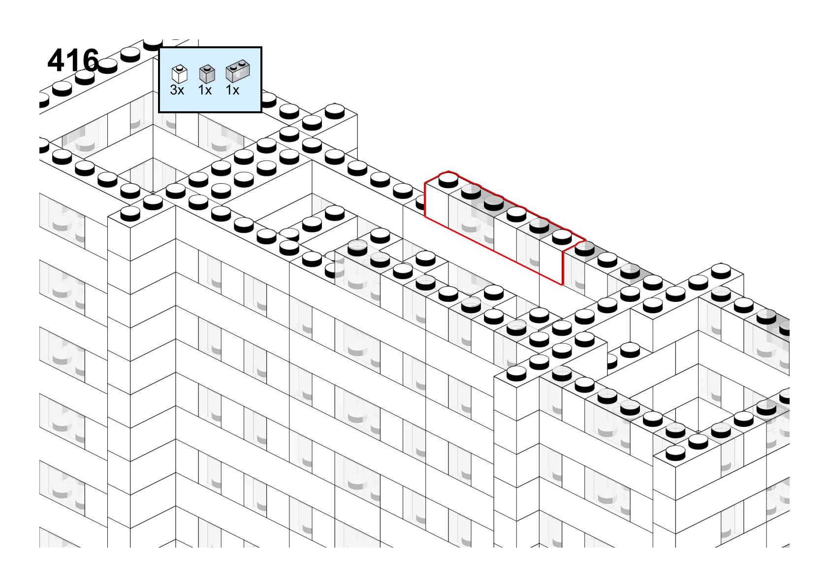 I have built it recently, and included a lighting system. I deviated a bit from the plan and inventory bellow to make it slightly lighter but same height and width. I have added a Hotel sign on top of the doors. Also the top 6 floors level in this version is 6 slots wide which makes it more comfortable, and I have reduced the number of inner reinforcement. It is stable and relatively solid. I’ll drop the insructions and inventory soon.