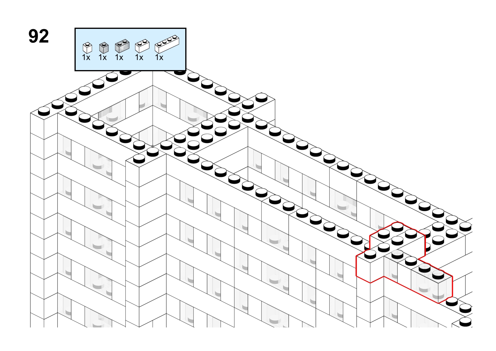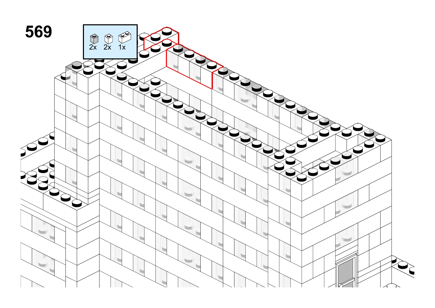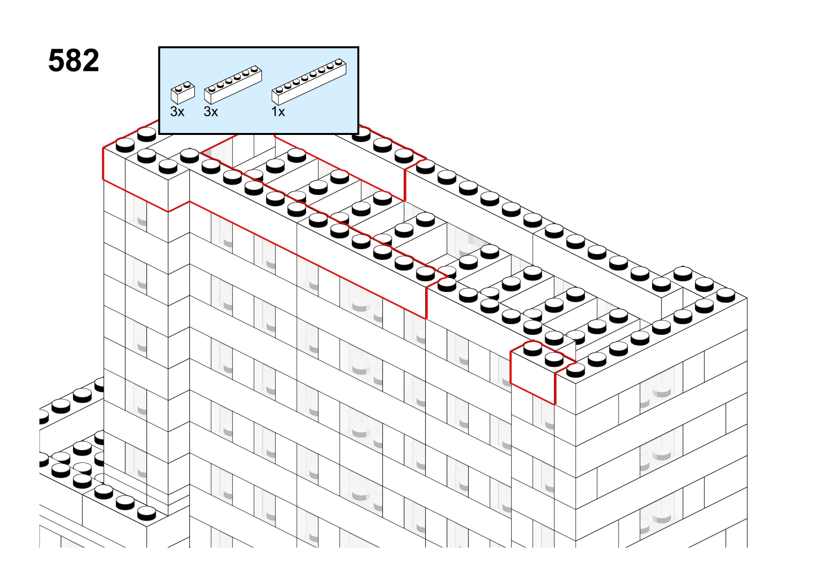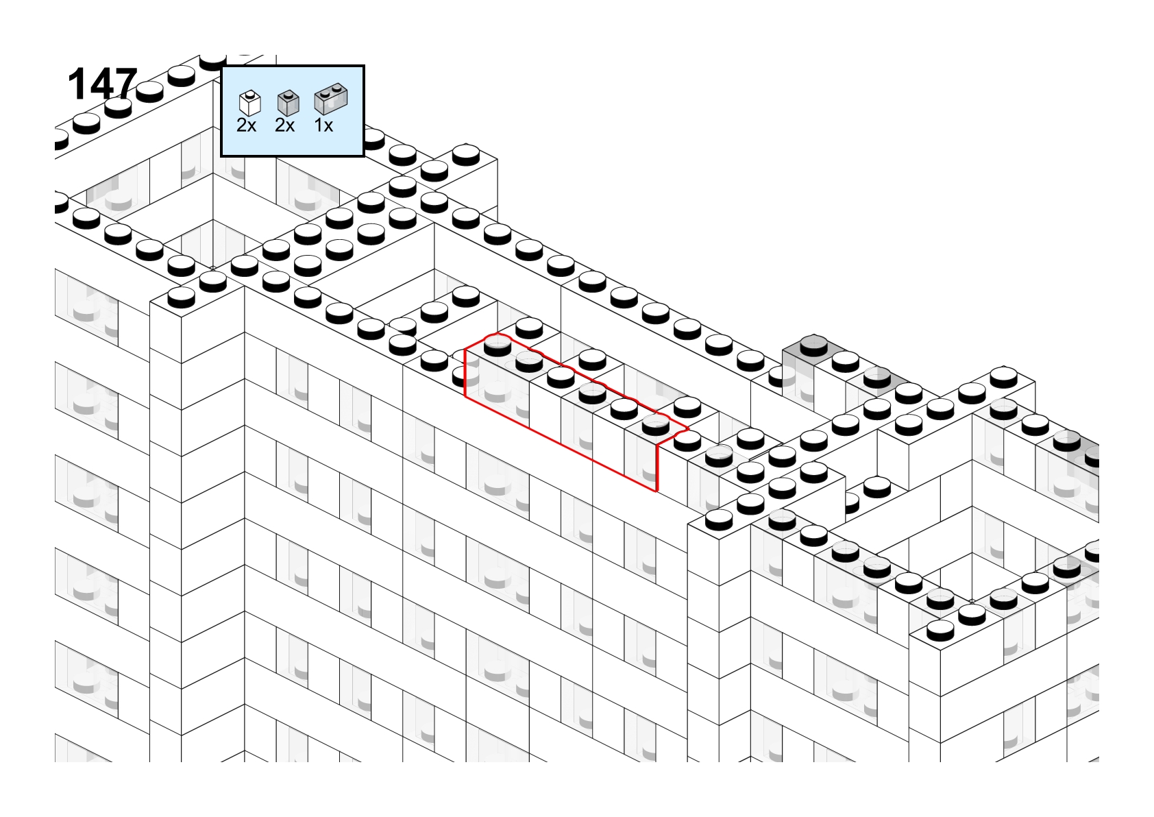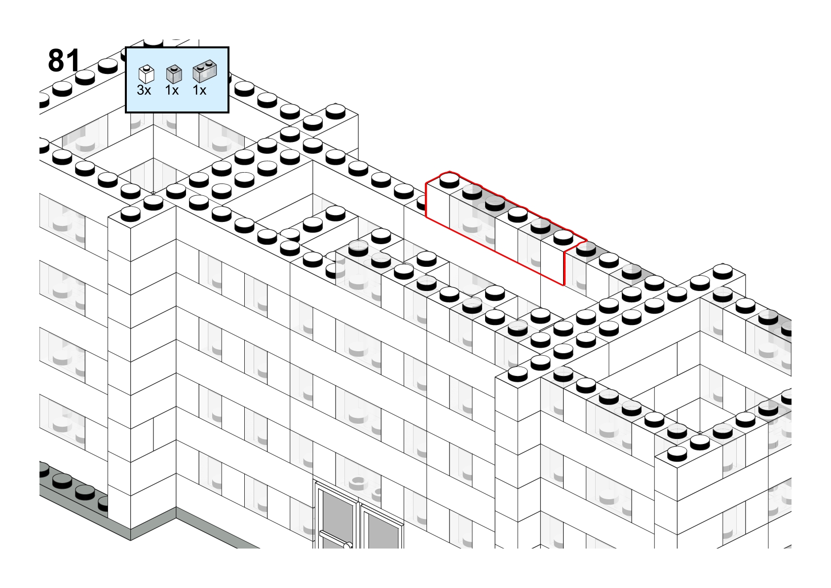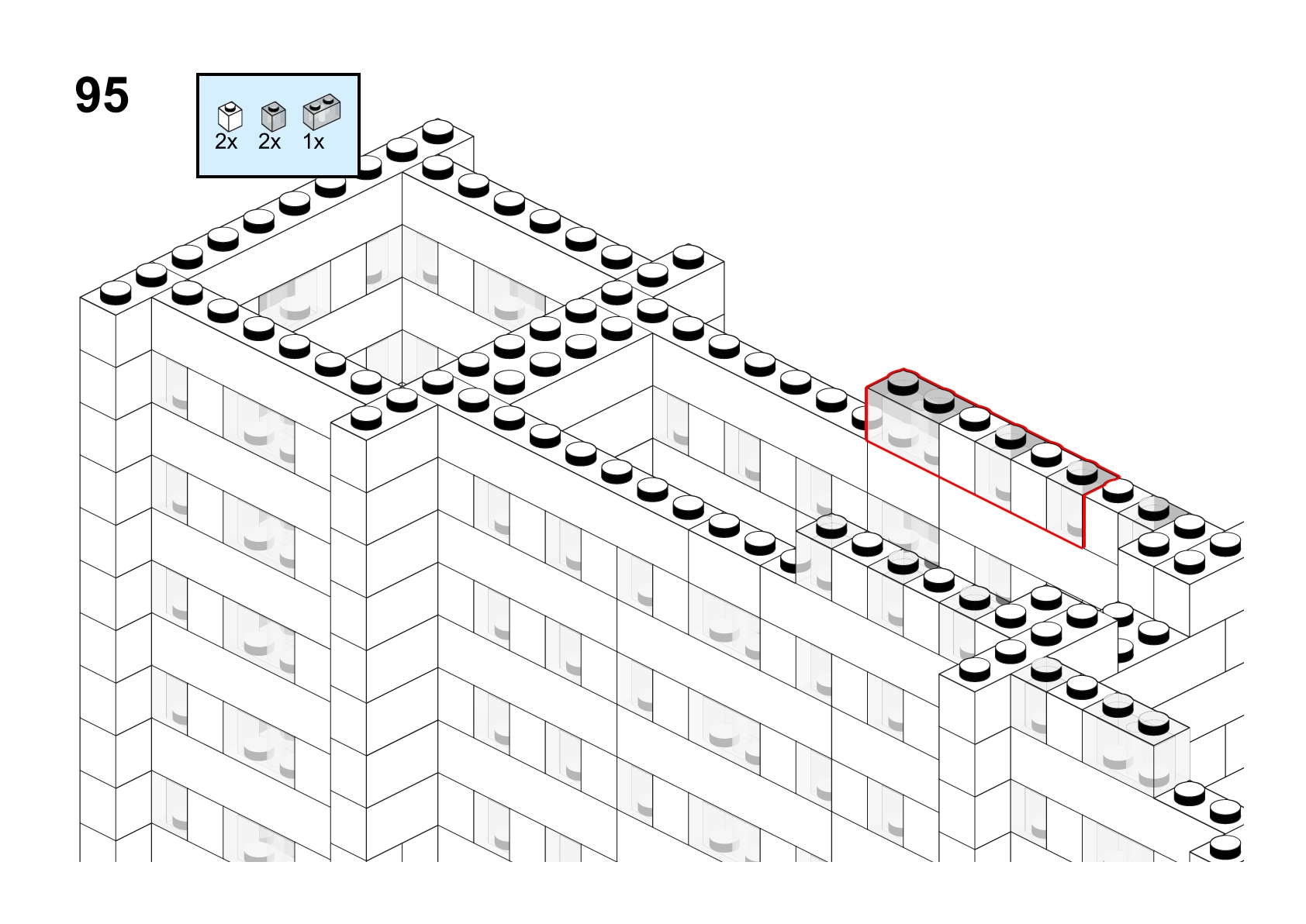 I have built it recently, and included a lighting system. I deviated a bit from the plan and inventory bellow to make it slightly lighter but same height and width. I have added a Hotel sign on top of the doors. Also the top 6 floors level in this version is 6 slots wide which makes it more comfortable, and I have reduced the number of inner reinforcement. It is stable and relatively solid. I’ll drop the insructions and inventory soon.