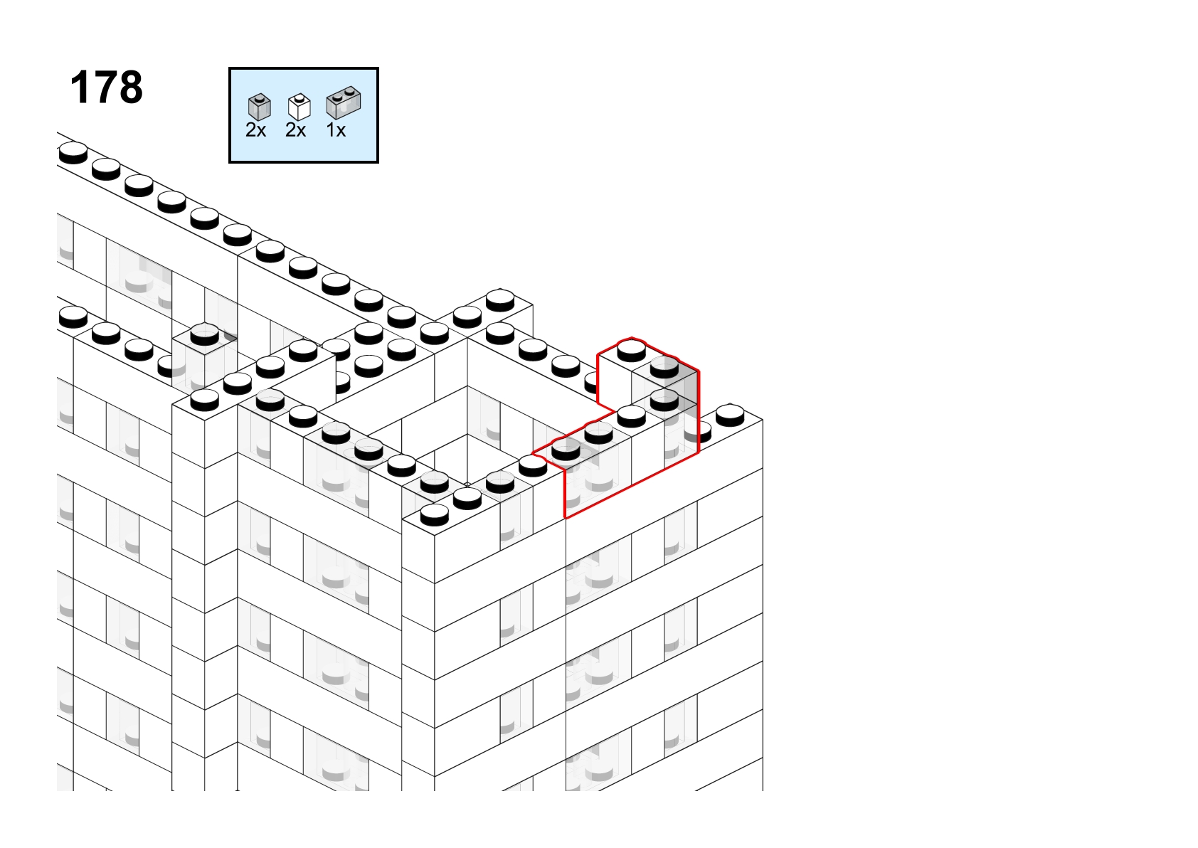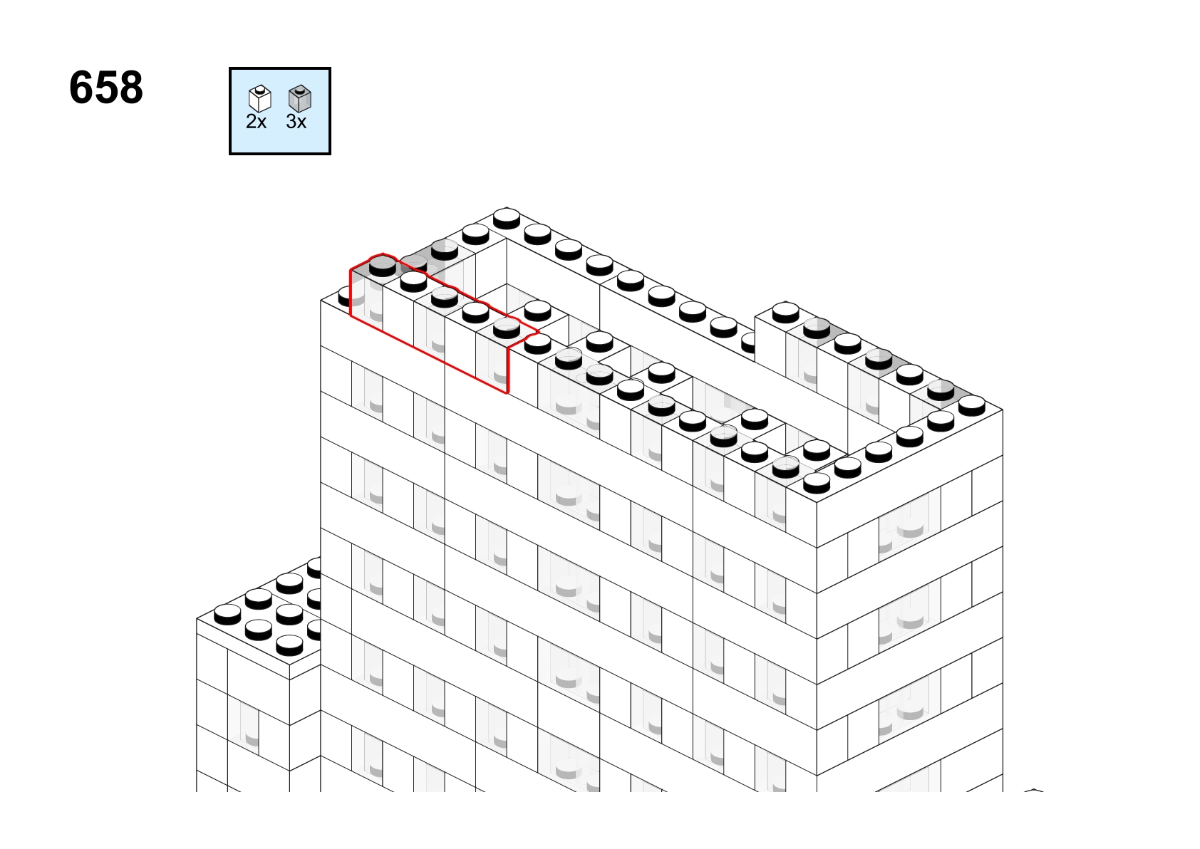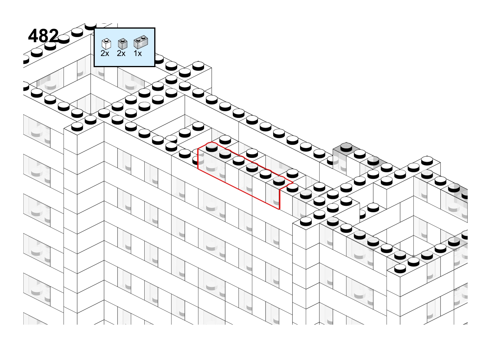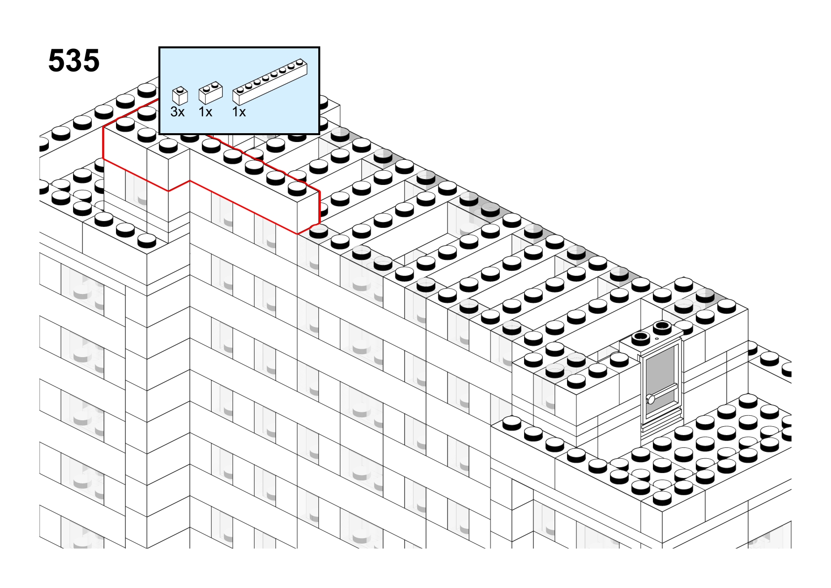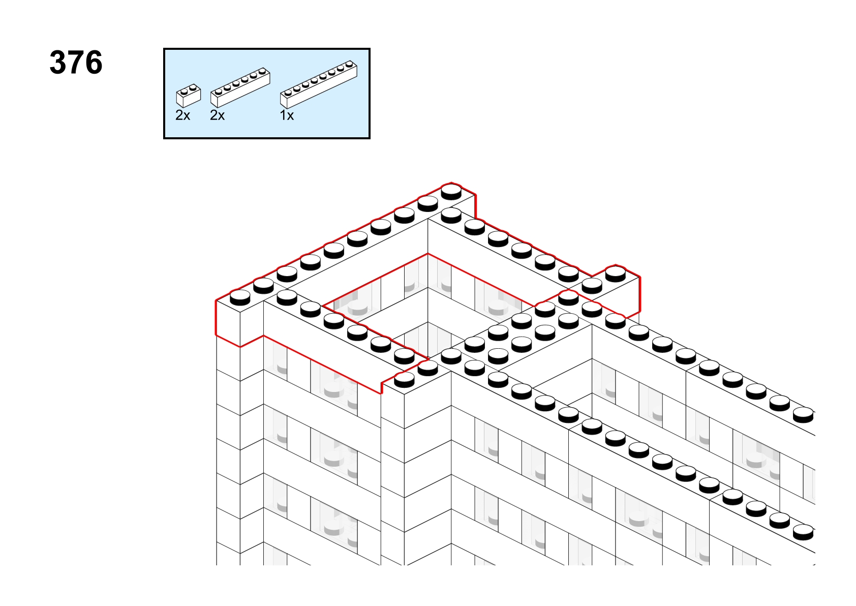 I have built it recently, and included a lighting system. I deviated a bit from the plan and inventory bellow to make it slightly lighter but same height and width. I have added a Hotel sign on top of the doors. Also the top 6 floors level in this version is 6 slots wide which makes it more comfortable, and I have reduced the number of inner reinforcement. It is stable and relatively solid. I’ll drop the insructions and inventory soon.