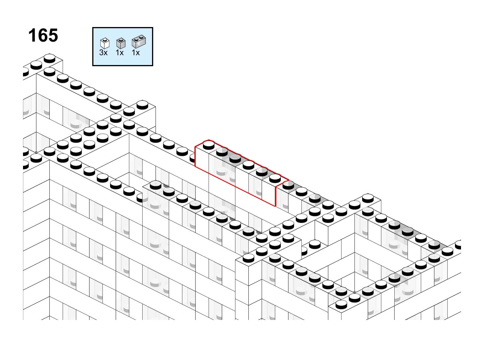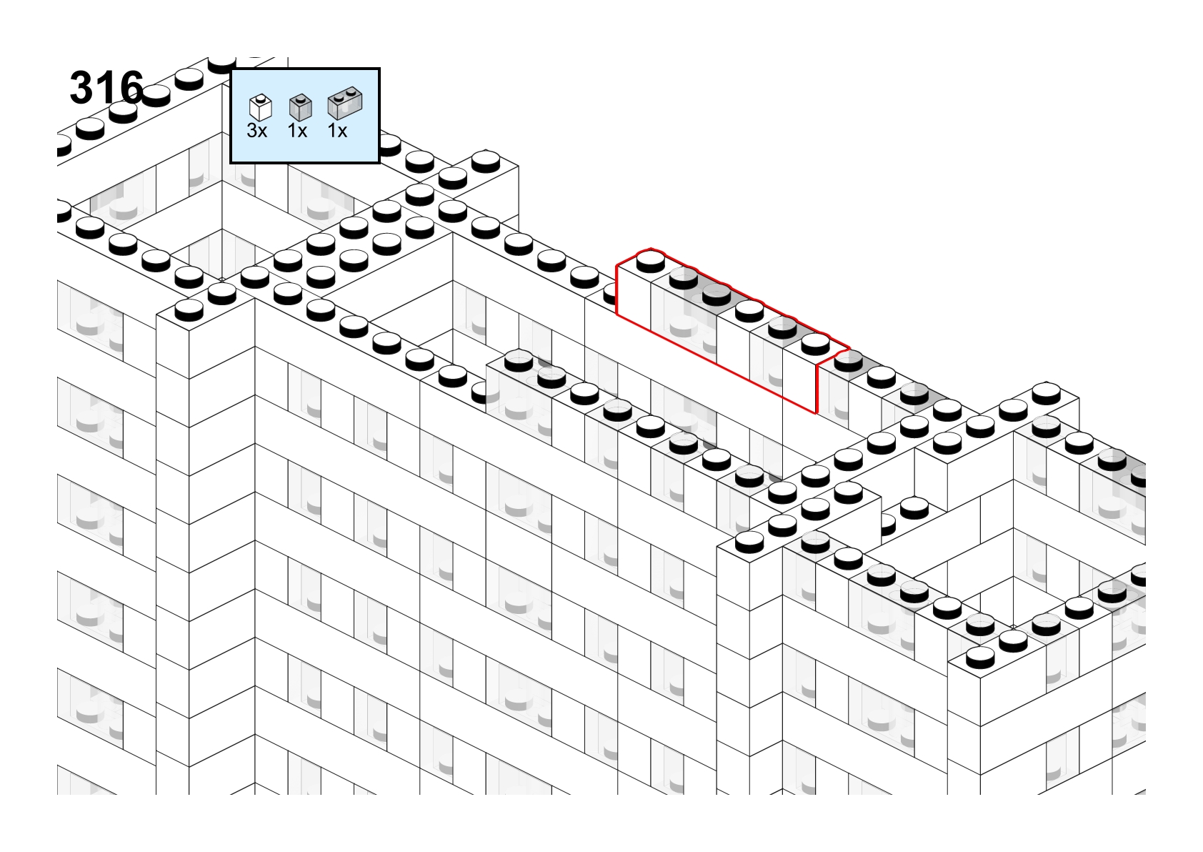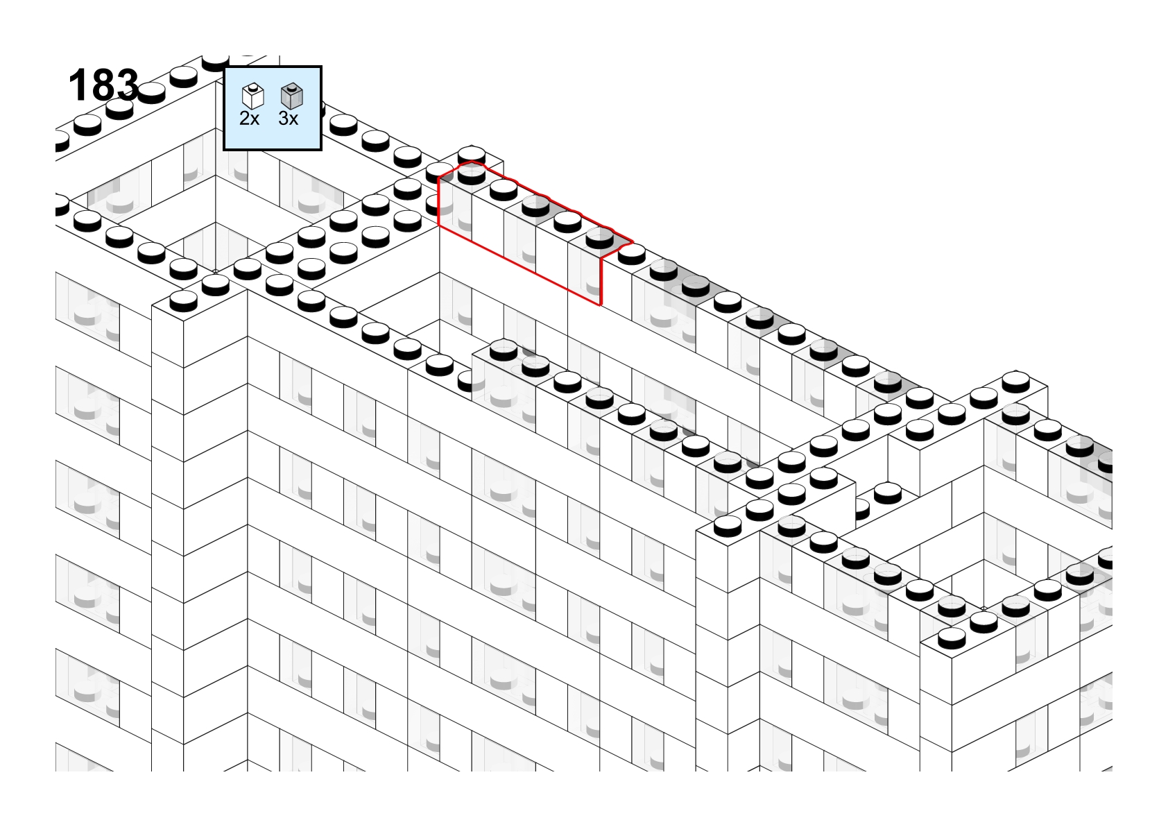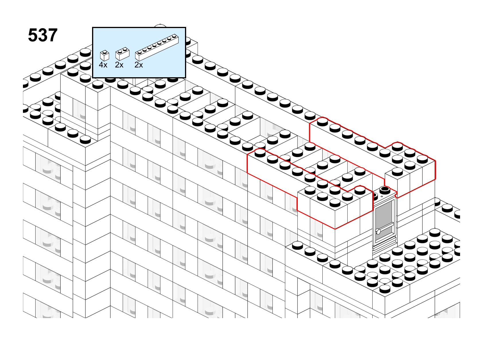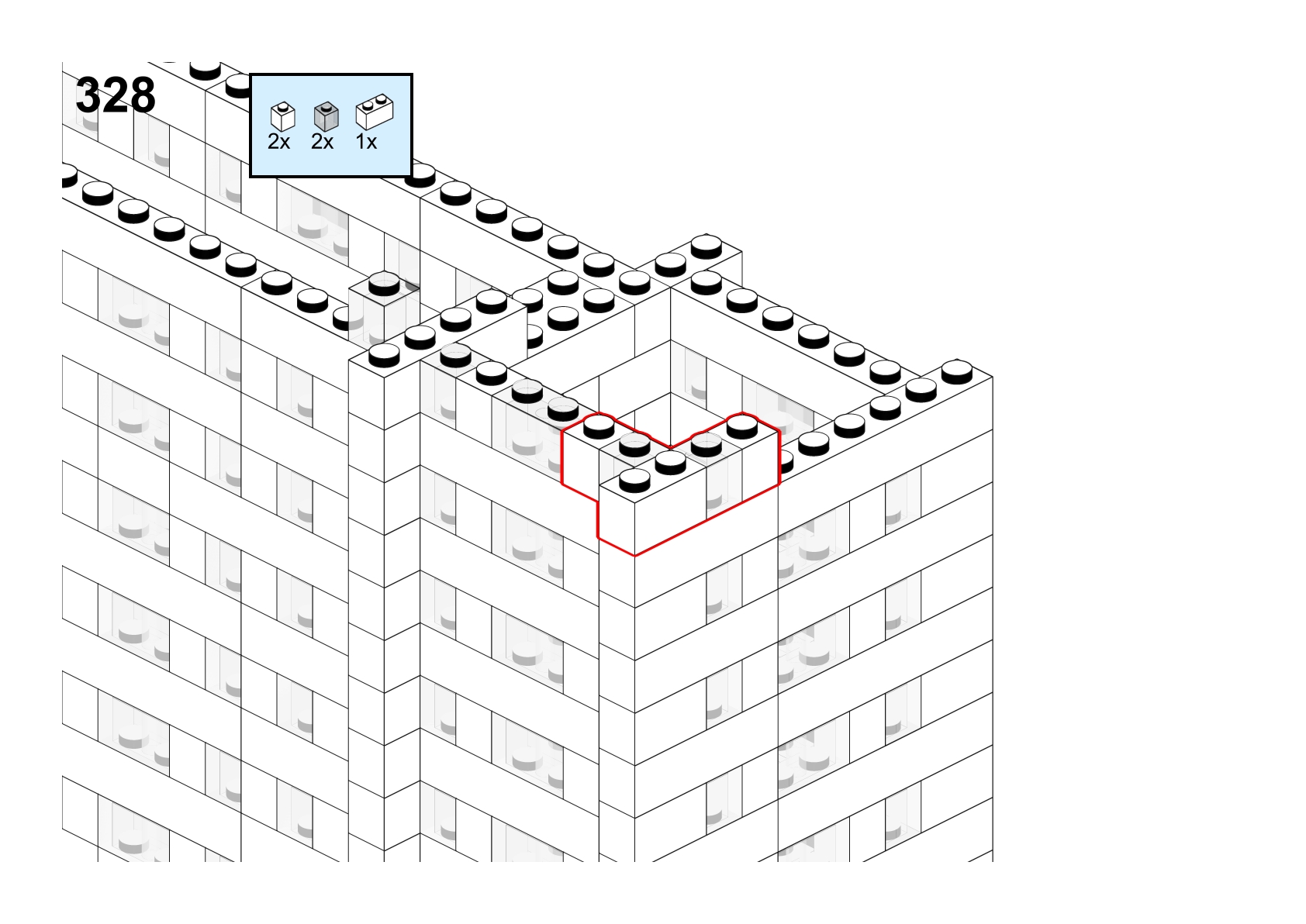 I have built it recently, and included a lighting system. I deviated a bit from the plan and inventory bellow to make it slightly lighter but same height and width. I have added a Hotel sign on top of the doors. Also the top 6 floors level in this version is 6 slots wide which makes it more comfortable, and I have reduced the number of inner reinforcement. It is stable and relatively solid. I’ll drop the insructions and inventory soon.