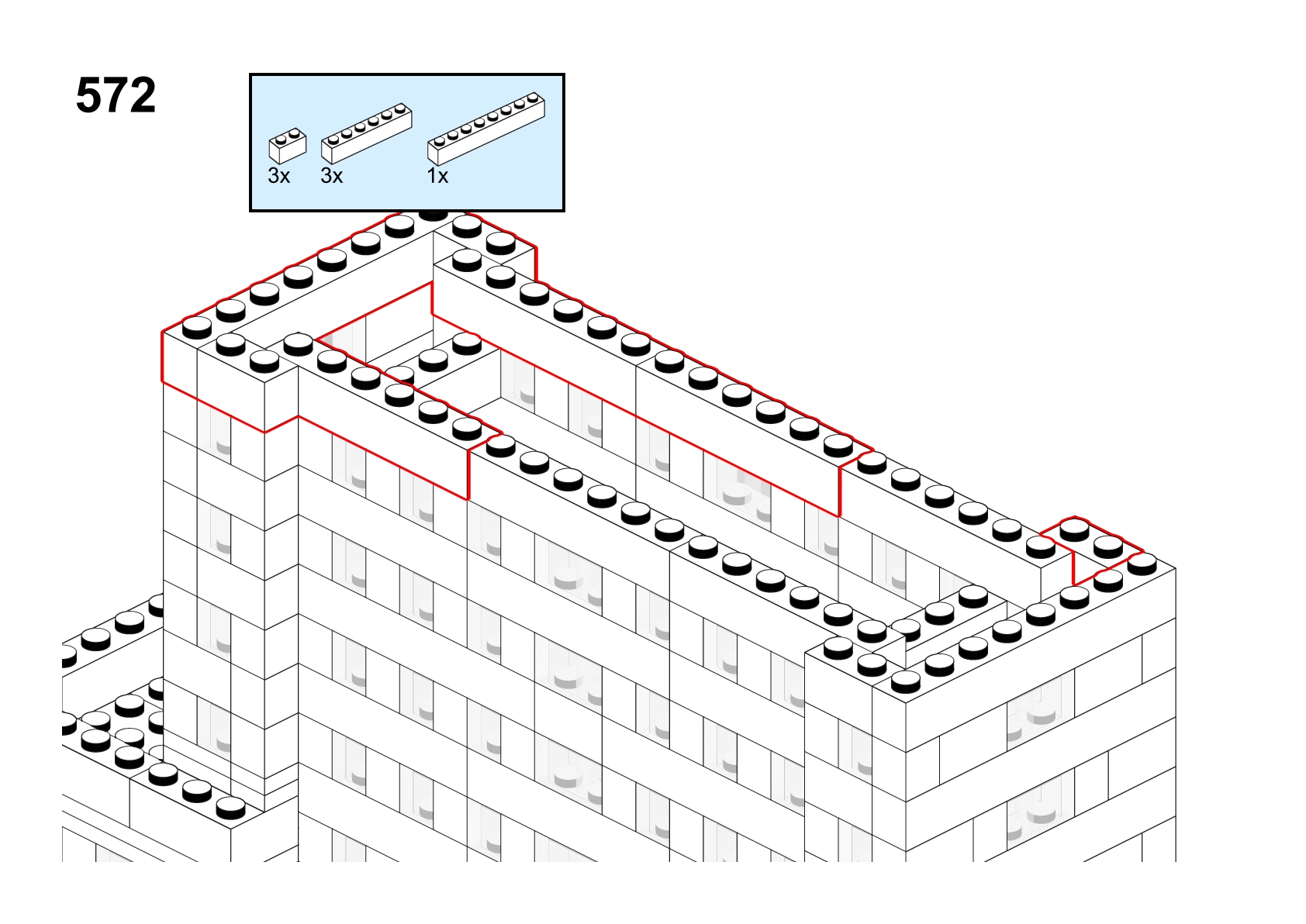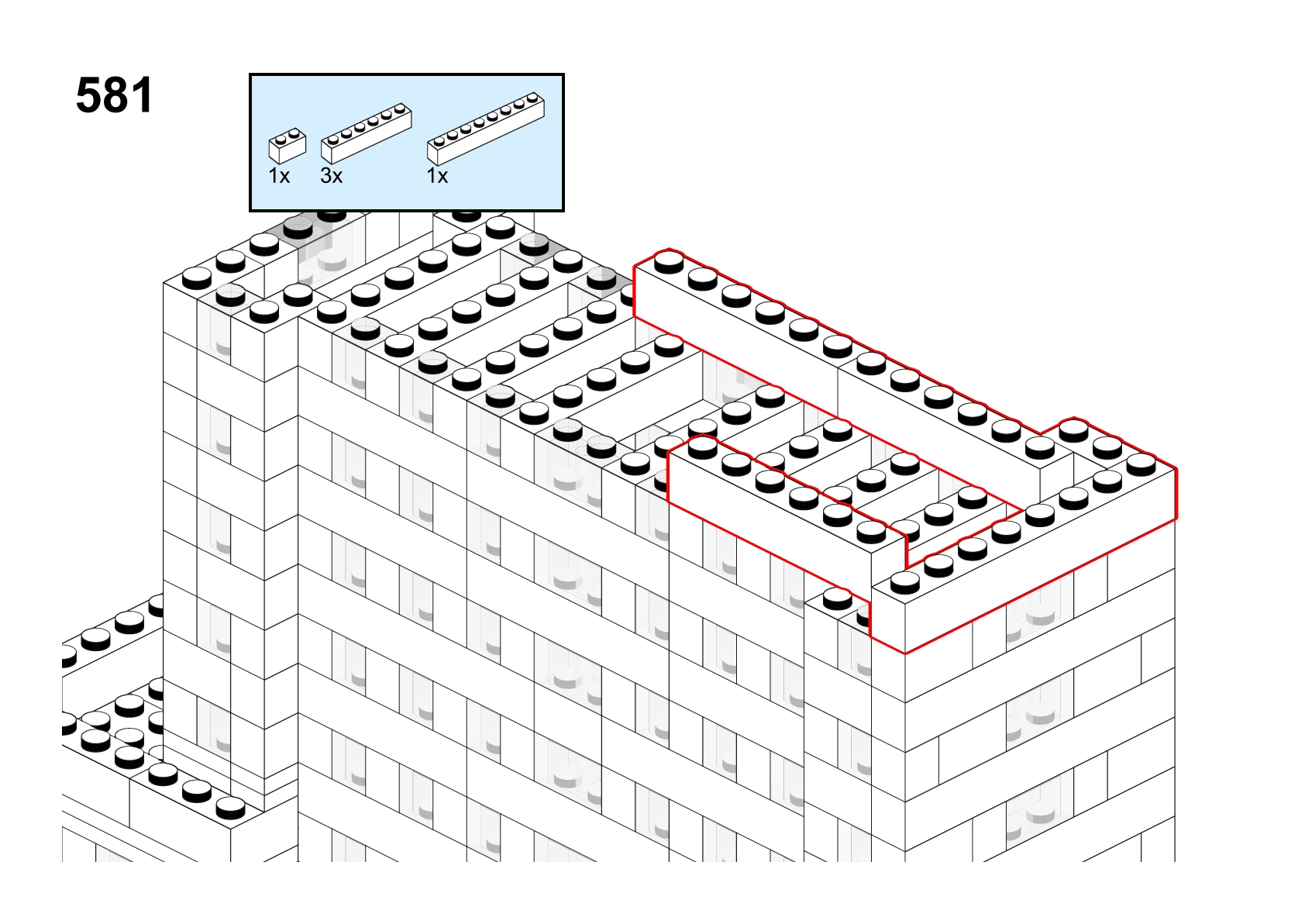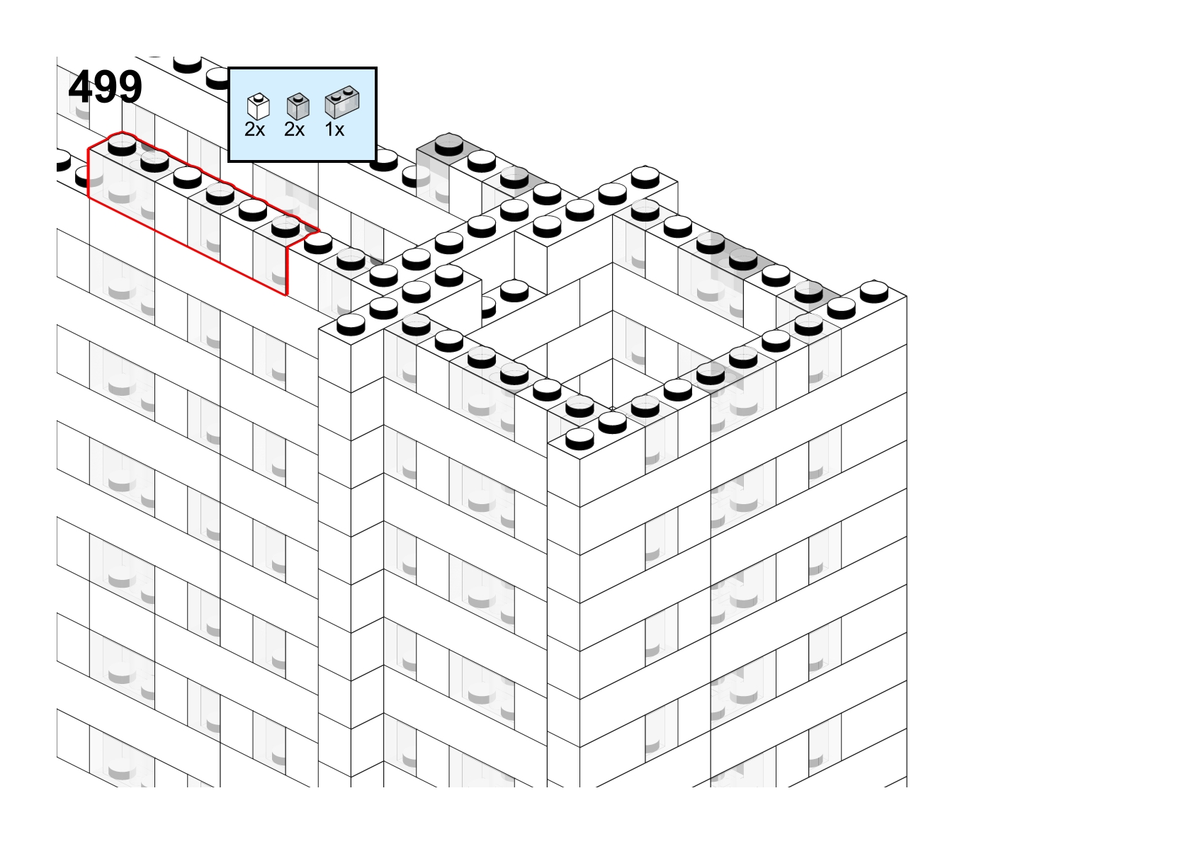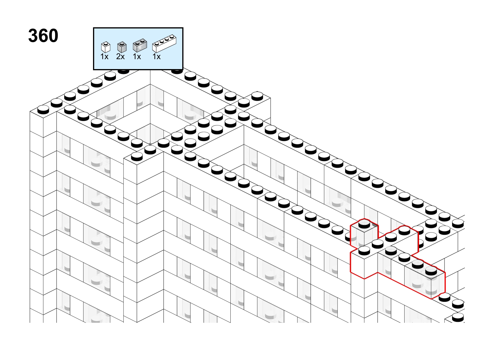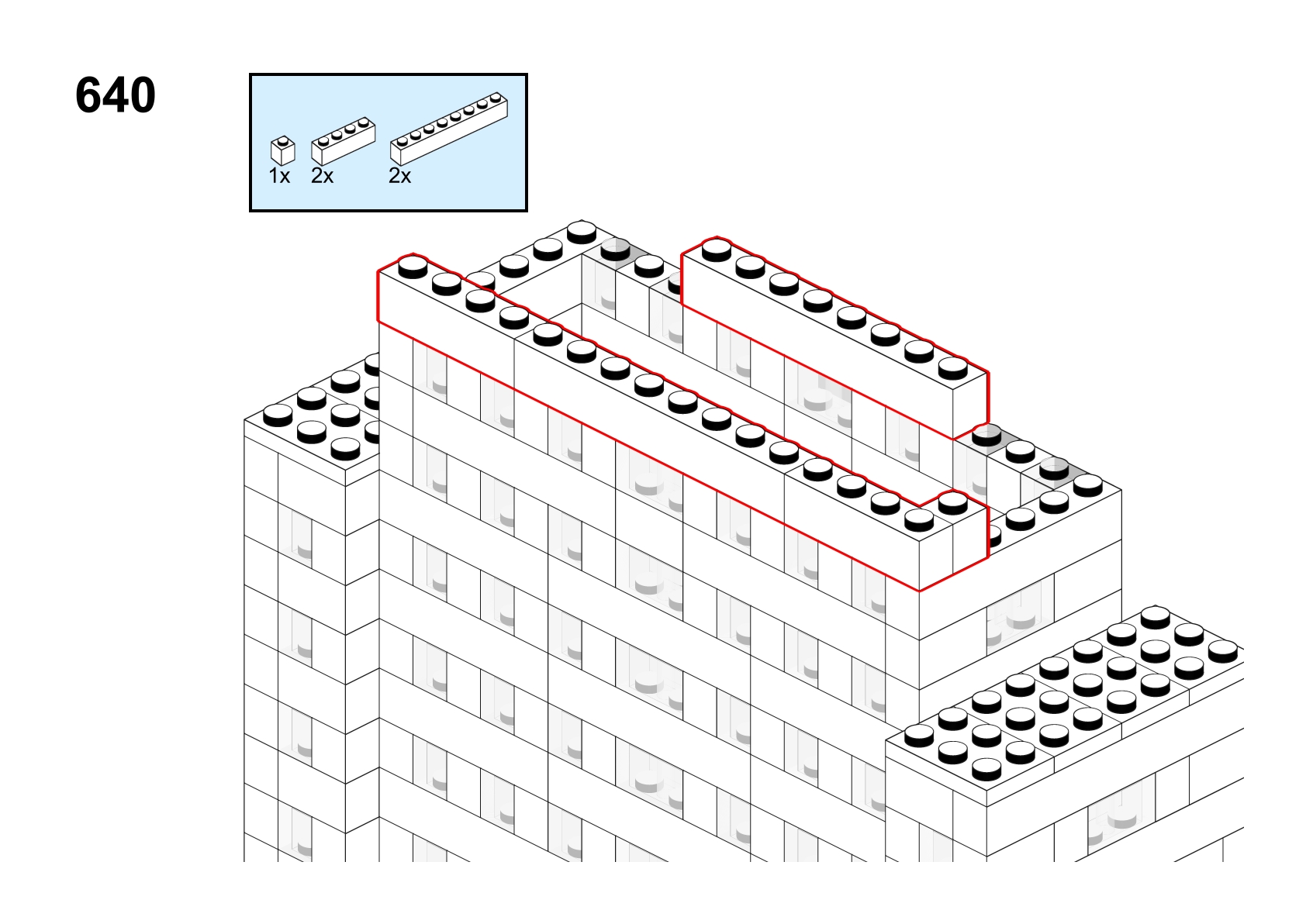 I have built it recently, and included a lighting system. I deviated a bit from the plan and inventory bellow to make it slightly lighter but same height and width. I have added a Hotel sign on top of the doors. Also the top 6 floors level in this version is 6 slots wide which makes it more comfortable, and I have reduced the number of inner reinforcement. It is stable and relatively solid. I’ll drop the insructions and inventory soon.