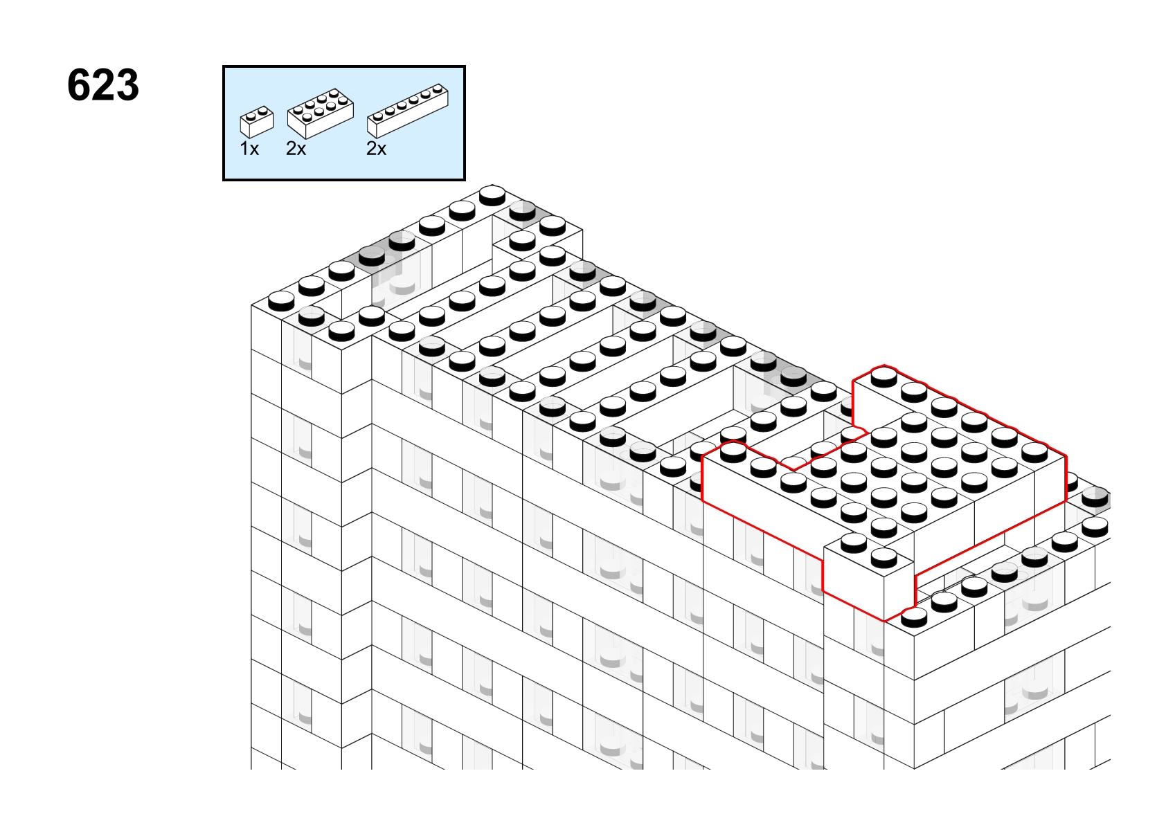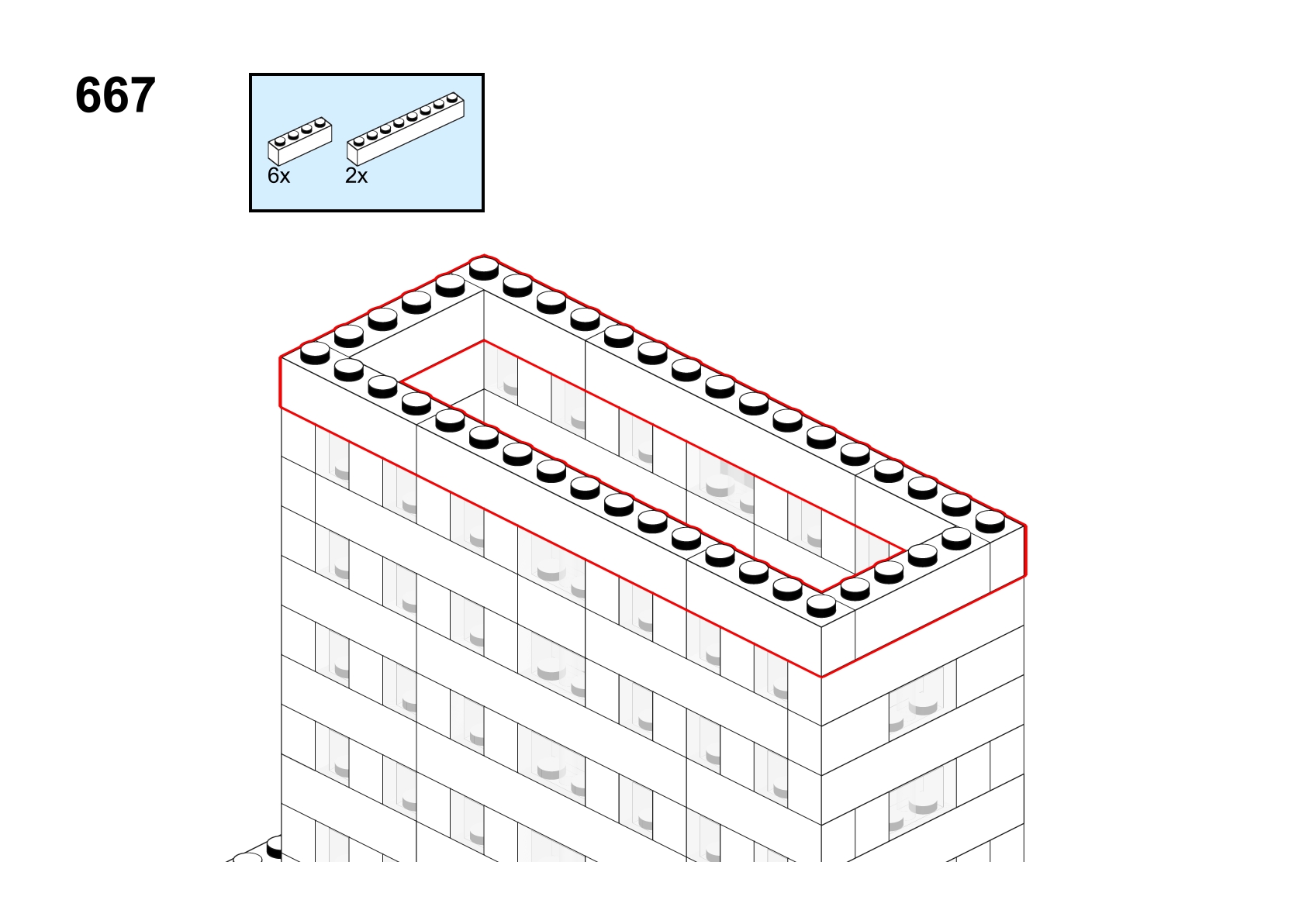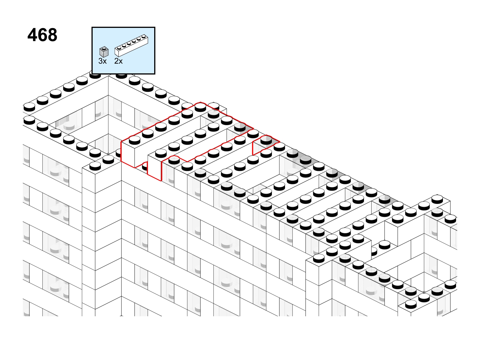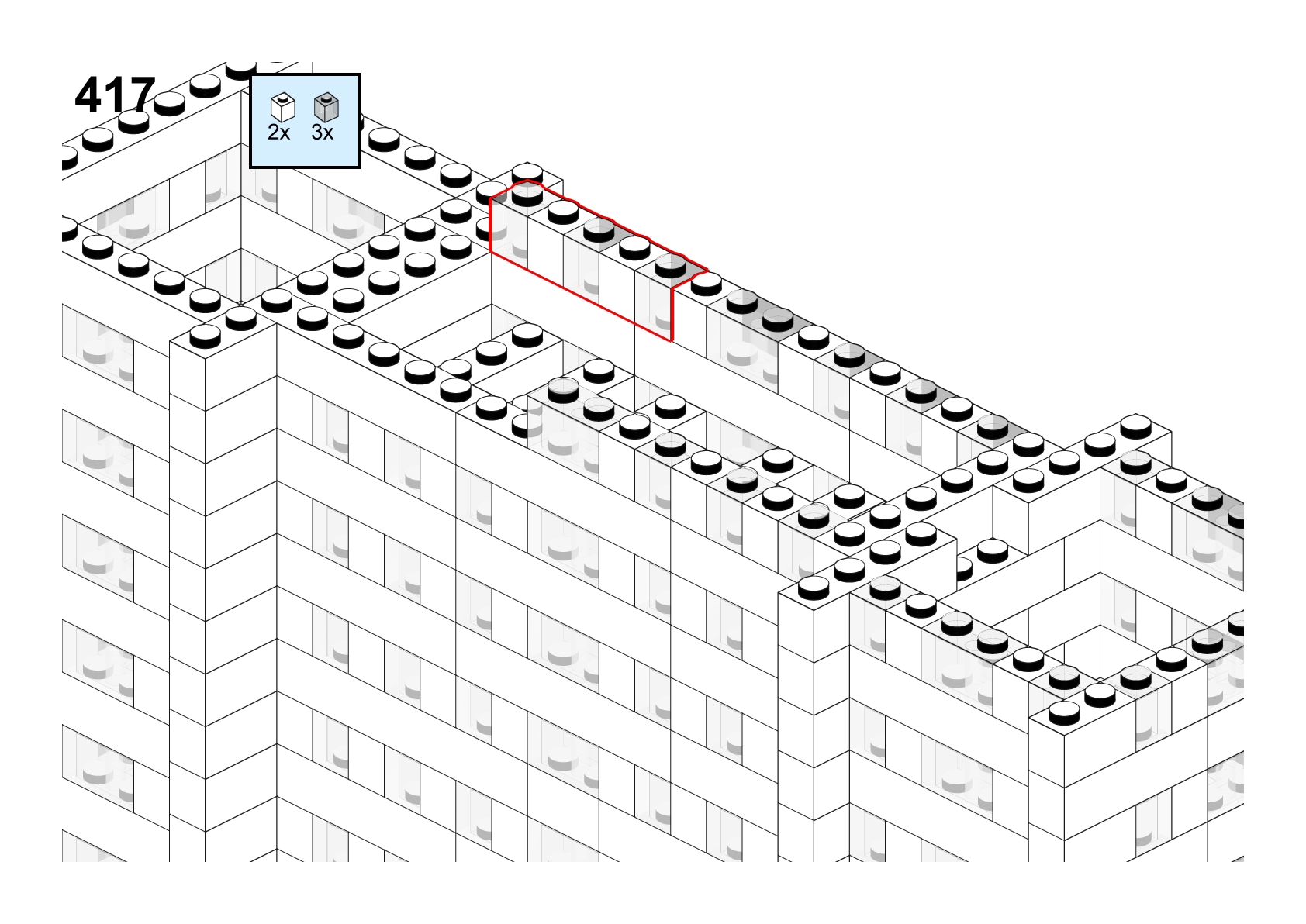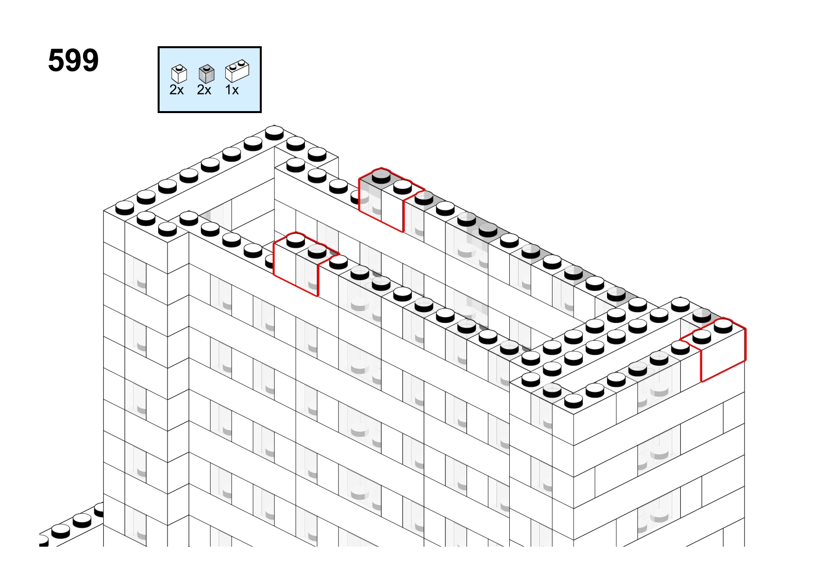 I have built it recently, and included a lighting system. I deviated a bit from the plan and inventory bellow to make it slightly lighter but same height and width. I have added a Hotel sign on top of the doors. Also the top 6 floors level in this version is 6 slots wide which makes it more comfortable, and I have reduced the number of inner reinforcement. It is stable and relatively solid. I’ll drop the insructions and inventory soon.