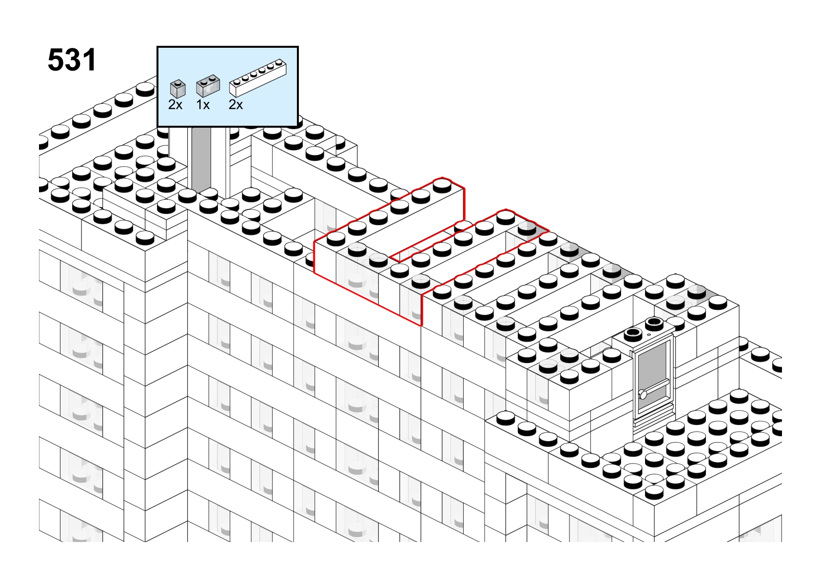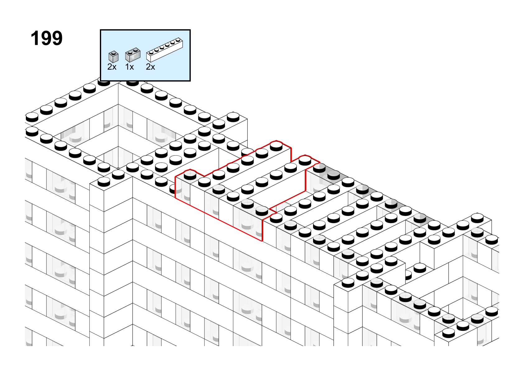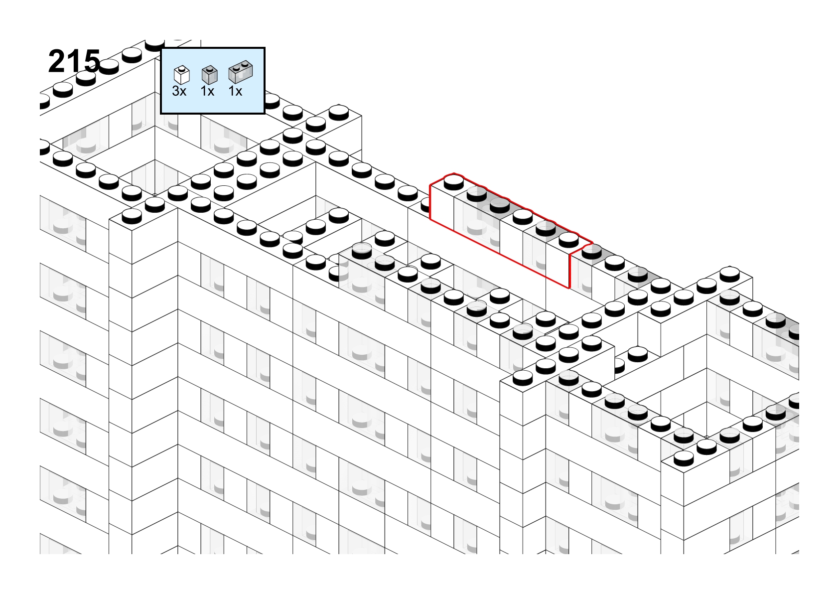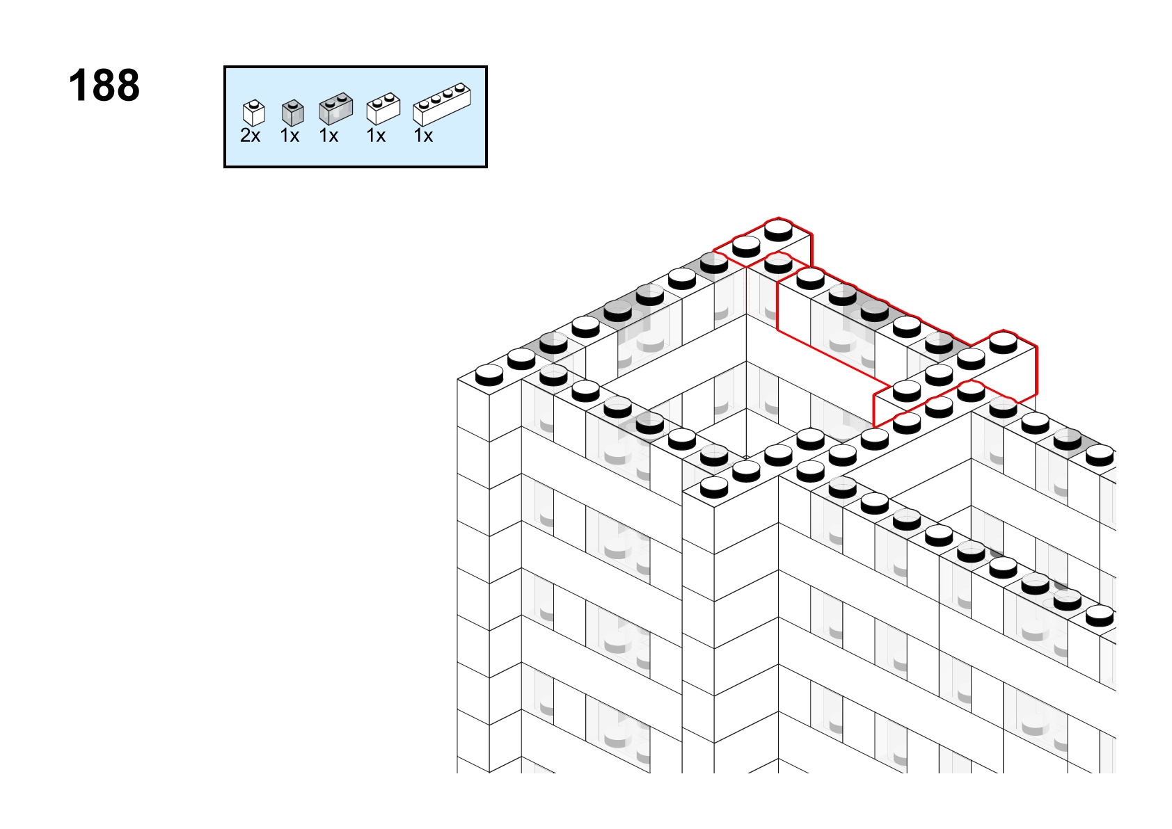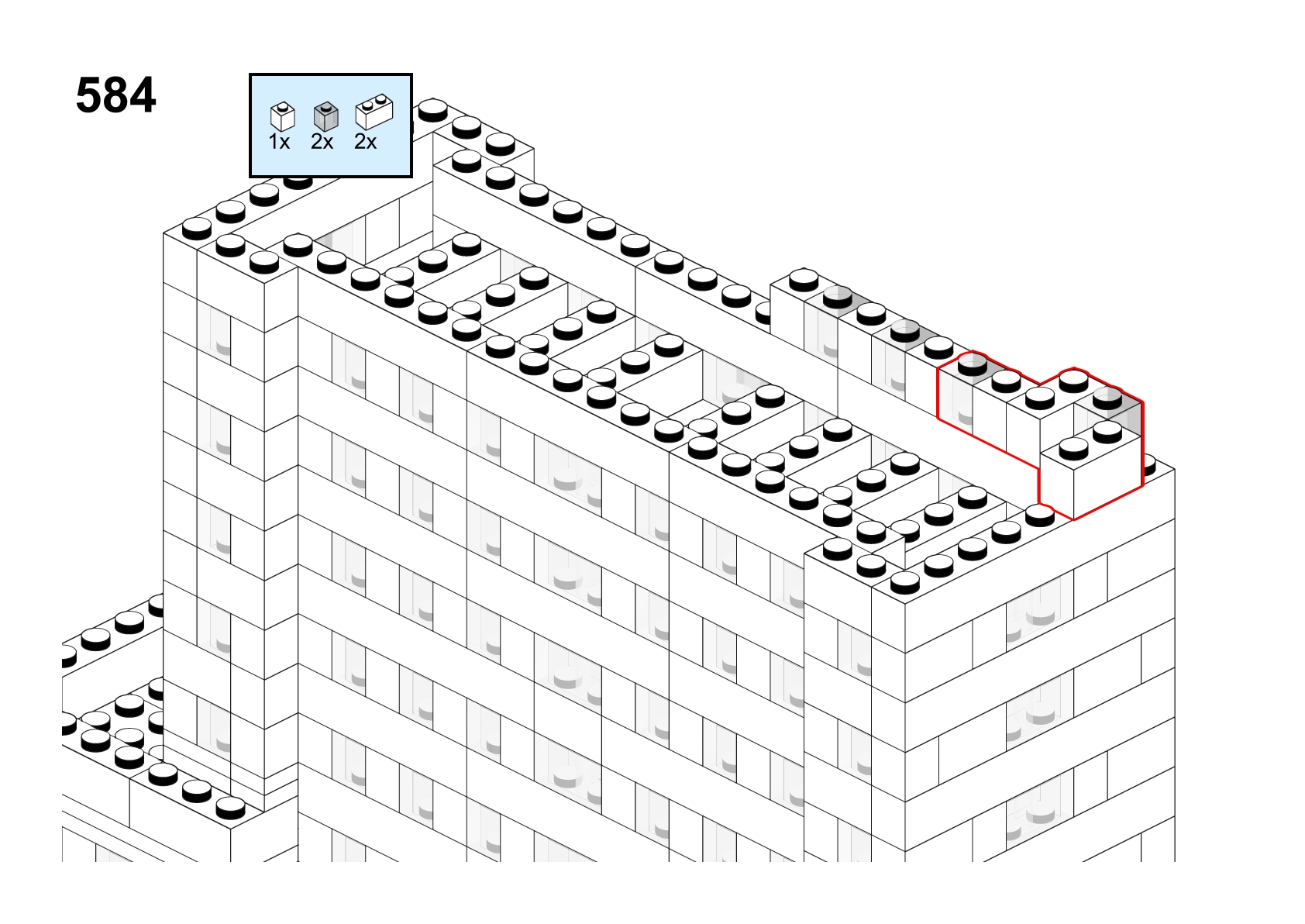 I have built it recently, and included a lighting system. I deviated a bit from the plan and inventory bellow to make it slightly lighter but same height and width. I have added a Hotel sign on top of the doors. Also the top 6 floors level in this version is 6 slots wide which makes it more comfortable, and I have reduced the number of inner reinforcement. It is stable and relatively solid. I’ll drop the insructions and inventory soon.
