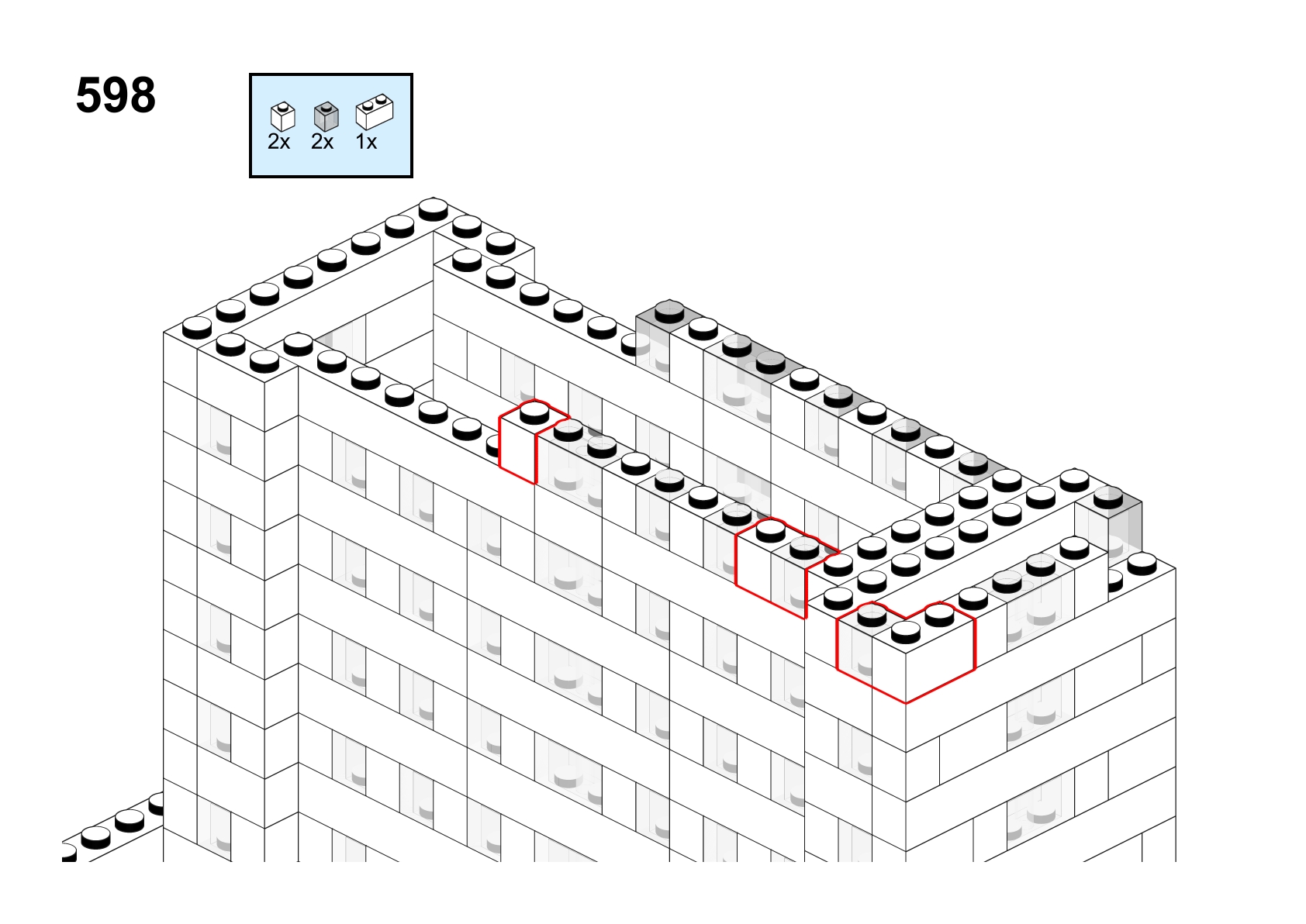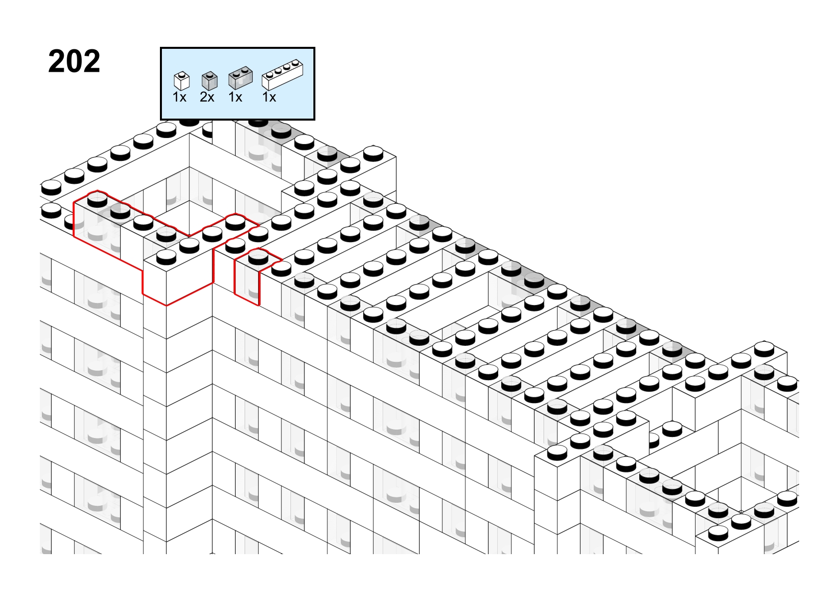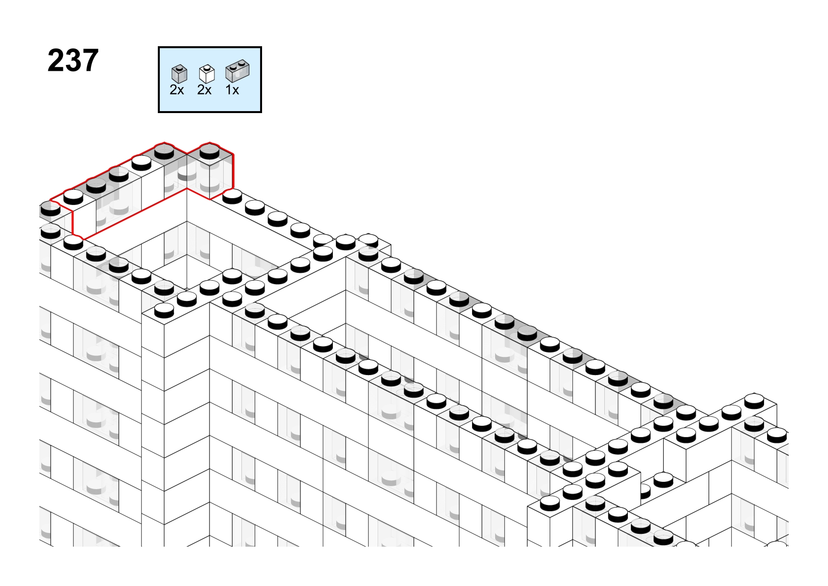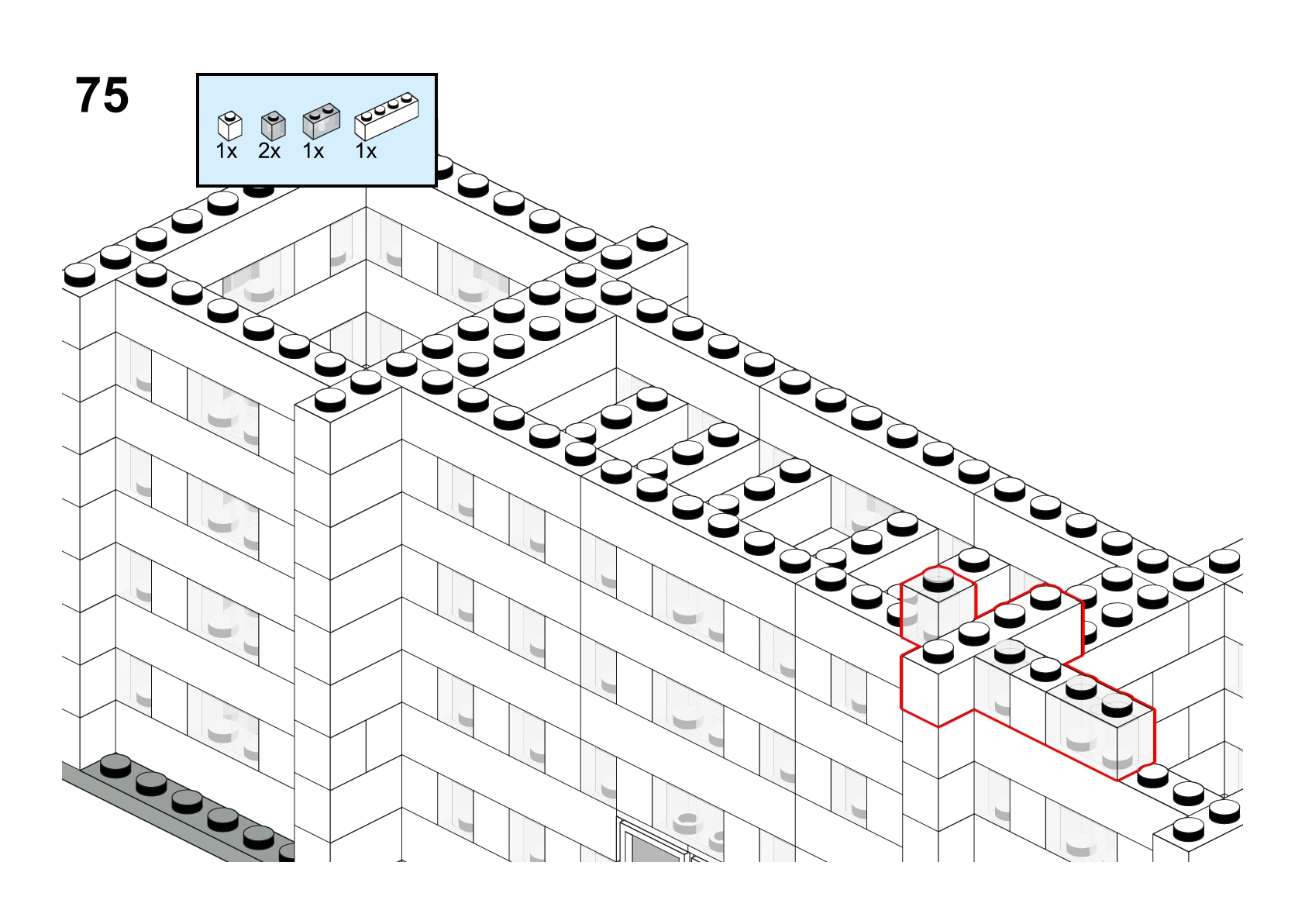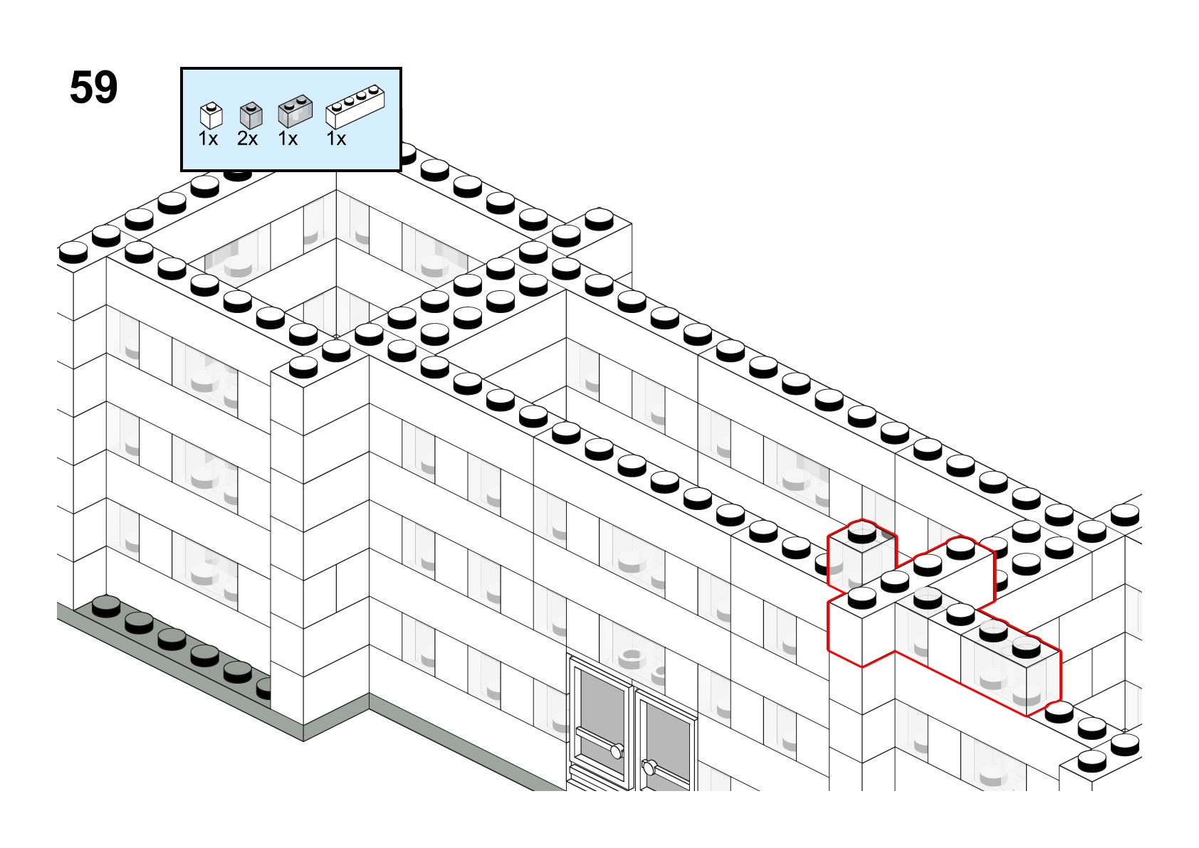 I have built it recently, and included a lighting system. I deviated a bit from the plan and inventory bellow to make it slightly lighter but same height and width. I have added a Hotel sign on top of the doors. Also the top 6 floors level in this version is 6 slots wide which makes it more comfortable, and I have reduced the number of inner reinforcement. It is stable and relatively solid. I’ll drop the insructions and inventory soon.