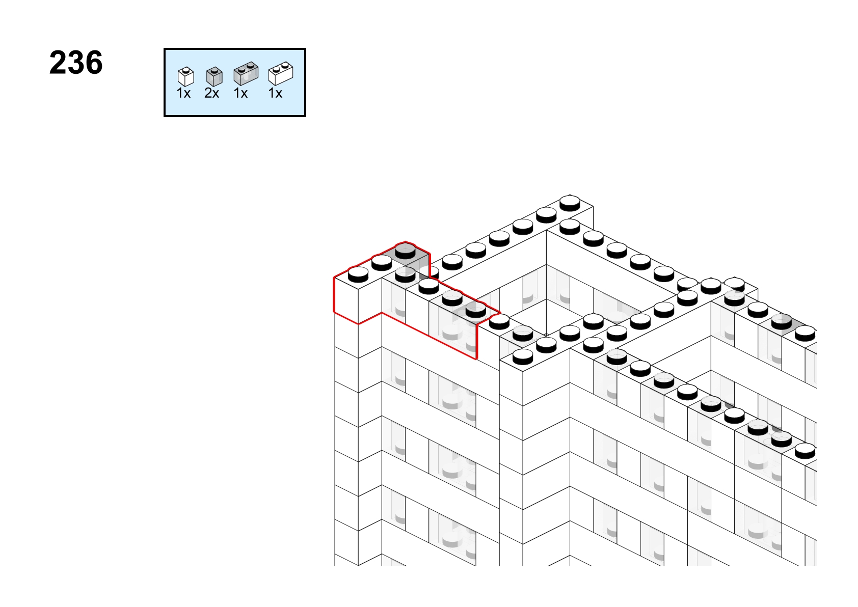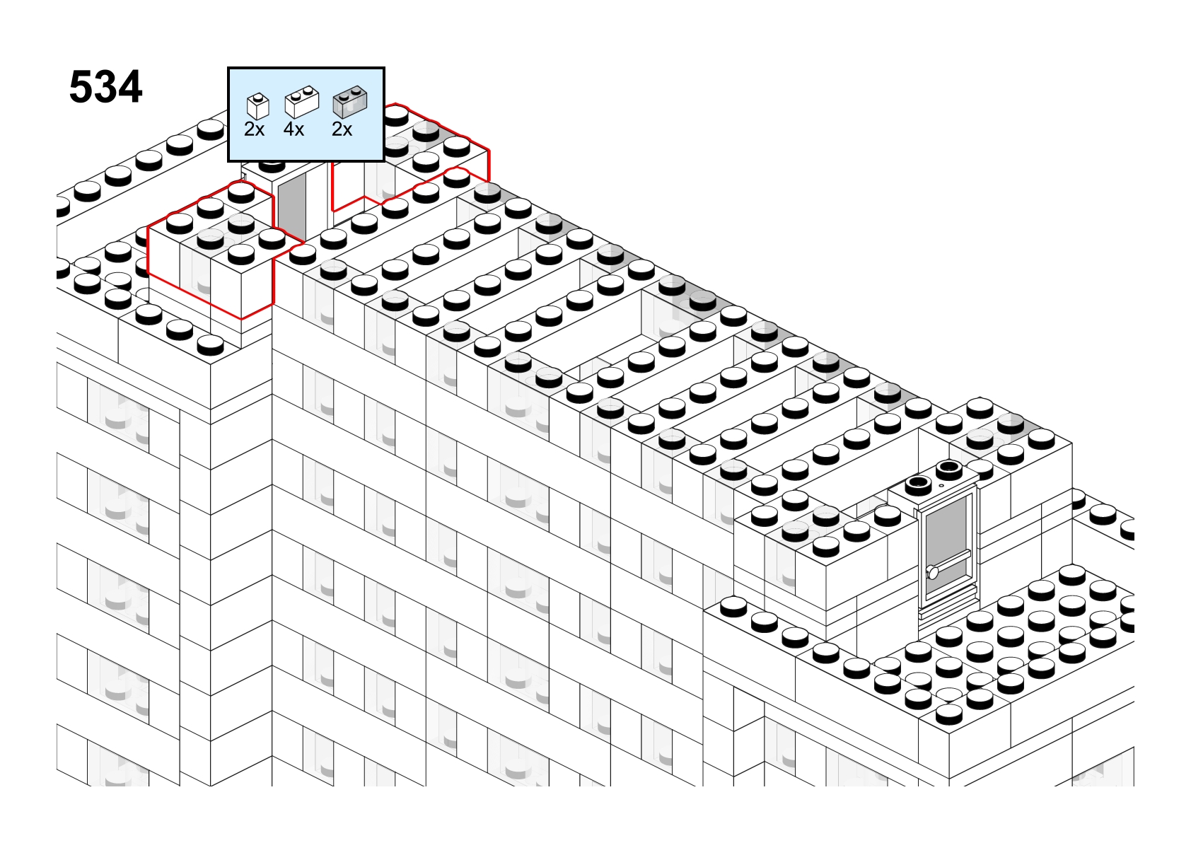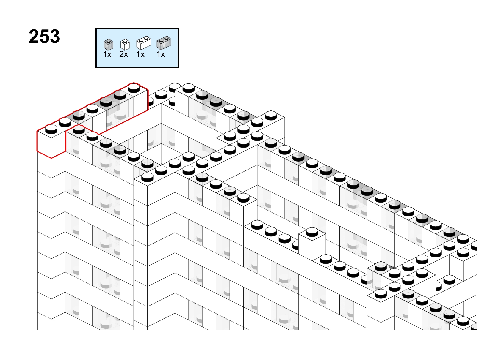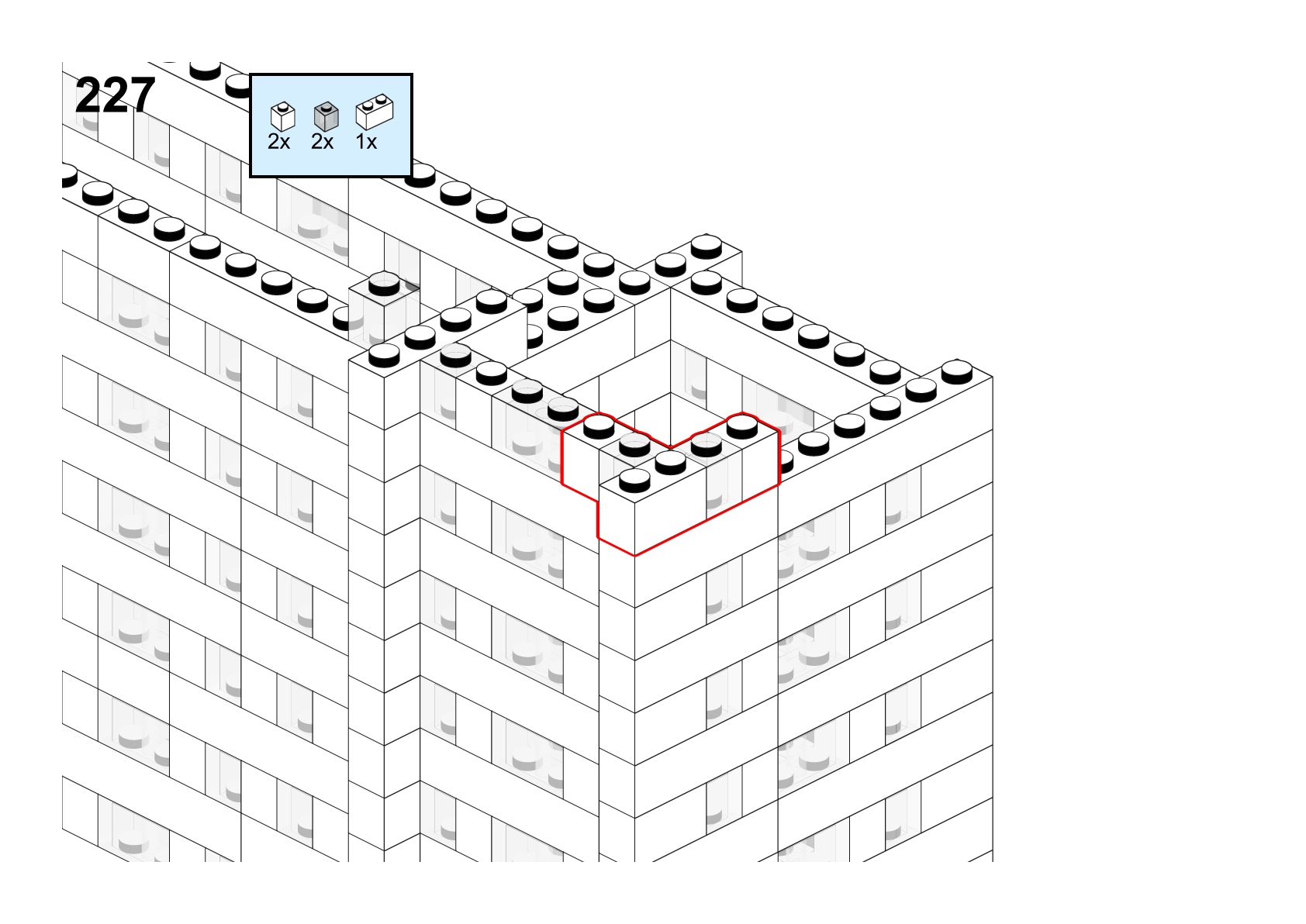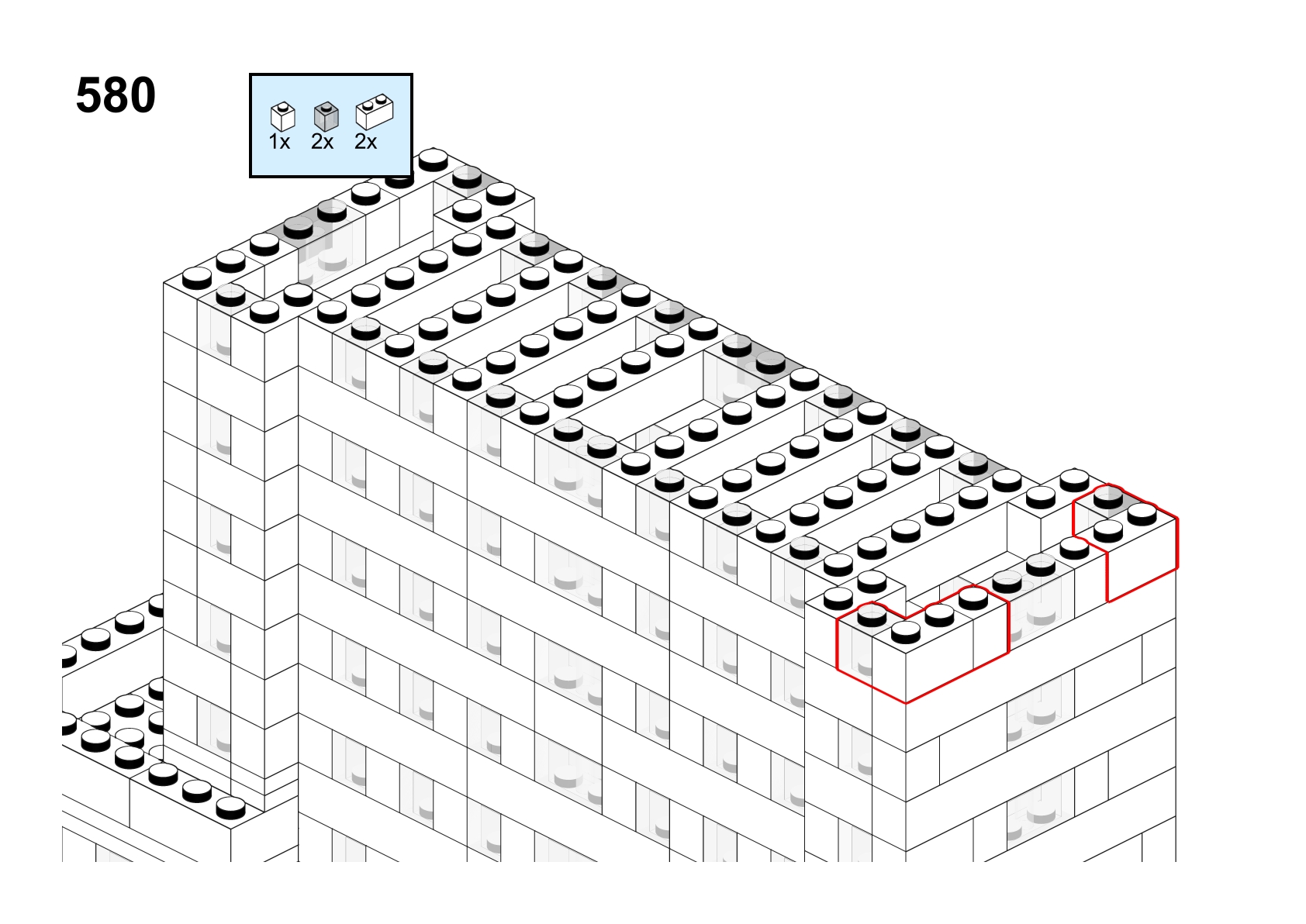 I have built it recently, and included a lighting system. I deviated a bit from the plan and inventory bellow to make it slightly lighter but same height and width. I have added a Hotel sign on top of the doors. Also the top 6 floors level in this version is 6 slots wide which makes it more comfortable, and I have reduced the number of inner reinforcement. It is stable and relatively solid. I’ll drop the insructions and inventory soon.