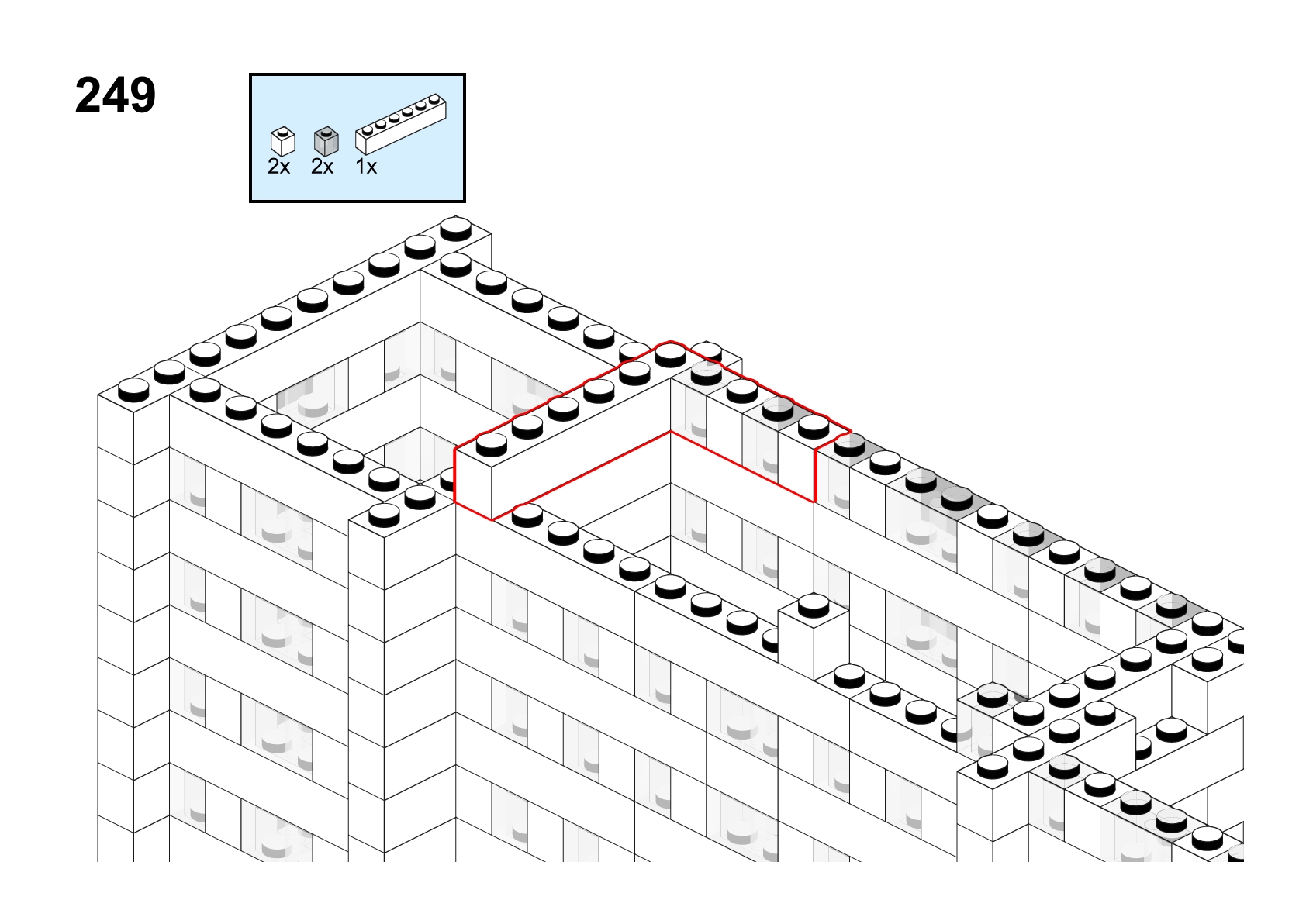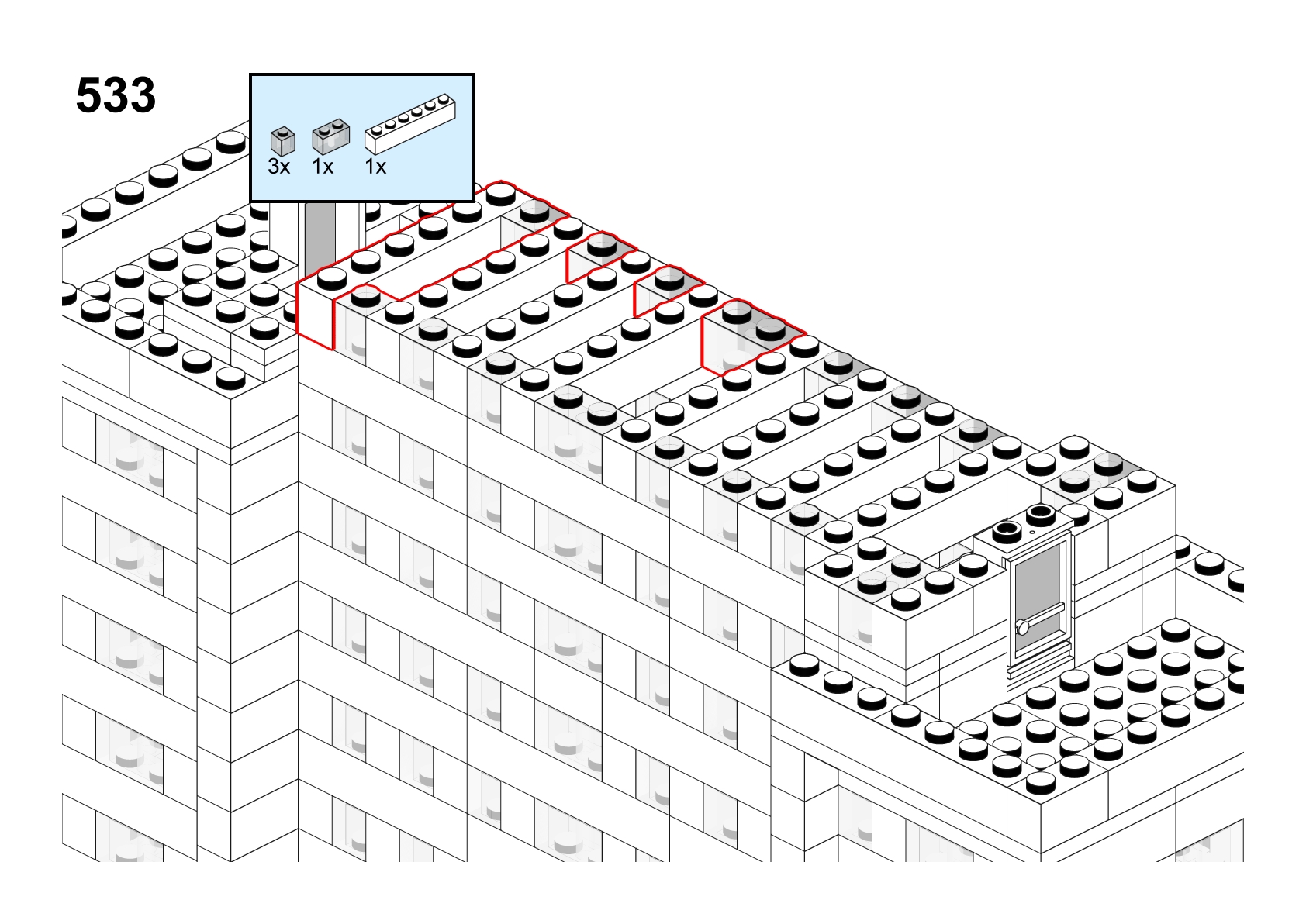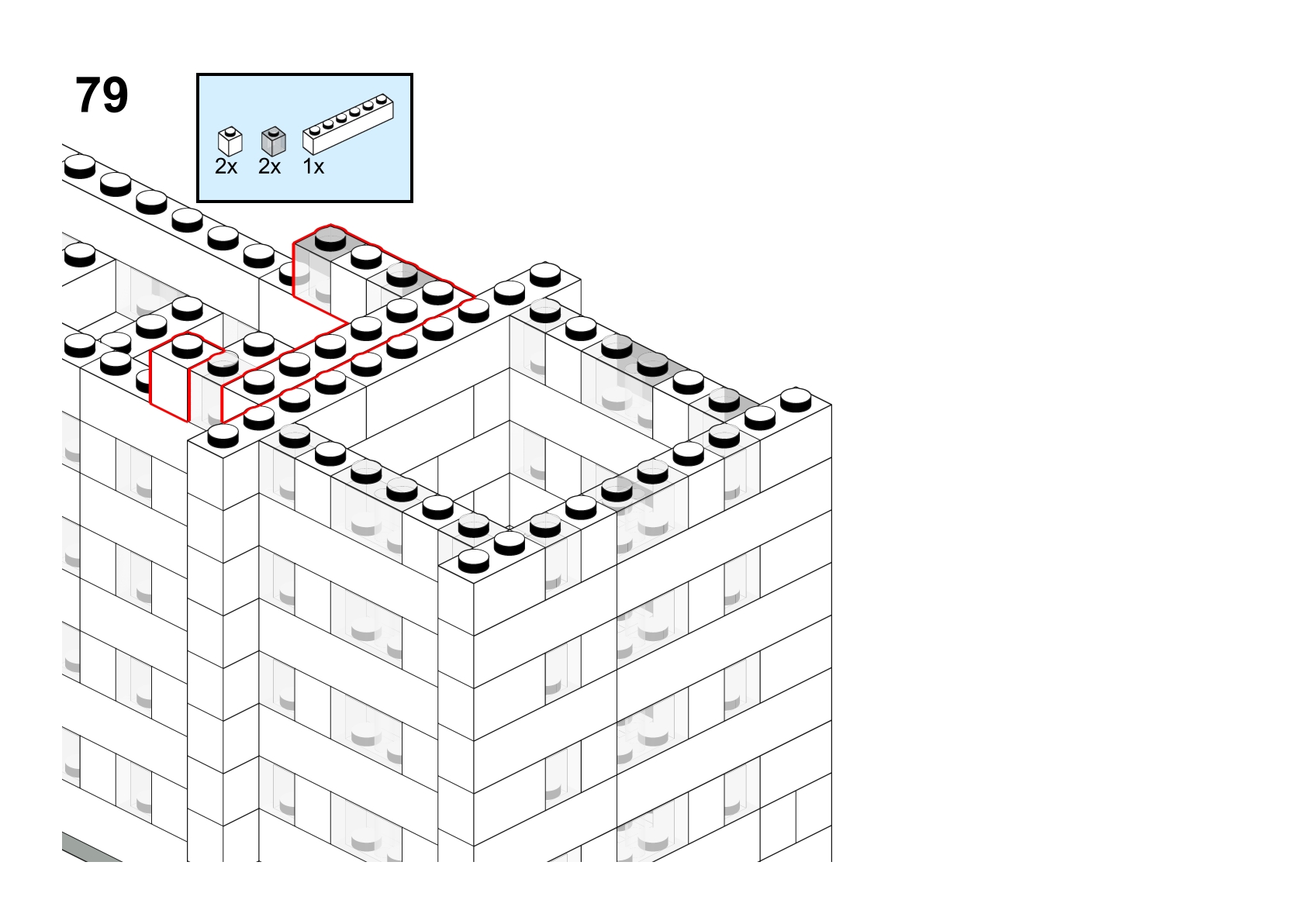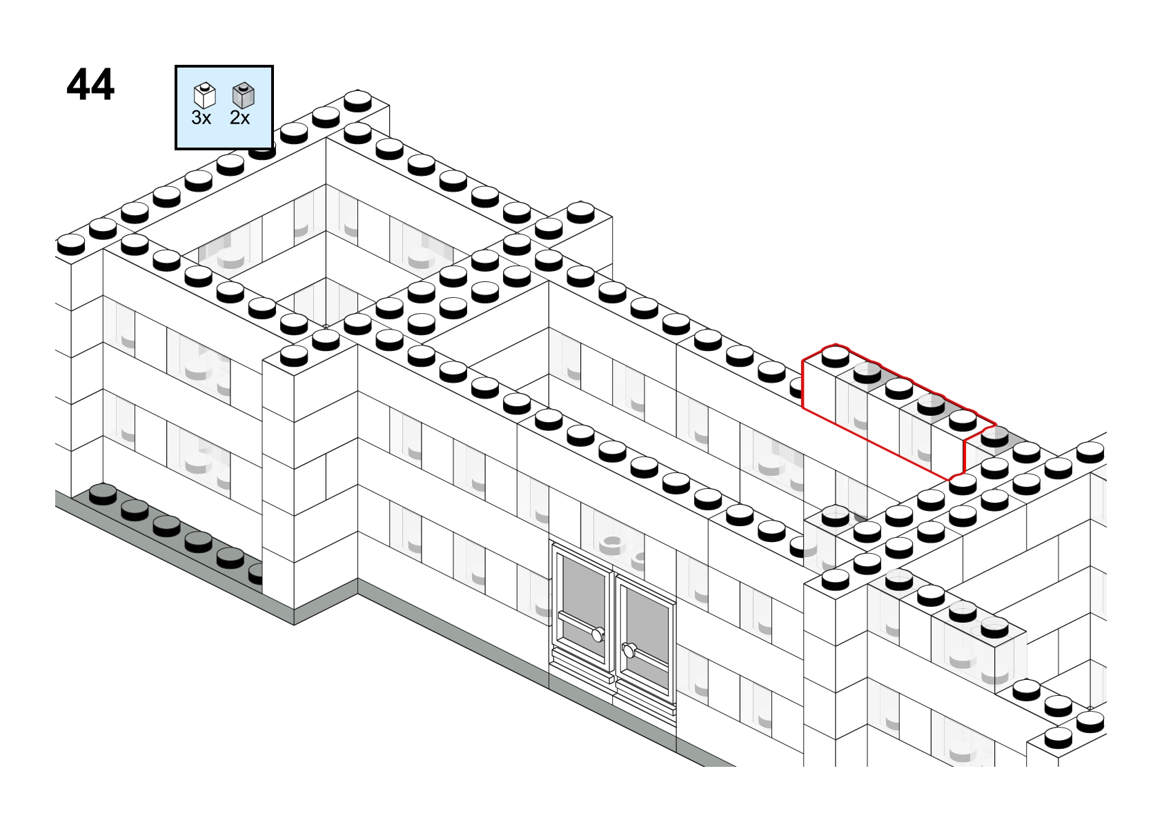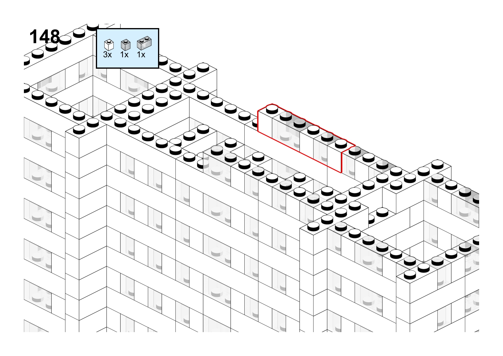 I have built it recently, and included a lighting system. I deviated a bit from the plan and inventory bellow to make it slightly lighter but same height and width. I have added a Hotel sign on top of the doors. Also the top 6 floors level in this version is 6 slots wide which makes it more comfortable, and I have reduced the number of inner reinforcement. It is stable and relatively solid. I’ll drop the insructions and inventory soon.
