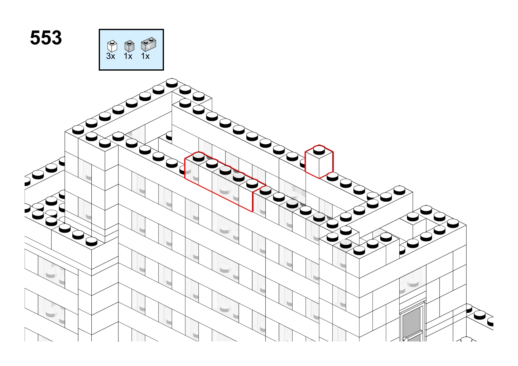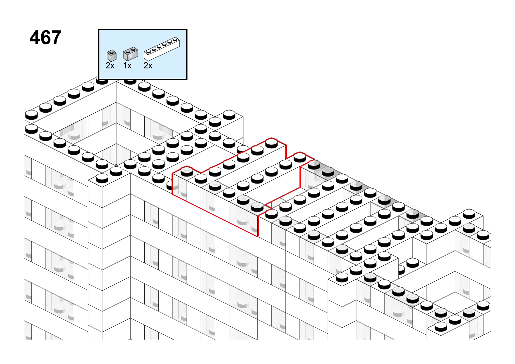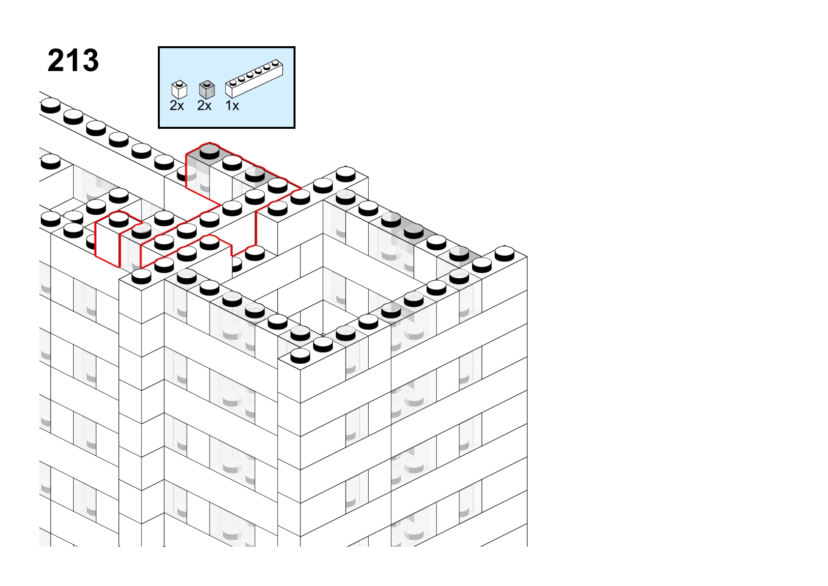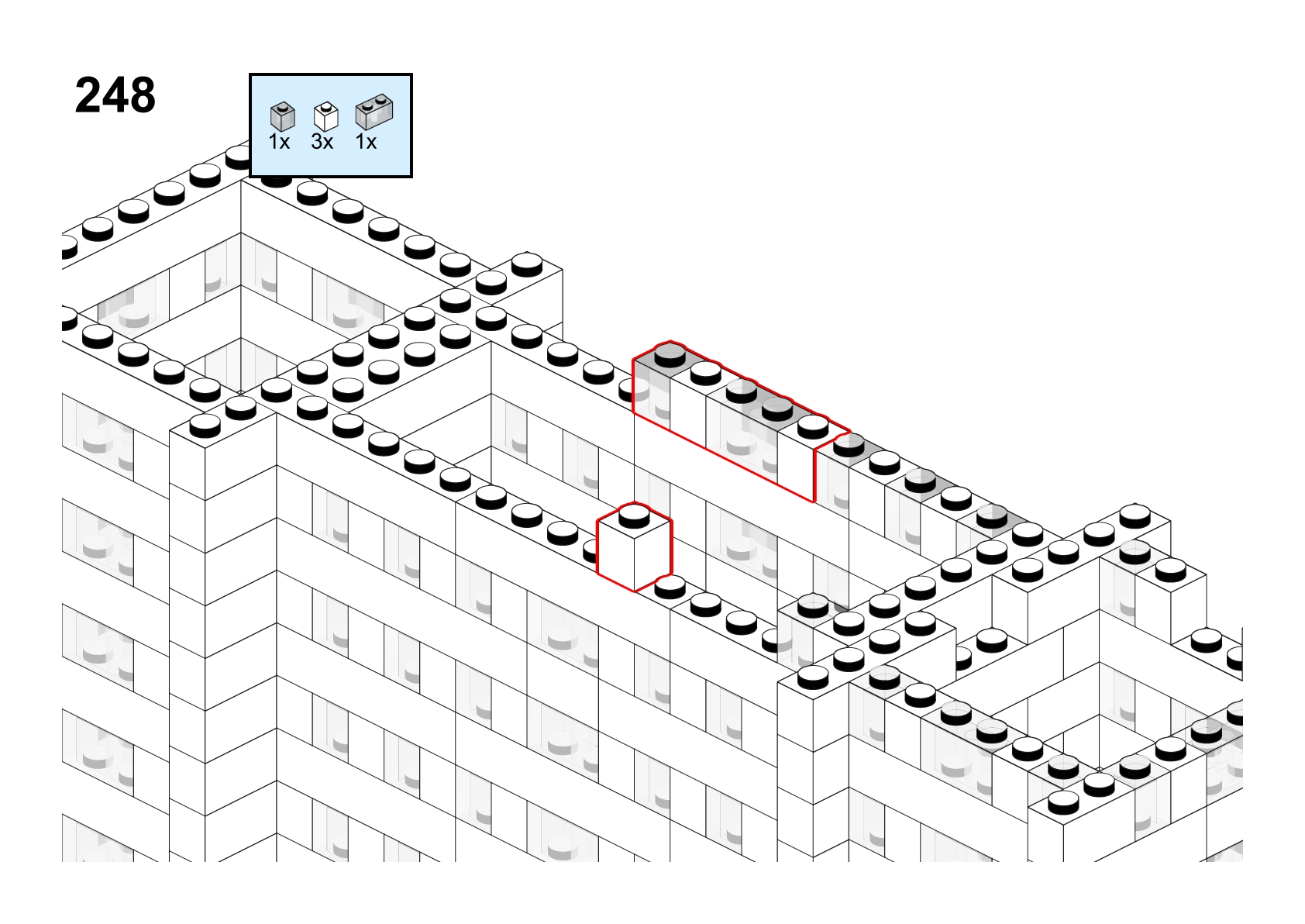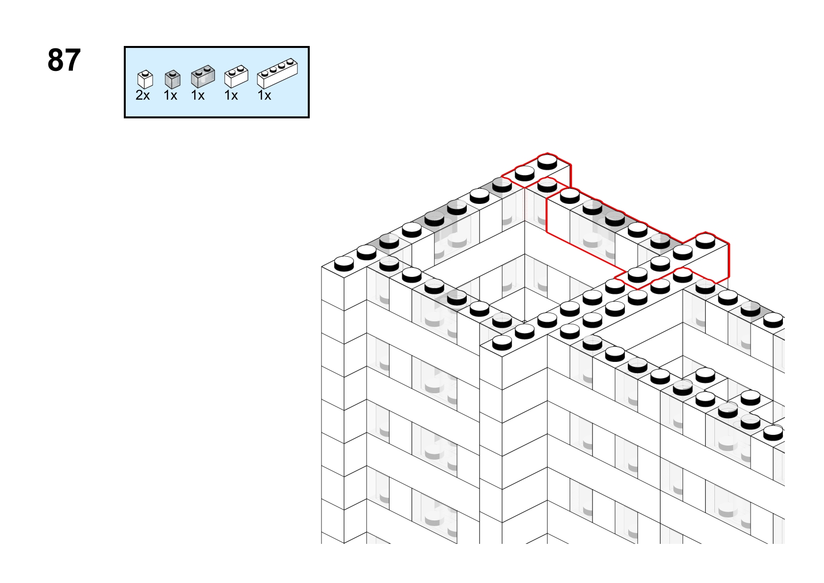 I have built it recently, and included a lighting system. I deviated a bit from the plan and inventory bellow to make it slightly lighter but same height and width. I have added a Hotel sign on top of the doors. Also the top 6 floors level in this version is 6 slots wide which makes it more comfortable, and I have reduced the number of inner reinforcement. It is stable and relatively solid. I’ll drop the insructions and inventory soon.