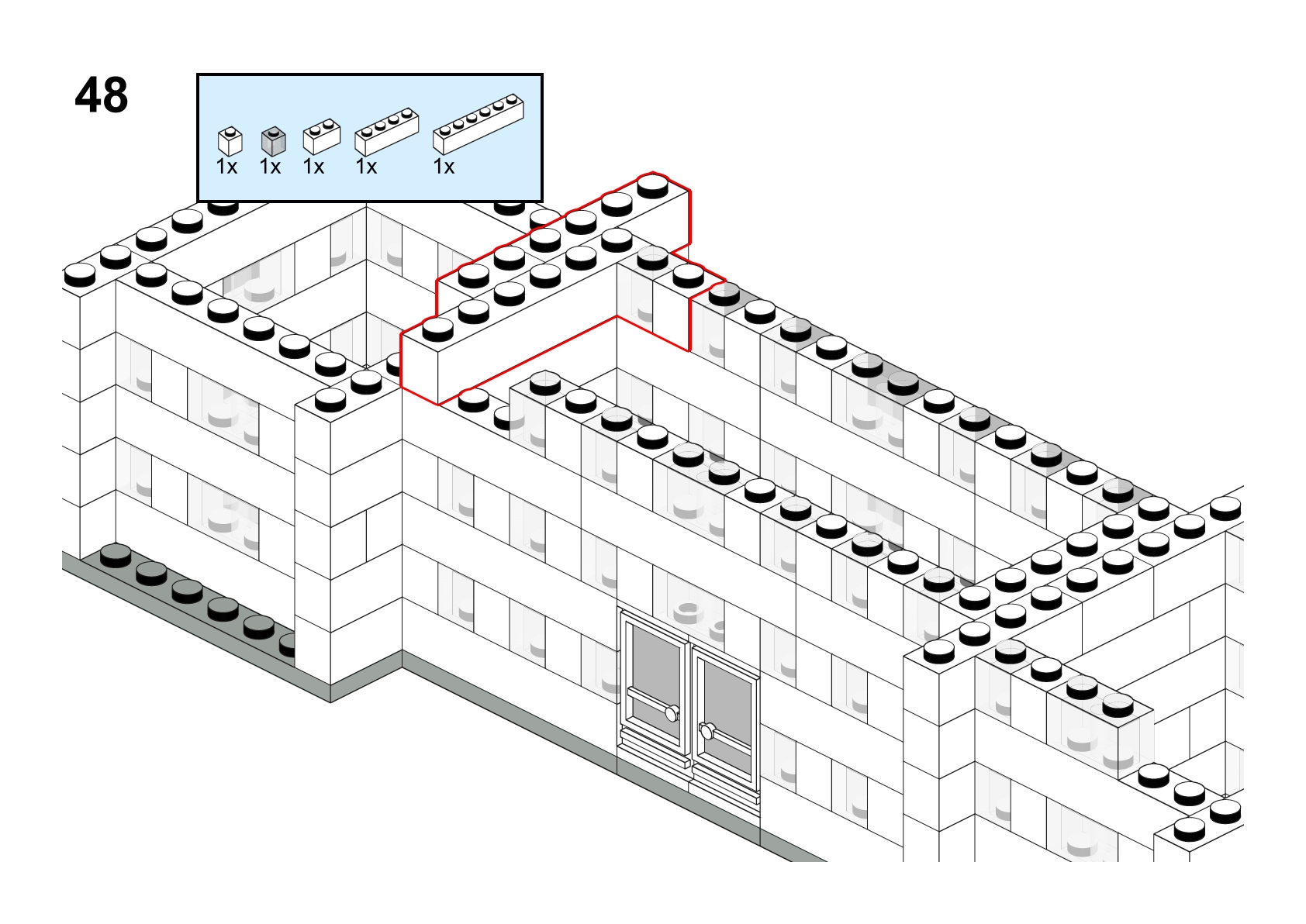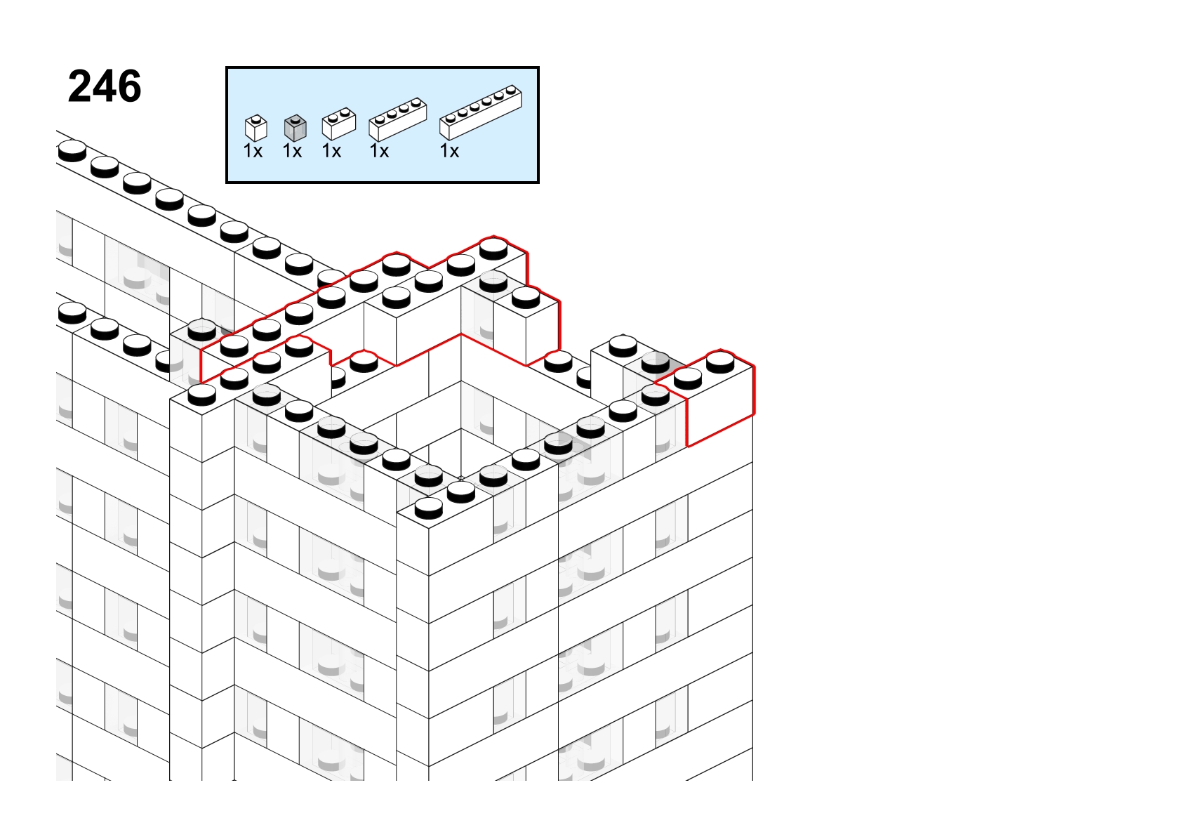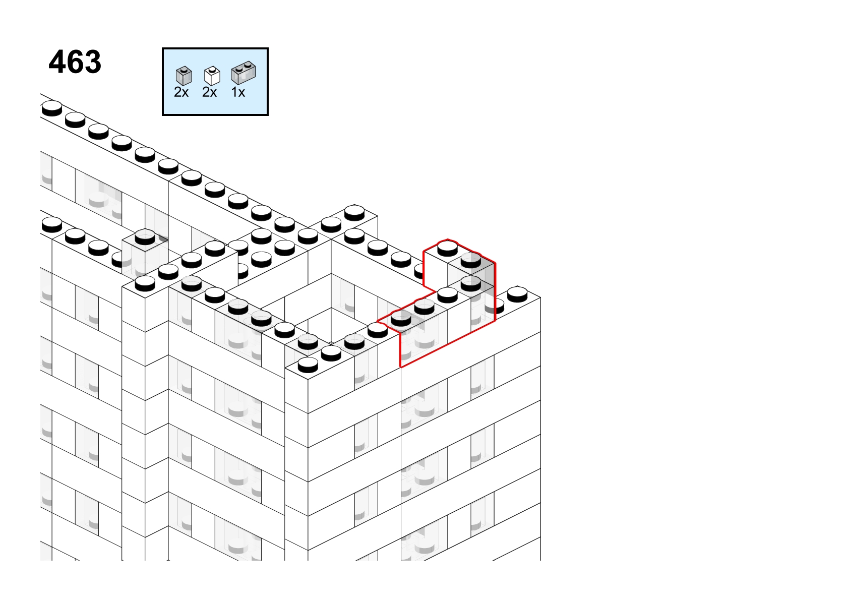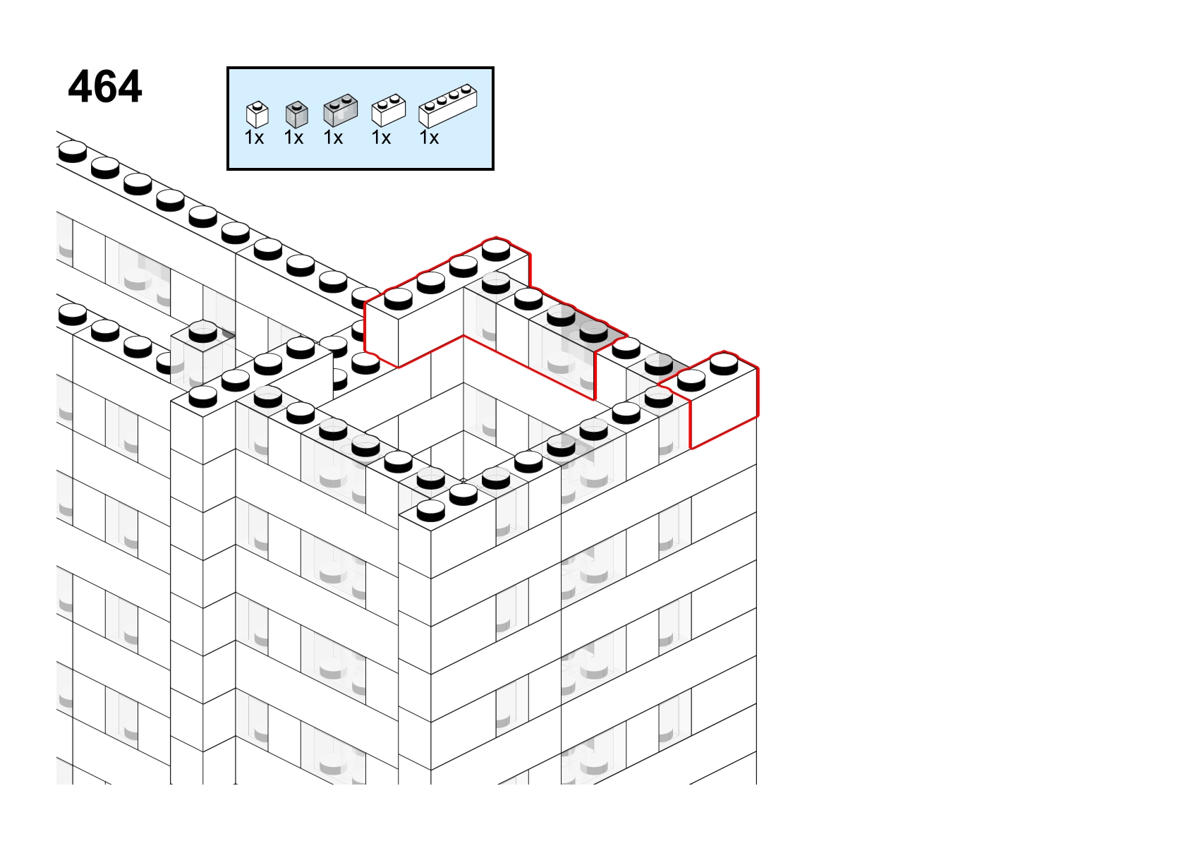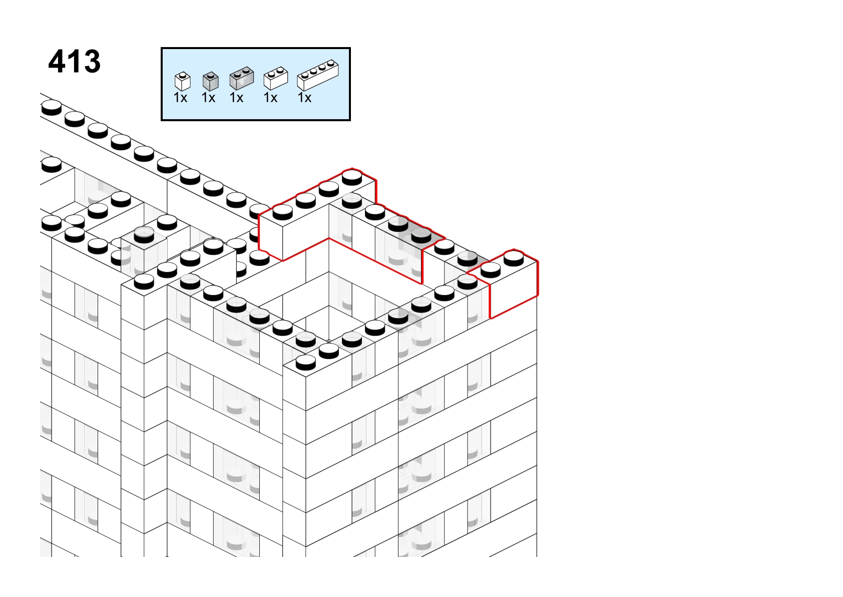 I have built it recently, and included a lighting system. I deviated a bit from the plan and inventory bellow to make it slightly lighter but same height and width. I have added a Hotel sign on top of the doors. Also the top 6 floors level in this version is 6 slots wide which makes it more comfortable, and I have reduced the number of inner reinforcement. It is stable and relatively solid. I’ll drop the insructions and inventory soon.