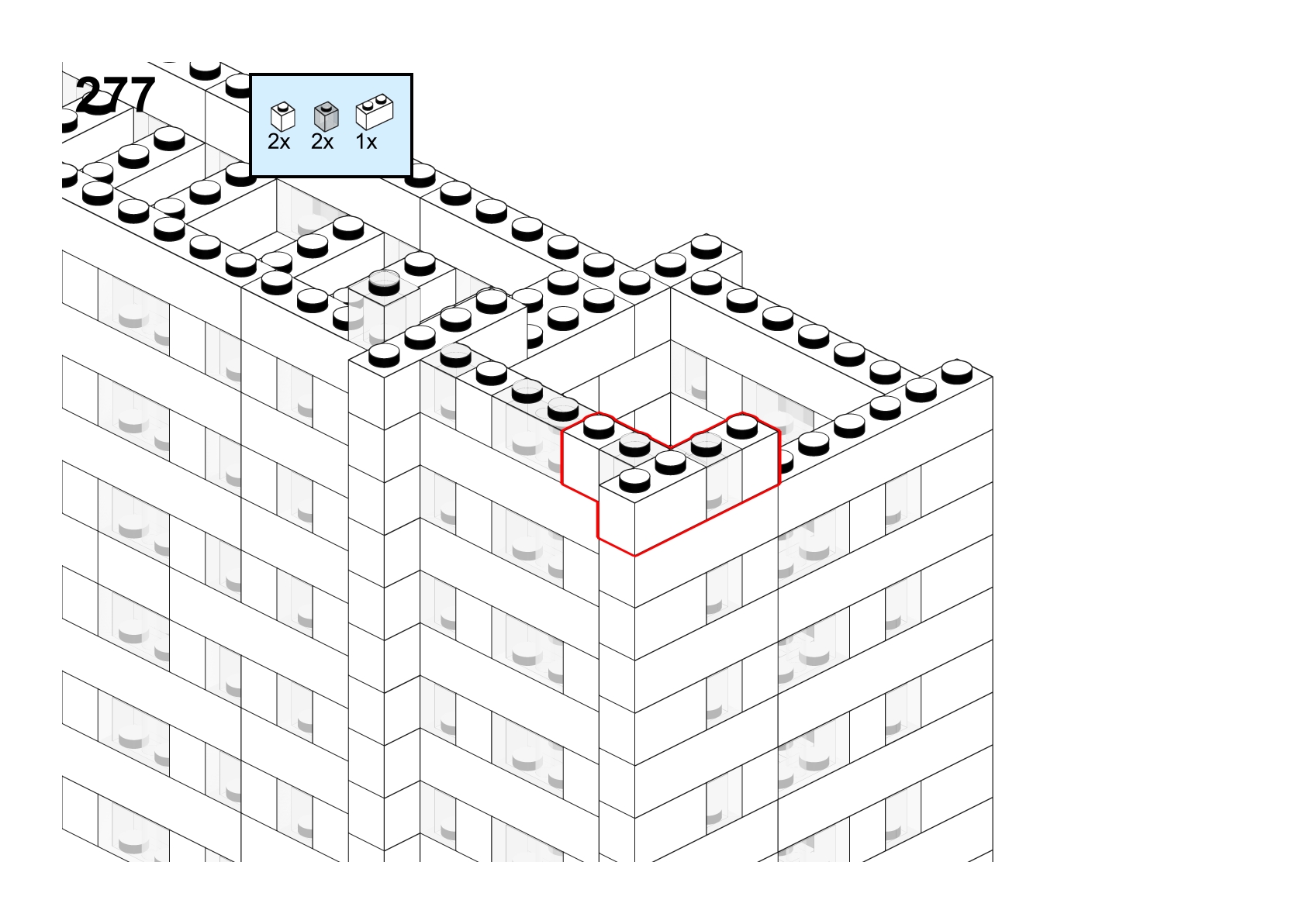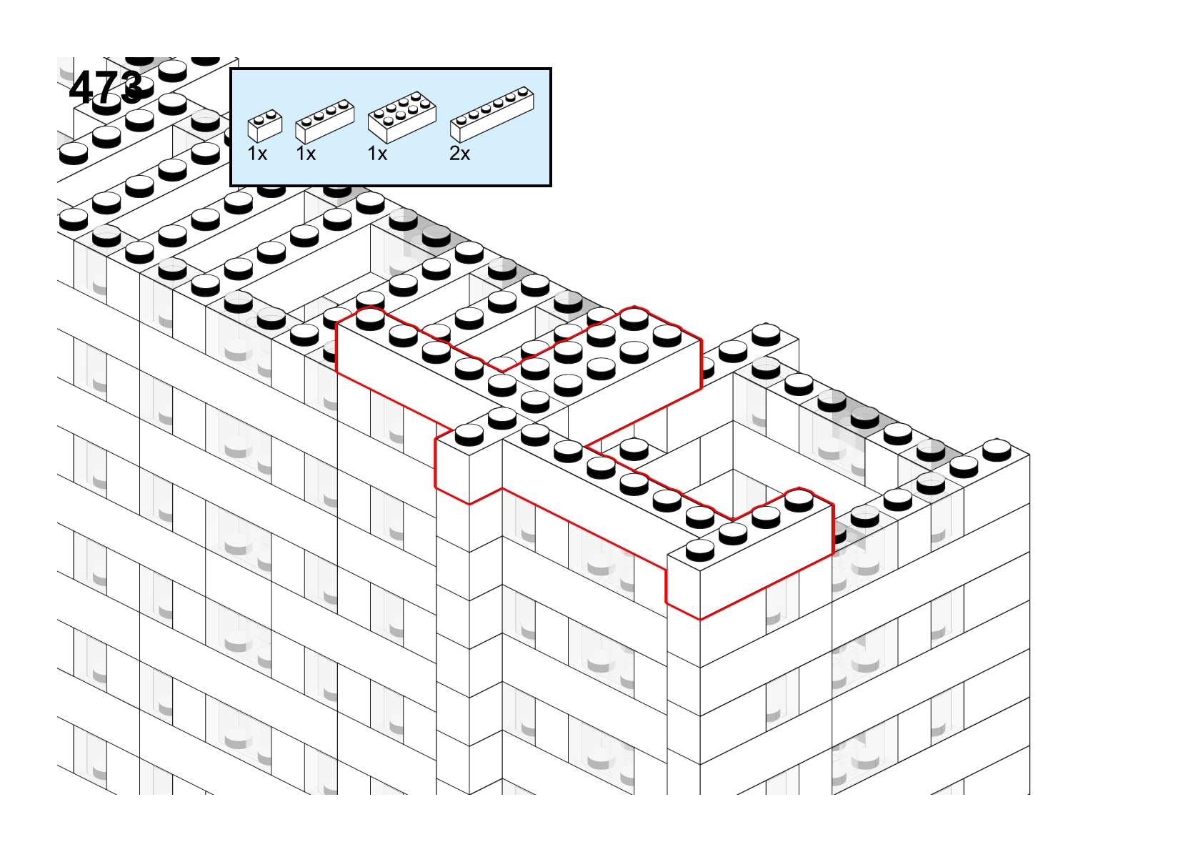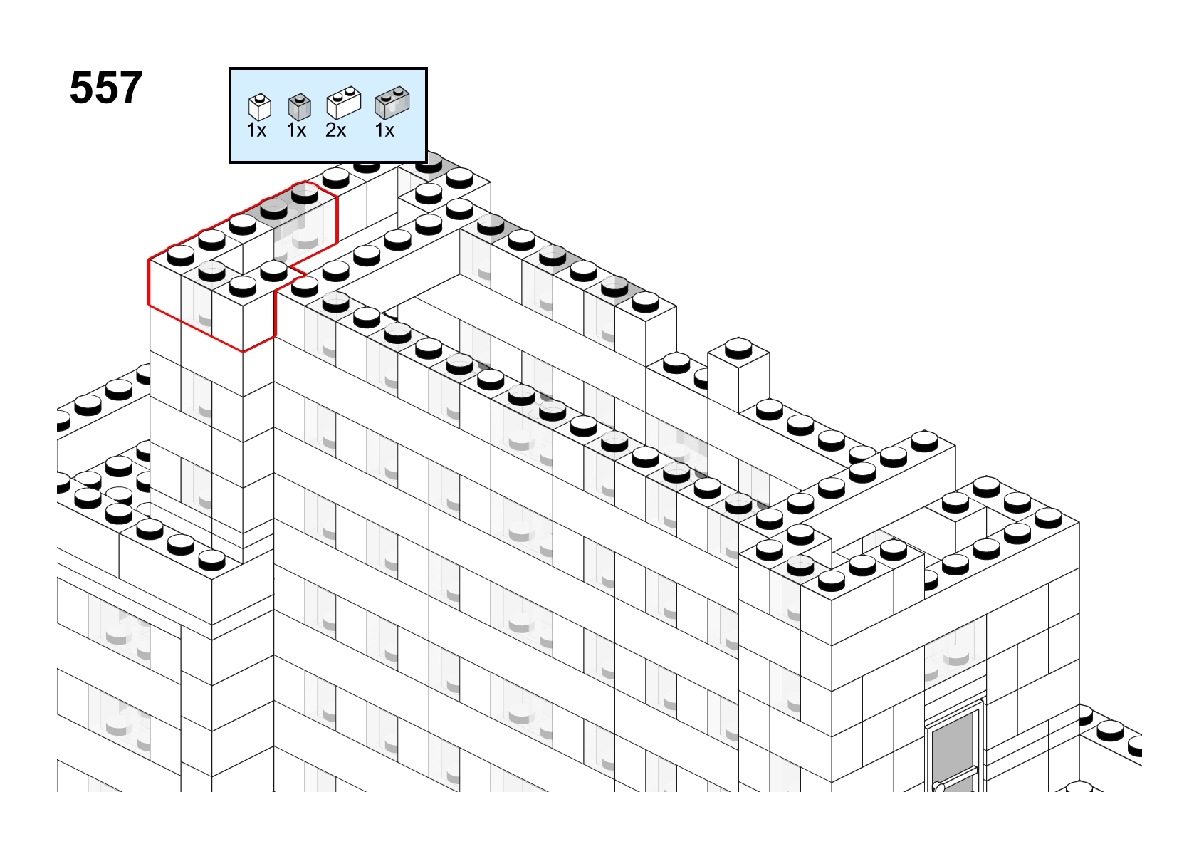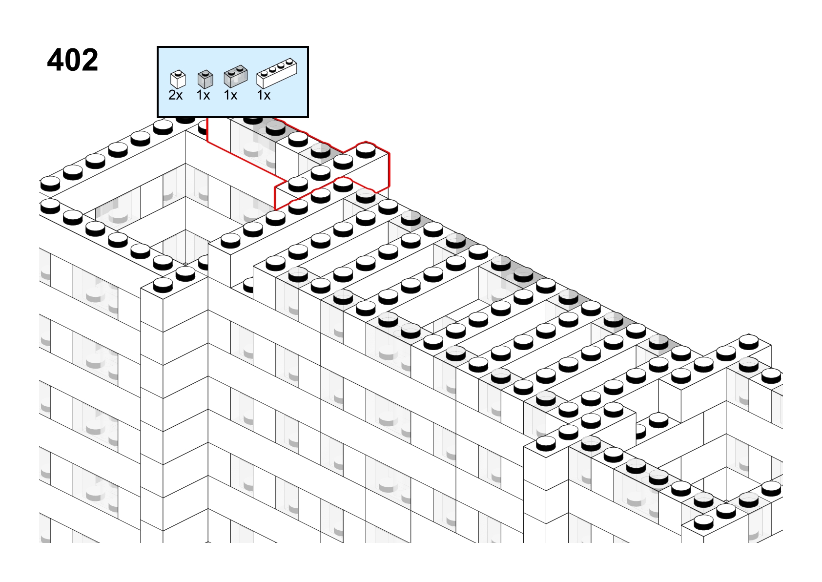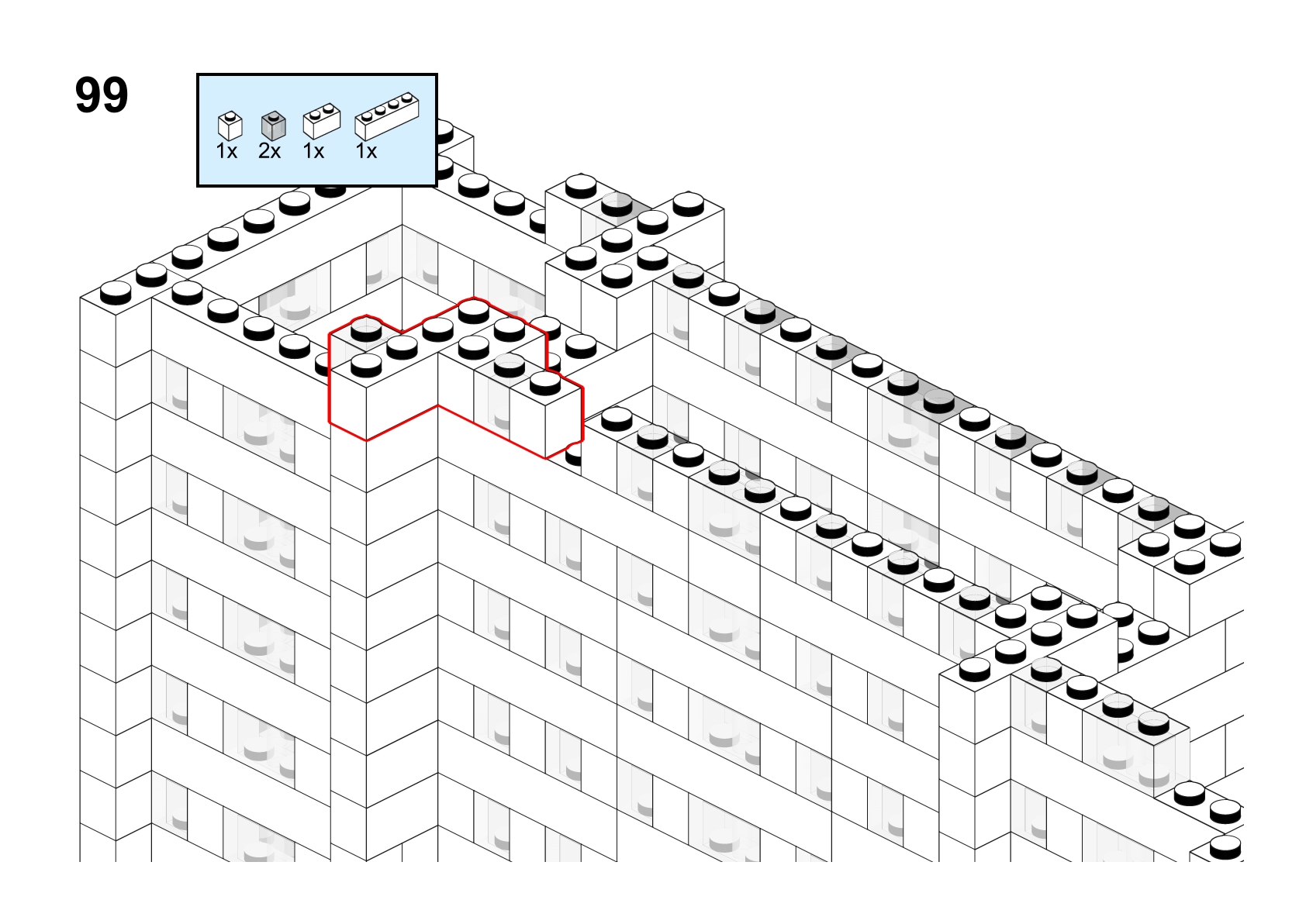 I have built it recently, and included a lighting system. I deviated a bit from the plan and inventory bellow to make it slightly lighter but same height and width. I have added a Hotel sign on top of the doors. Also the top 6 floors level in this version is 6 slots wide which makes it more comfortable, and I have reduced the number of inner reinforcement. It is stable and relatively solid. I’ll drop the insructions and inventory soon.