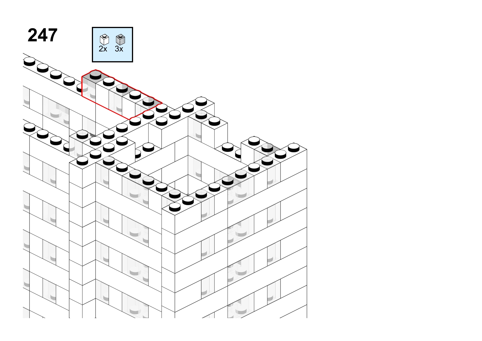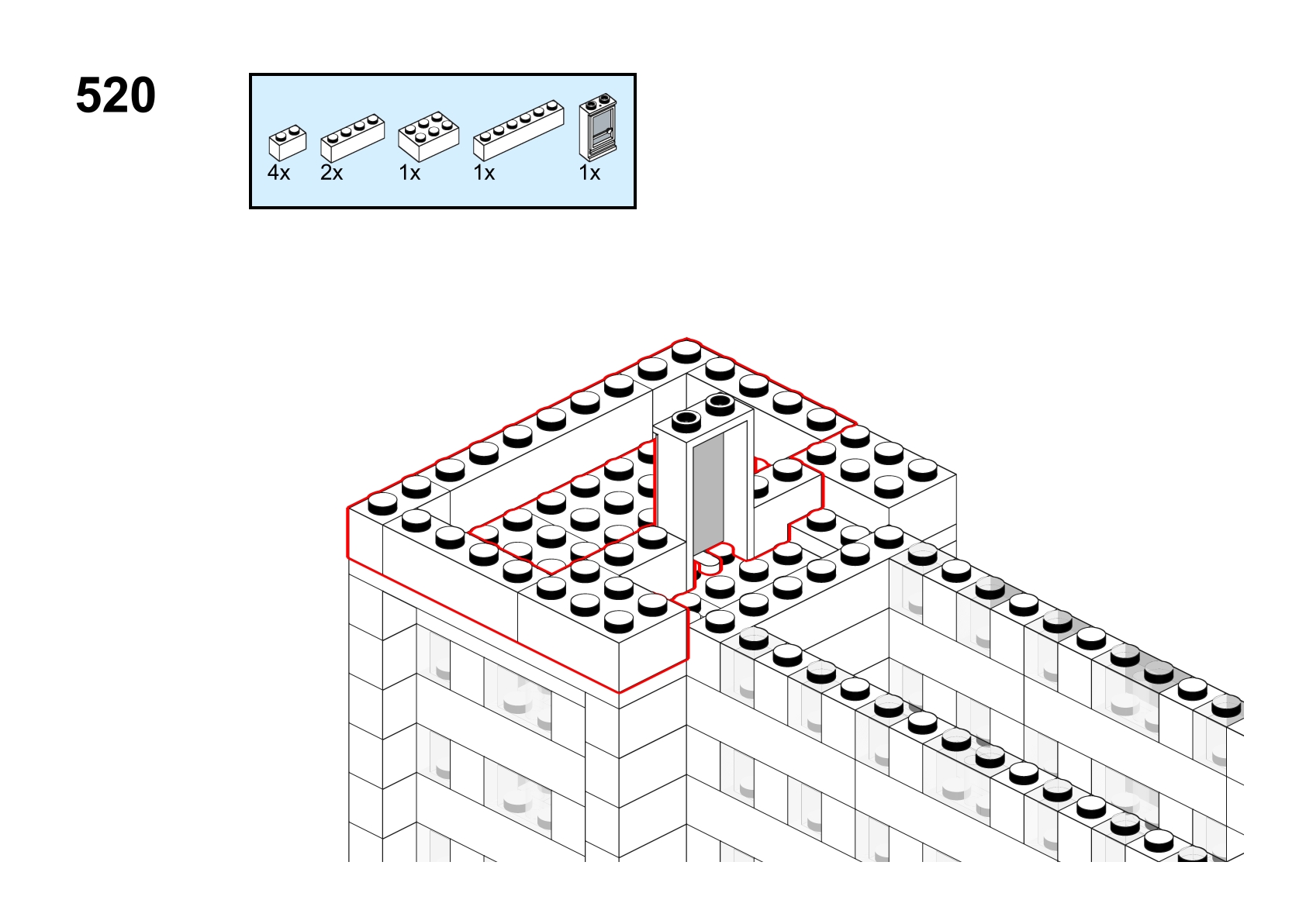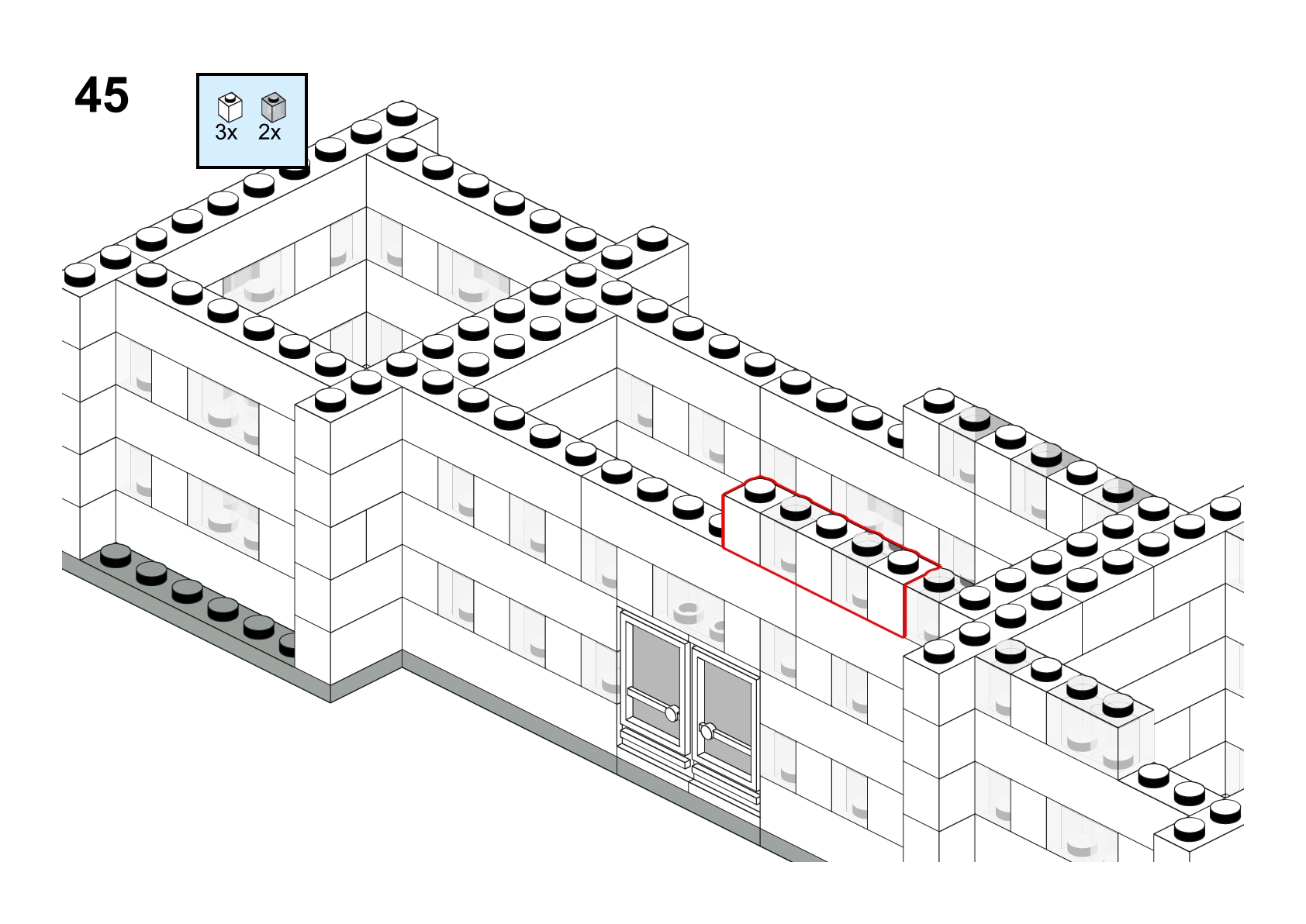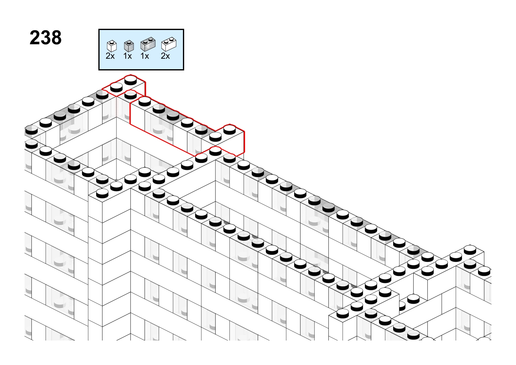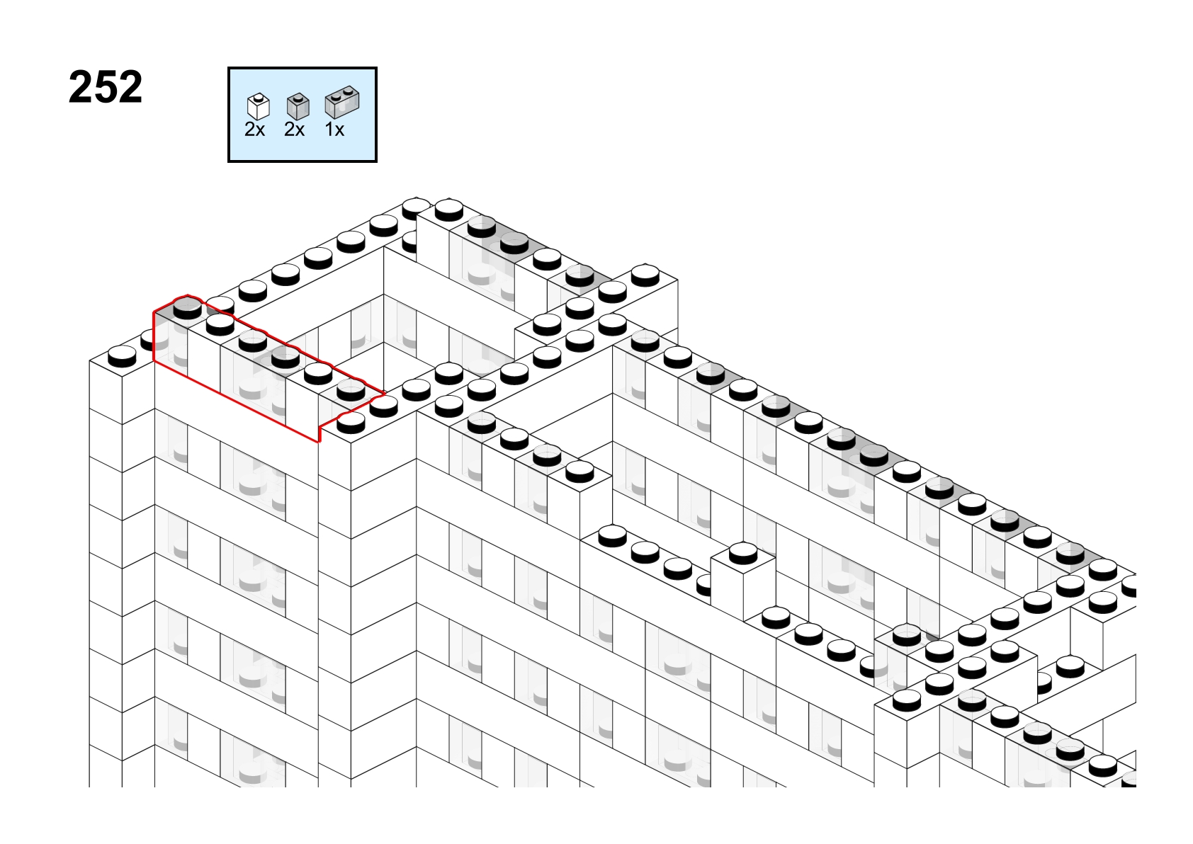 I have built it recently, and included a lighting system. I deviated a bit from the plan and inventory bellow to make it slightly lighter but same height and width. I have added a Hotel sign on top of the doors. Also the top 6 floors level in this version is 6 slots wide which makes it more comfortable, and I have reduced the number of inner reinforcement. It is stable and relatively solid. I’ll drop the insructions and inventory soon.