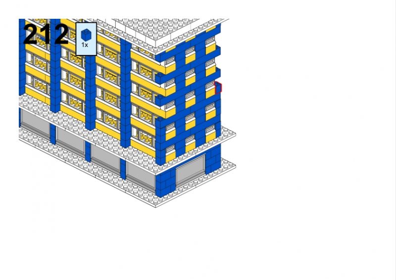 The circled LEGO construction from LEGO Idea Book No. 238 (German) is a modern multi-story apartment building, prominently featured in a vibrant urban scene. It embodies a mid-20th-century modernist architectural style, reflecting the post-war urban renewal trends of the 1950s and 1960s. The clean lines, grid-like window arrangement, and functional simplicity are reminiscent of the International Style, influenced by architects like Ludwig Mies van der Rohe or Le Corbusier, who championed minimalist, functional designs. The blue and yellow color scheme, along with the flat roof and lack of ornate detailing, suggests inspiration from European apartment blocks of the era, such as those in West Germany during the Wirtschaftswunder (economic miracle) period. The presence of the German flag in the second image reinforces this, possibly nodding to cities like Frankfurt or Berlin, known for their modernist high-rises. This model encourages imaginative city planning, blending historical urban development with the playful, accessible nature of LEGO construction from that time.