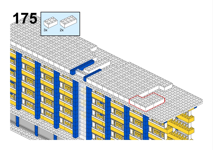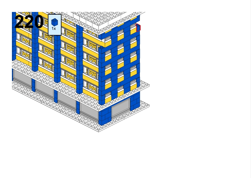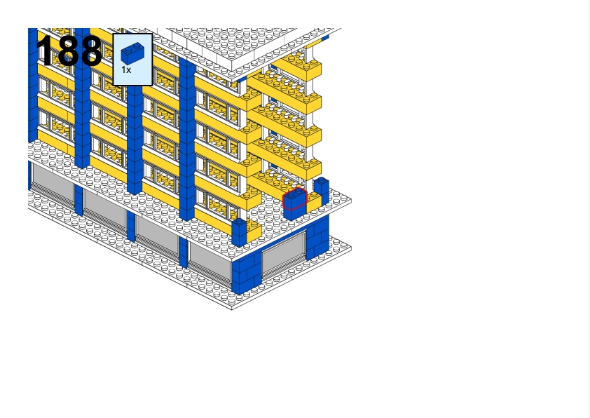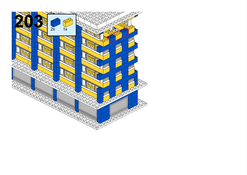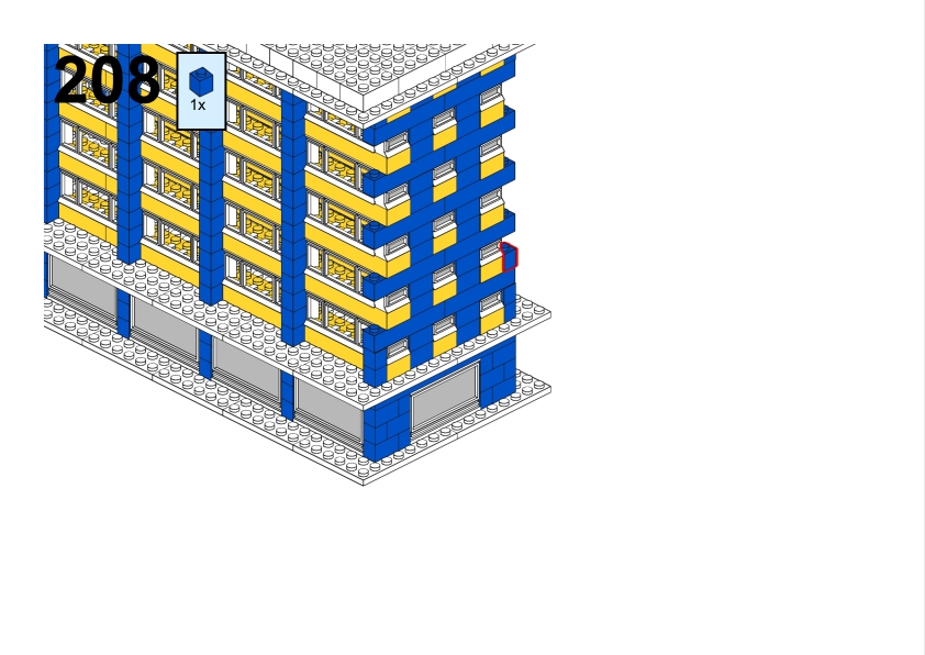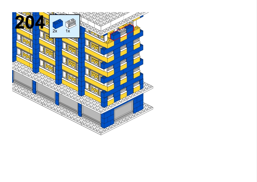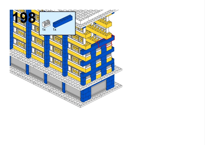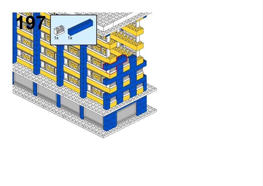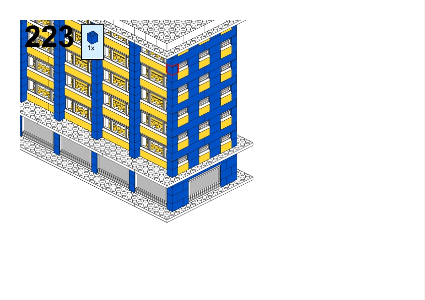 The circled LEGO construction from LEGO Idea Book No. 238 (German) is a modern multi-story apartment building, prominently featured in a vibrant urban scene. It embodies a mid-20th-century modernist architectural style, reflecting the post-war urban renewal trends of the 1950s and 1960s. The clean lines, grid-like window arrangement, and functional simplicity are reminiscent of the International Style, influenced by architects like Ludwig Mies van der Rohe or Le Corbusier, who championed minimalist, functional designs. The blue and yellow color scheme, along with the flat roof and lack of ornate detailing, suggests inspiration from European apartment blocks of the era, such as those in West Germany during the Wirtschaftswunder (economic miracle) period. The presence of the German flag in the second image reinforces this, possibly nodding to cities like Frankfurt or Berlin, known for their modernist high-rises. This model encourages imaginative city planning, blending historical urban development with the playful, accessible nature of LEGO construction from that time.