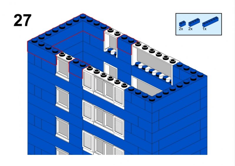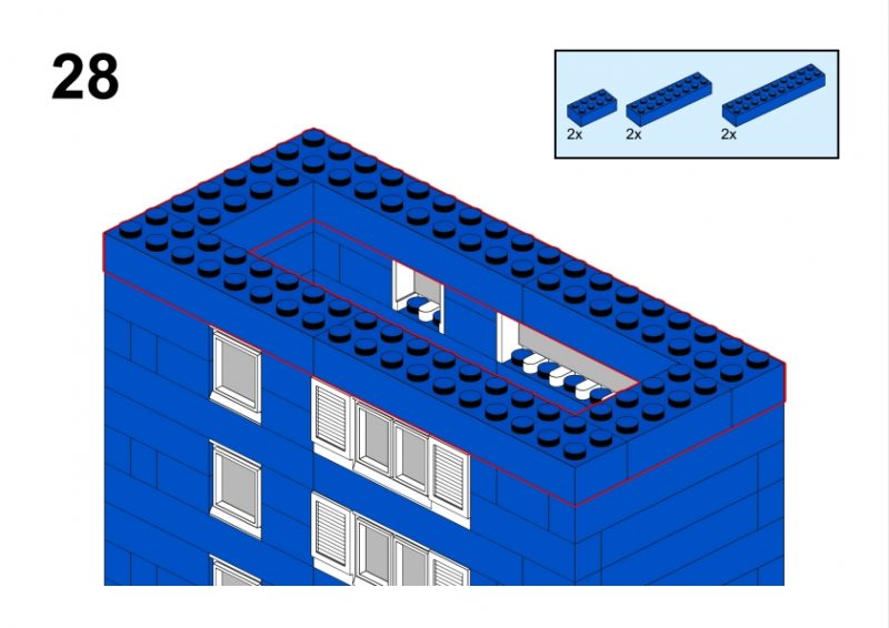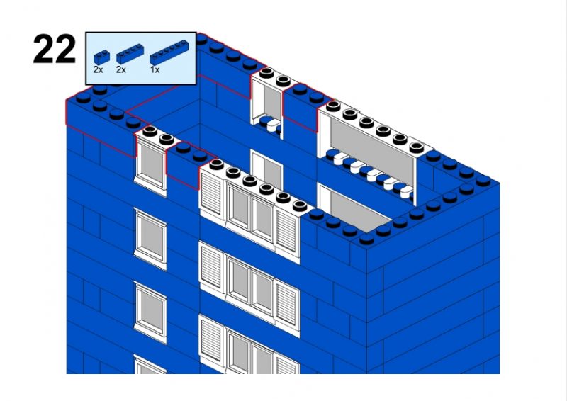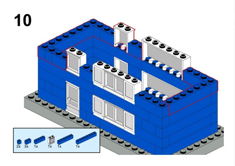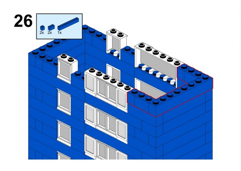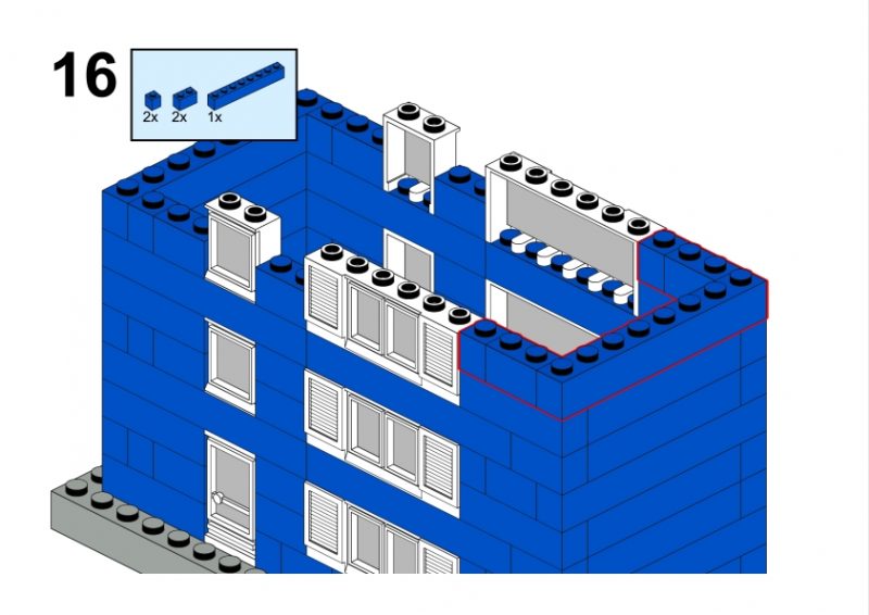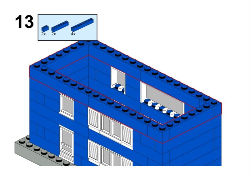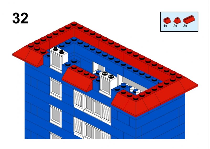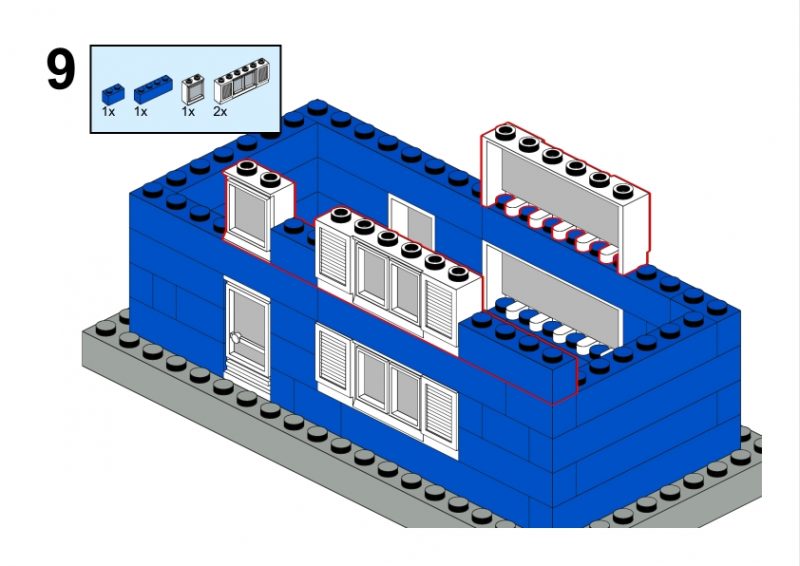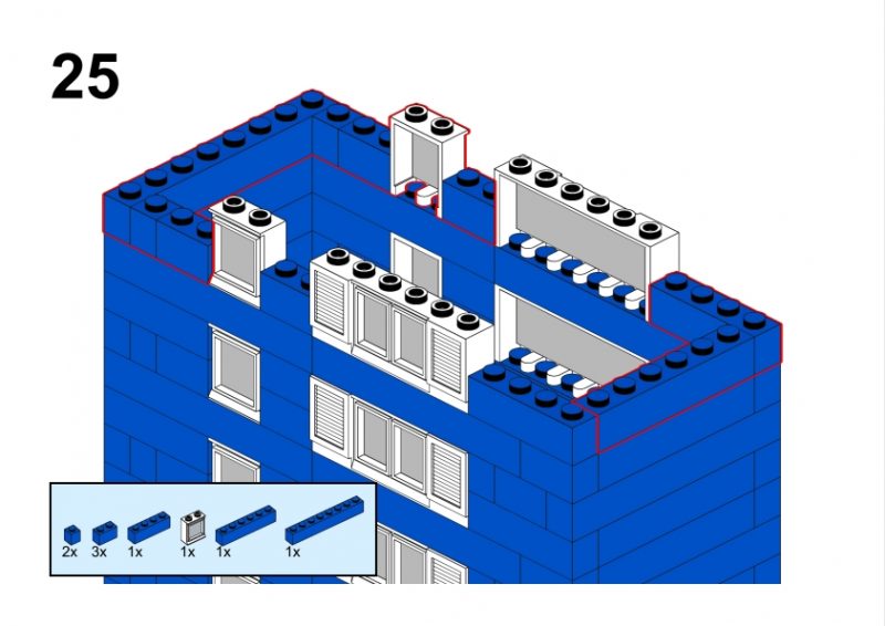 The LEGO construction circled in black in this image from LEGO Idea Book No. 238 German edition is a compact urban row house, designed as part of a charming street scene. Since the roof can’t be scene, I give my own interpretation of the build trying to stick to the overall picture style. This build reflects a traditional European row house style, likely inspired by the narrow, tightly packed homes found in medieval or early modern towns across Northern Europe, such as those in Germany or the Netherlands during the 1950s.
