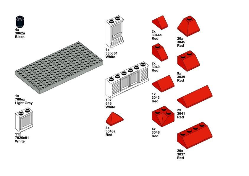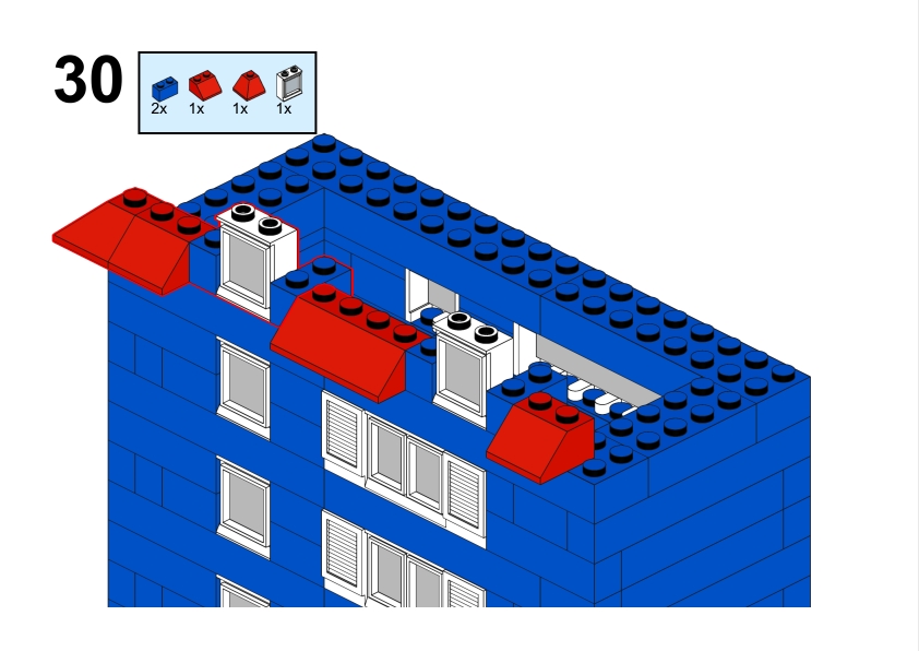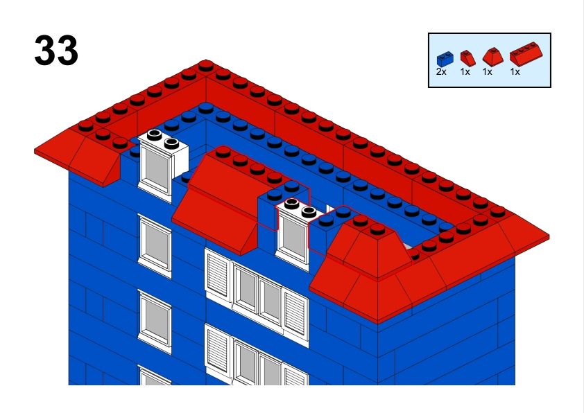 The LEGO construction circled in black in this image from LEGO Idea Book No. 238 German edition is a compact urban row house, designed as part of a charming street scene. Since the roof can’t be scene, I give my own interpretation of the build trying to stick to the overall picture style. This build reflects a traditional European row house style, likely inspired by the narrow, tightly packed homes found in medieval or early modern towns across Northern Europe, such as those in Germany or the Netherlands during the 1950s.