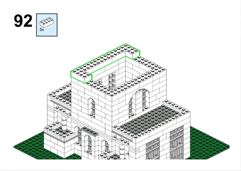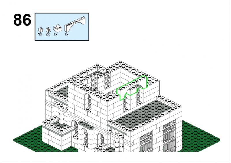 To create this MOC, I have only used vintage pieces (from windows of the 50’s to 70’s) to 80’s arches. I don’t think I will ever have enough small 1×1 windows to build it given the unitary price of it and given the fact that it requires over 170 of them. If you ever build it, please let me know !
