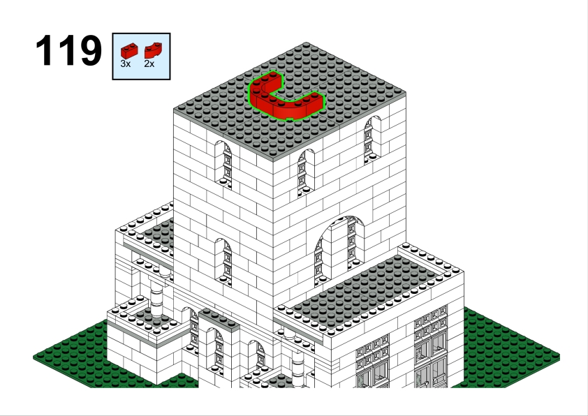 To create this MOC, I have only used vintage pieces (from windows of the 50’s to 70’s) to 80’s arches. I don’t think I will ever have enough small 1×1 windows to build it given the unitary price of it and given the fact that it requires over 170 of them. If you ever build it, please let me know !