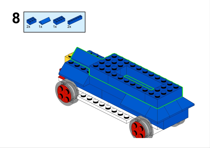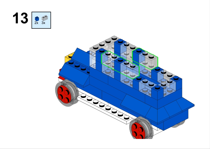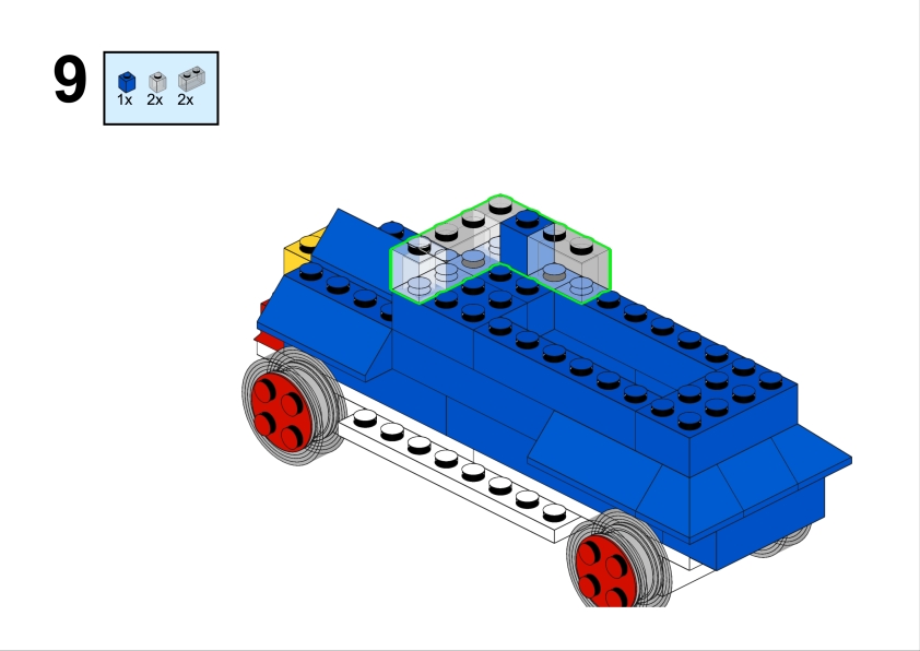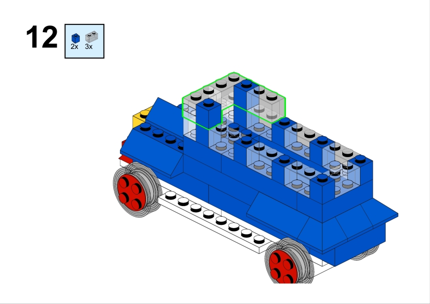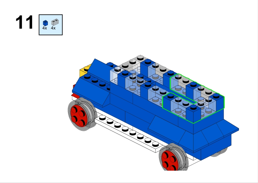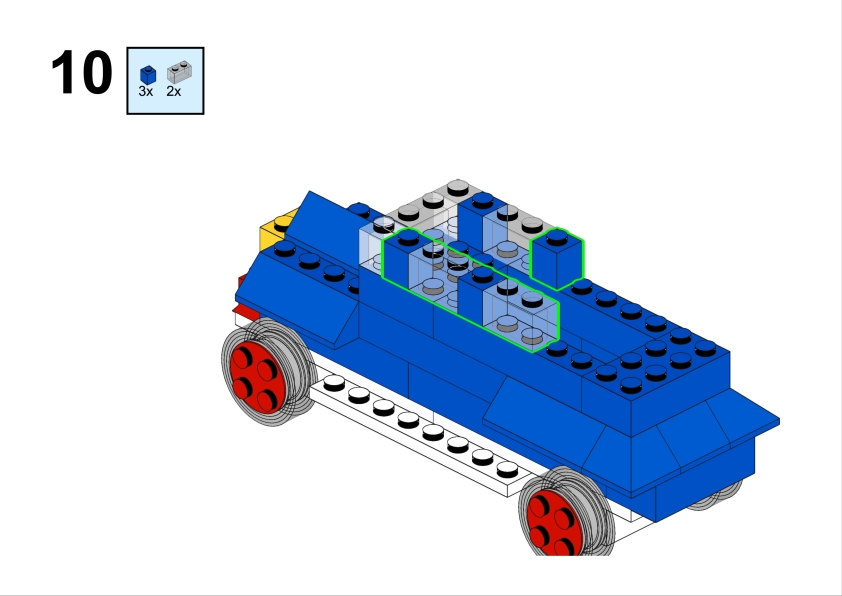 Let’s build this nice vintage car out of Lego System set 400-4 introducing small wheels with axle to the pieces assortment. It is easy to build and renders nice. It looks like a vintage paddy wagon.