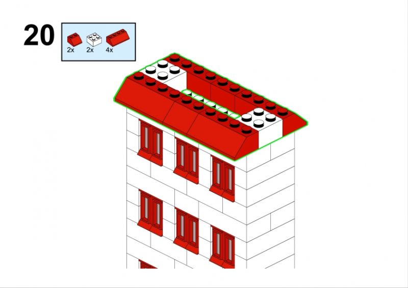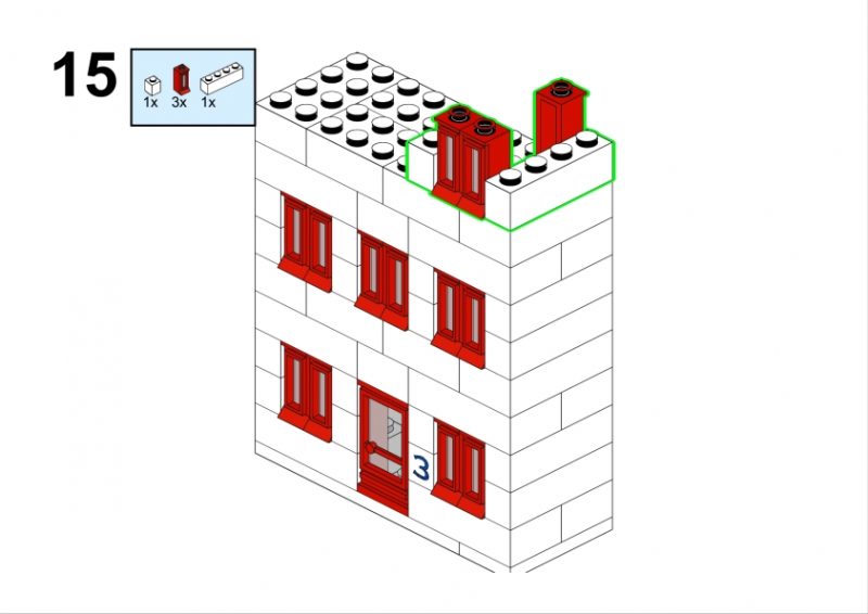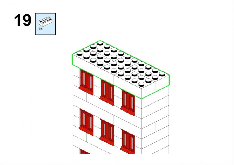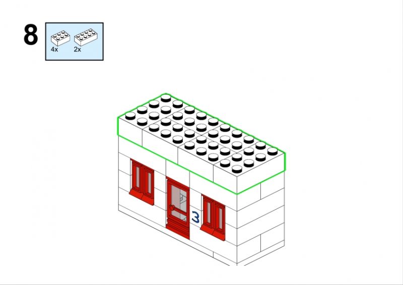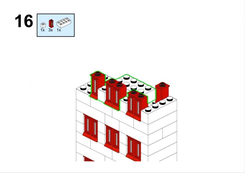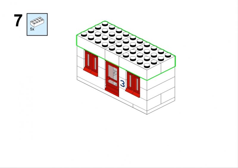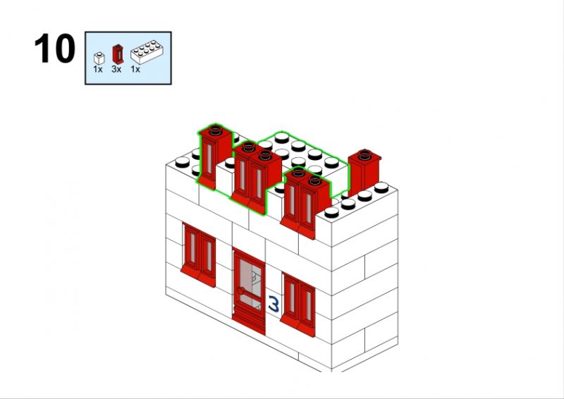 In the original illustration, it appears almost discreetly, partially hidden among taller structures. Yet its clean façade, red roofline, and neatly aligned windows give it a calm, reassuring presence. It feels like the kind of place where curtains gently move in the afternoon light, where footsteps echo softly in the stairwell, and where a neighbor might lean out of the window to watch the life of the street below.